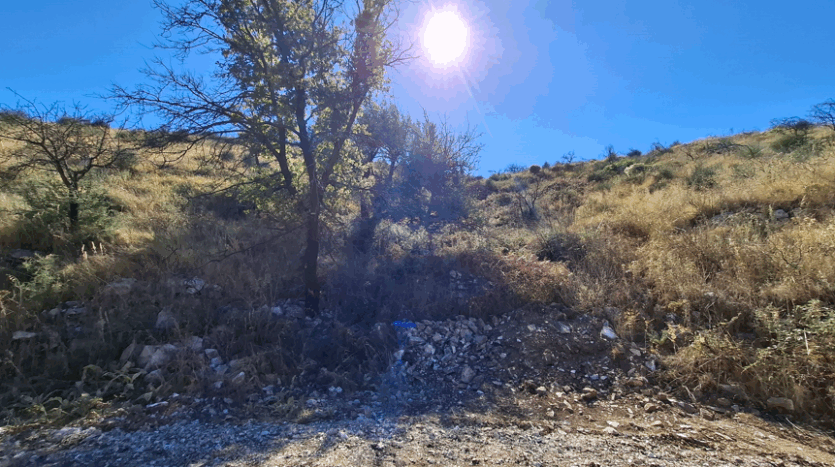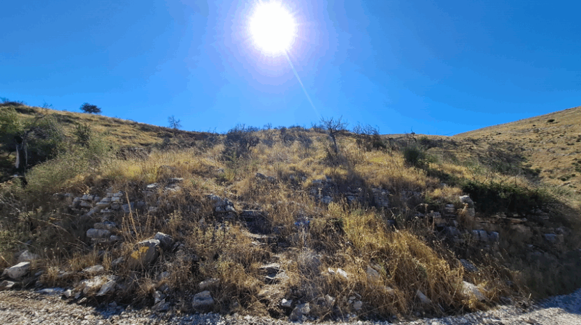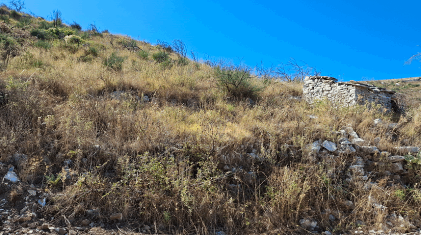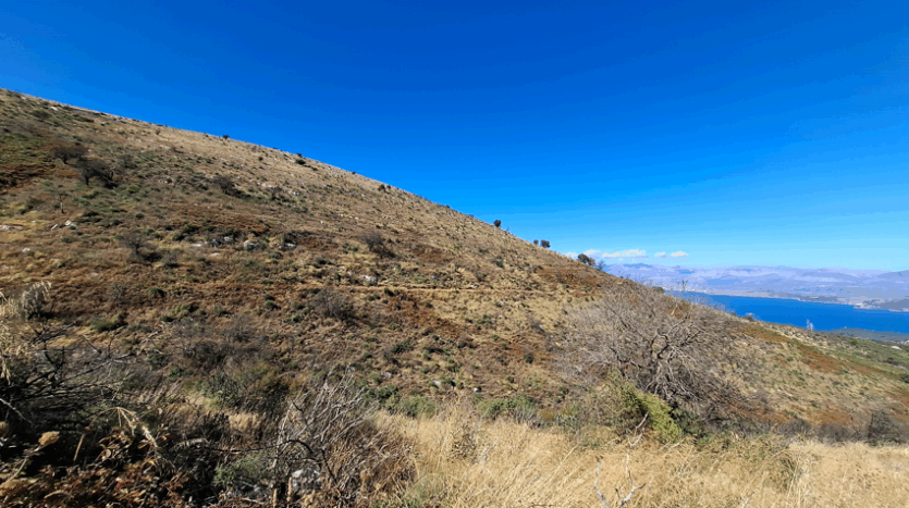 Set in the area of Megoulas near Sinies, this plot combines generous space with open sea and countryside views. Positioned on a gentle hillside, it offers a clear outlook across the landscape while remaining only 3km from nearby villages and amenities.