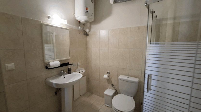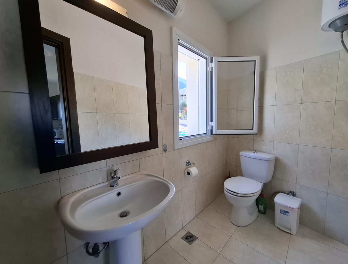 The lower level features two ensuite bedrooms, both opening directly onto the garden. The plot in front of the villa is an olive grove that cannot be built on, ensuring lasting privacy and an unobstructed view.