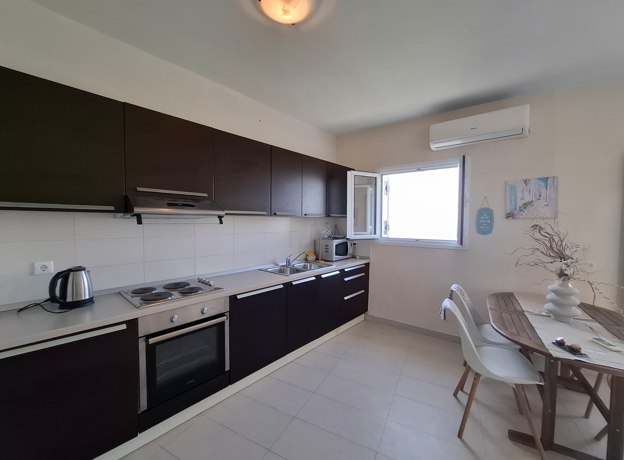 Out front, the landscaped garden offers a swimming pool and a space ready to personalise. The thoughtfully designed off-road parking area accommodates up to three cars. The home comes fully furnished, with air conditioning throughout, so you can move straight in and start enjoying island life.