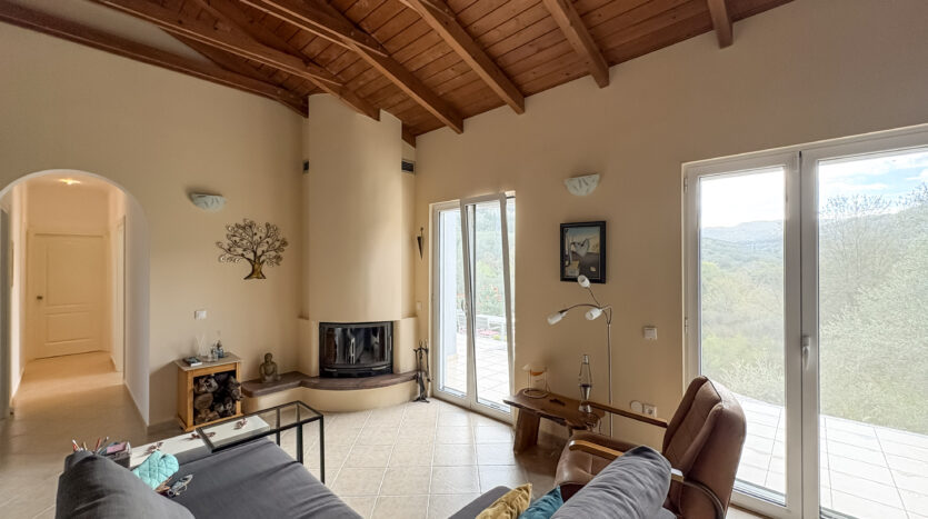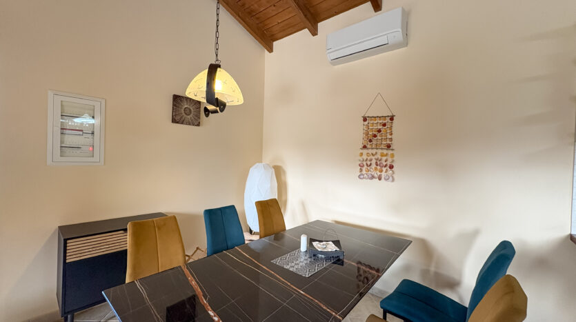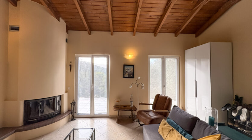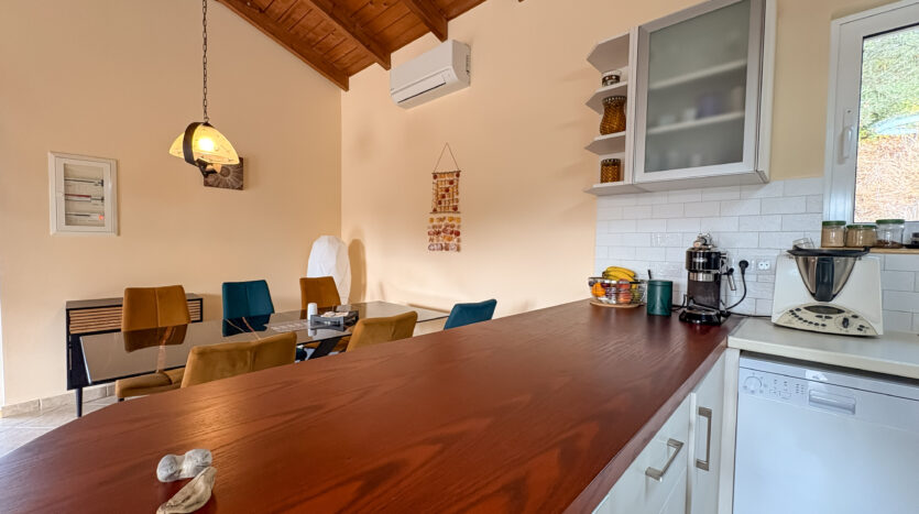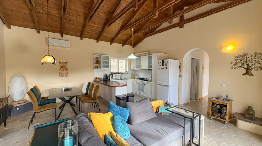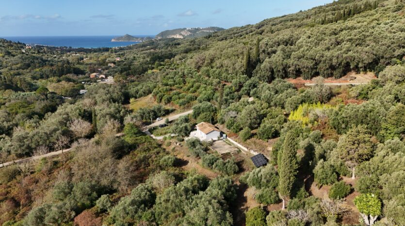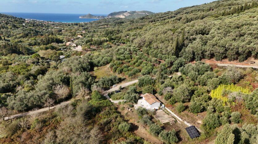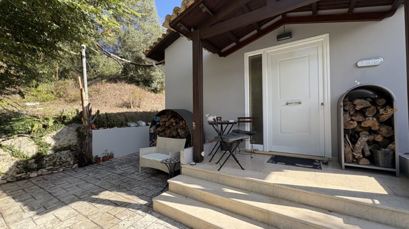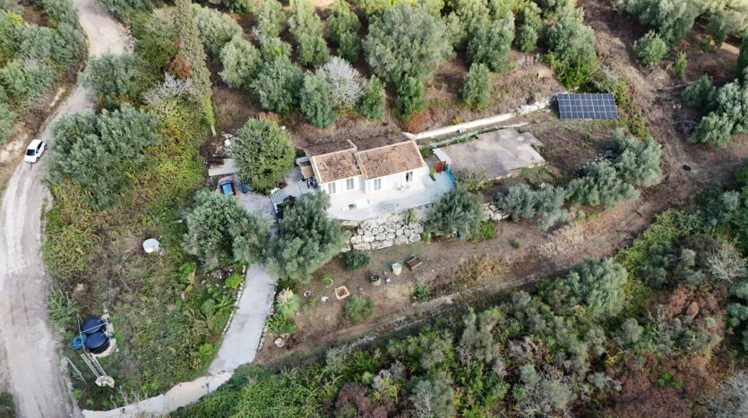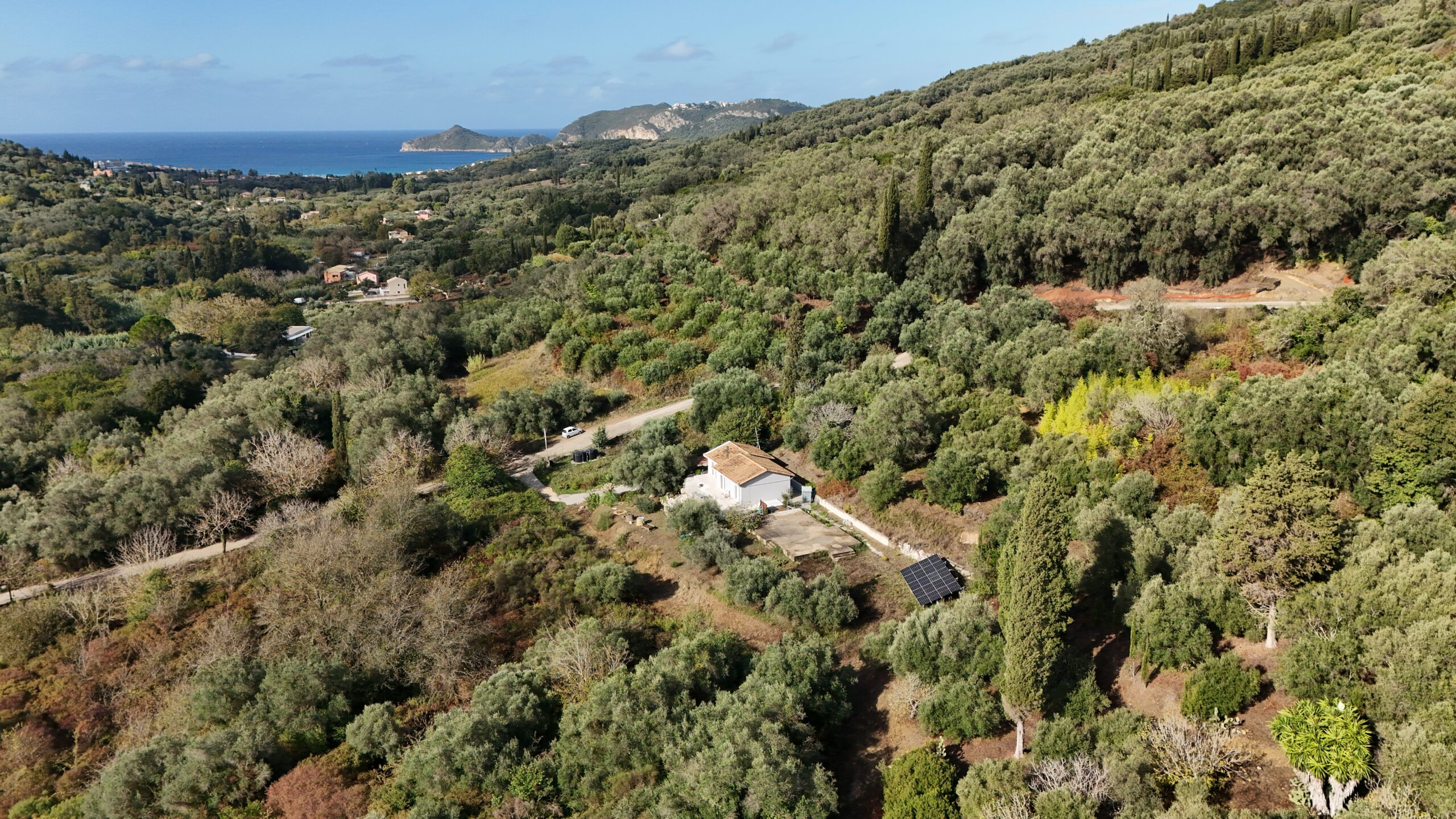 Set in the peaceful surroundings of Agios Georgios in northwest Corfu, this 100 m² eco-friendly home offers a perfect mix of privacy, modern comfort, and sustainable living — all just a short drive from one of the island’s most stunning beaches. Priced at €325,000, it sits on a beautiful 2,854 m² plot known locally as “Walnut Valley,” an area filled with olive and walnut trees, Mediterranean plants, and open green space that blends seamlessly with the landscape.