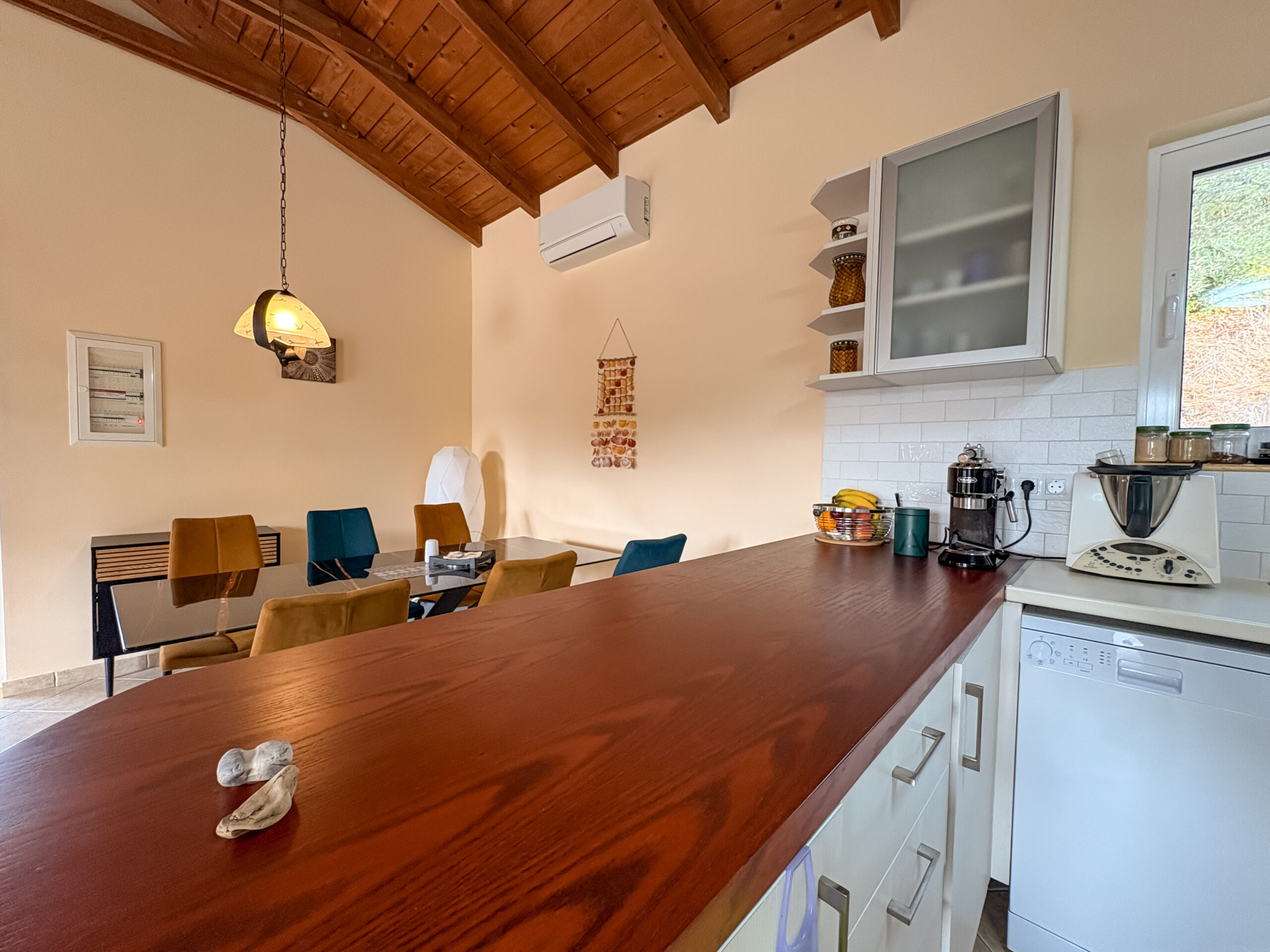 Built in 2010 with high-quality insulated post-and-beam construction, the house includes three bedrooms and two bathrooms, all designed for year-round comfort. The interior feels bright and natural thanks to large double-glazed windows with fly screens and solid metal shutters. There’s also eligibility to build additional space, allowing you to expand or create a guest studio in the future.