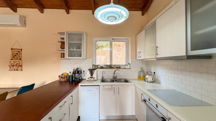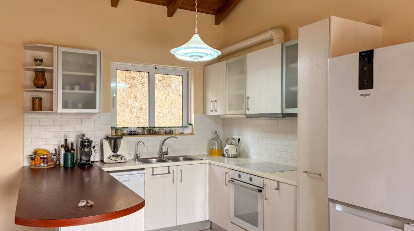 The home is powered by an advanced 8.5 kWp photovoltaic system with 16 kWh battery storage, meaning your energy is mostly solar-generated — and you’ll even have electricity during a power outage. A modern heat pump provides both heating and cooling efficiently, while two large 5,000-liter water tanks and a reverse-osmosis system ensure constant clean water throughout the year. There’s even an electric car charger connected to the solar grid for free, sustainable charging.