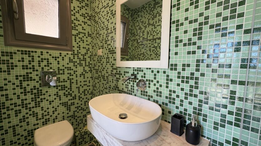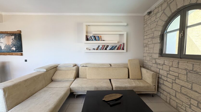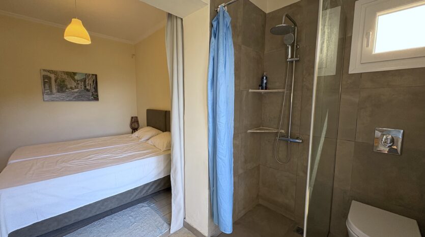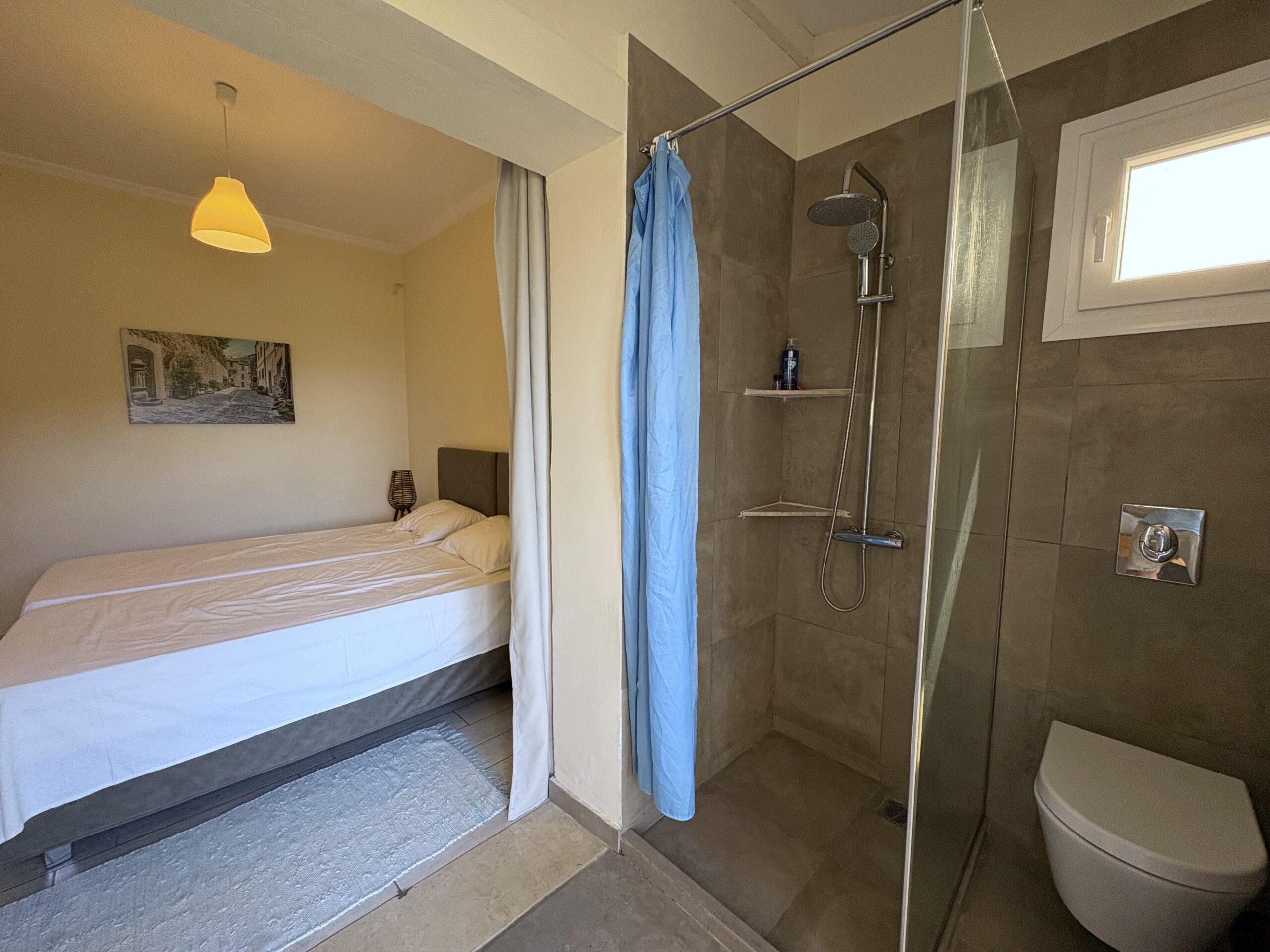 Kalami just 500m below the villa (reached through a footpath among the olive groves), with a taverna just 100m away and a bus stop a few steps away, a car is not essential.