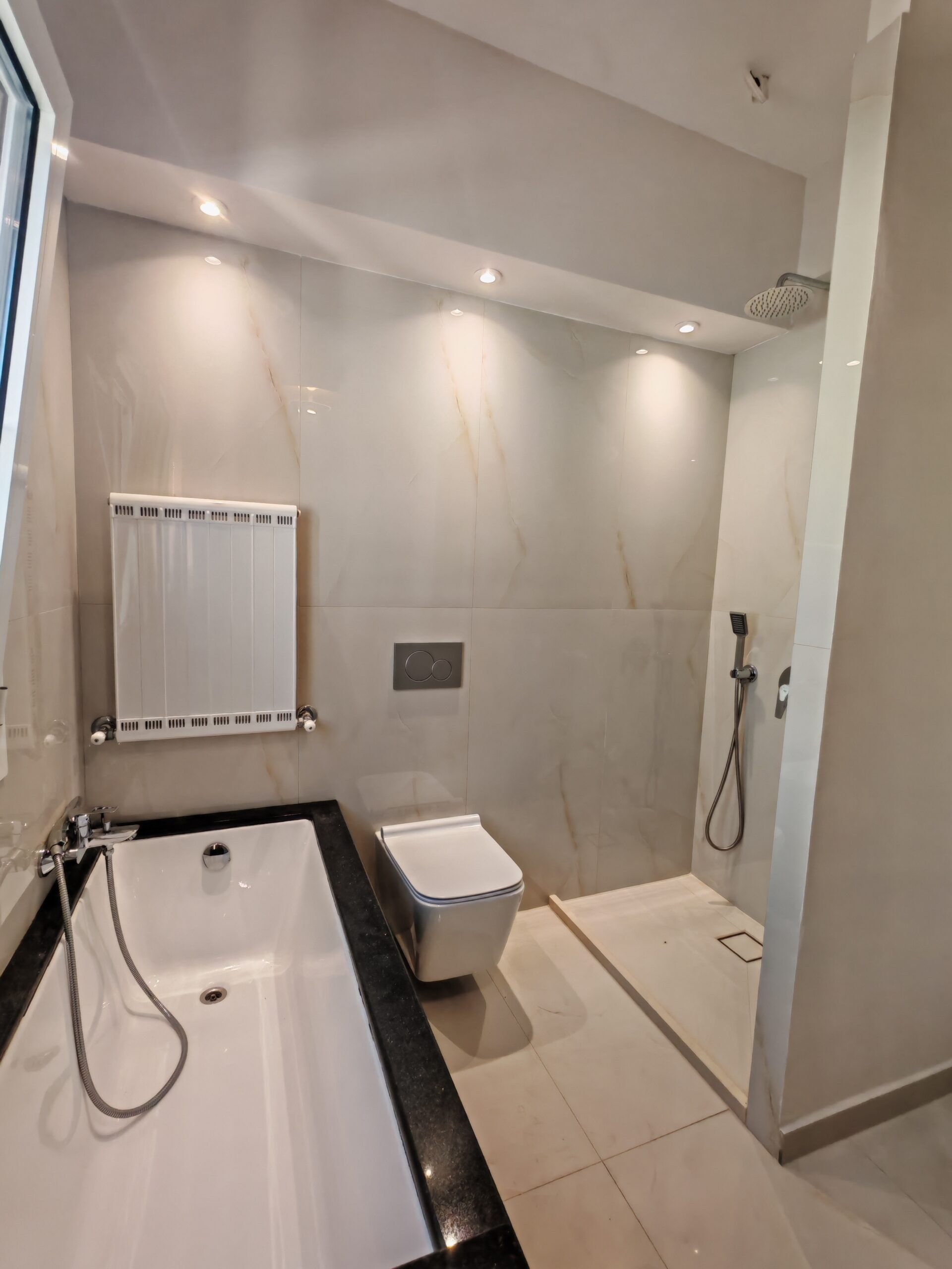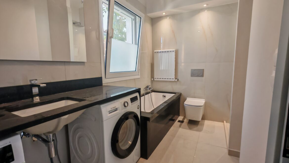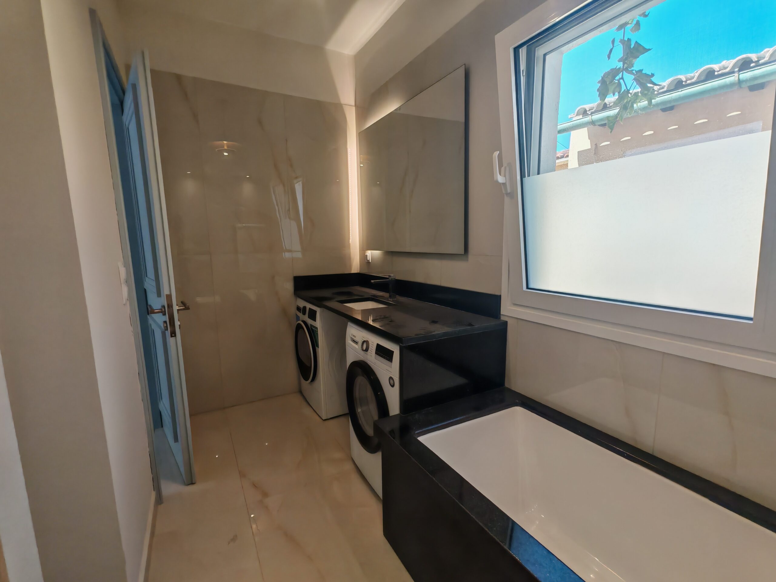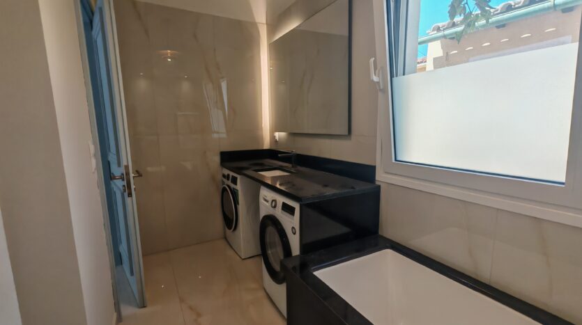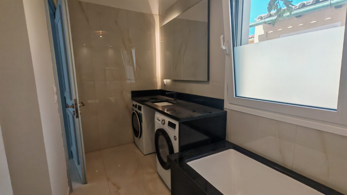 What makes this property truly special is its generous outdoor space, including a spacious terrace and a private rooftop terrace with distant sea views—a rare luxury in such a central location.