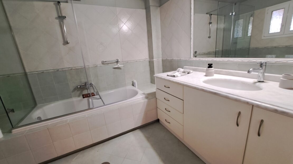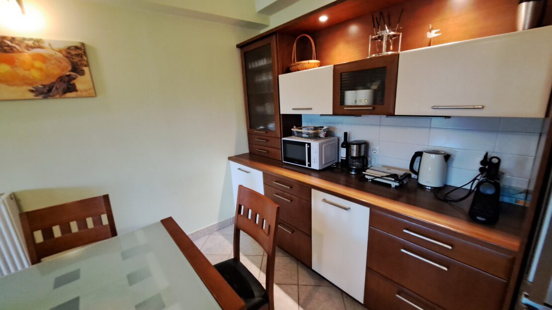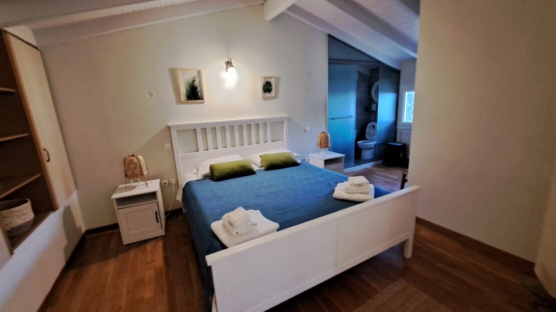The smaller guest apartment has two spacious bedrooms, one bathroom and a large open plan kitchen and living room. This property has independent access.