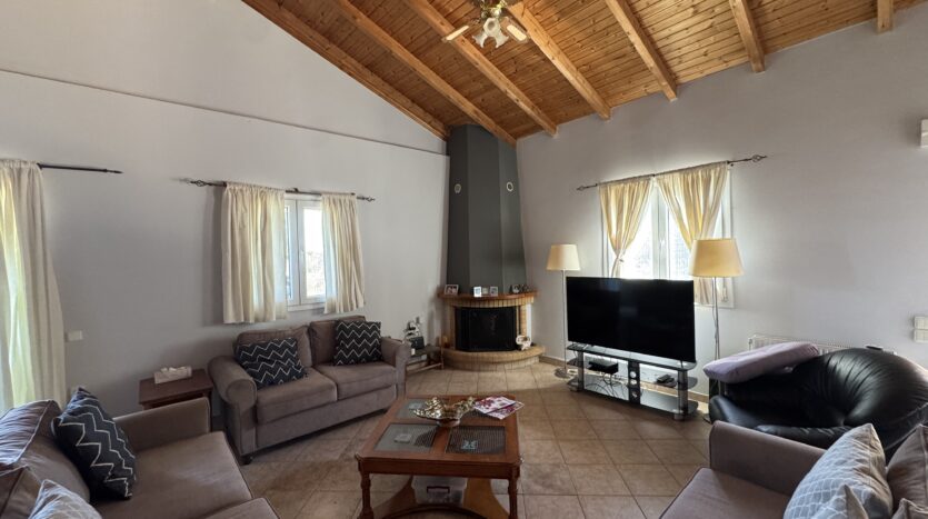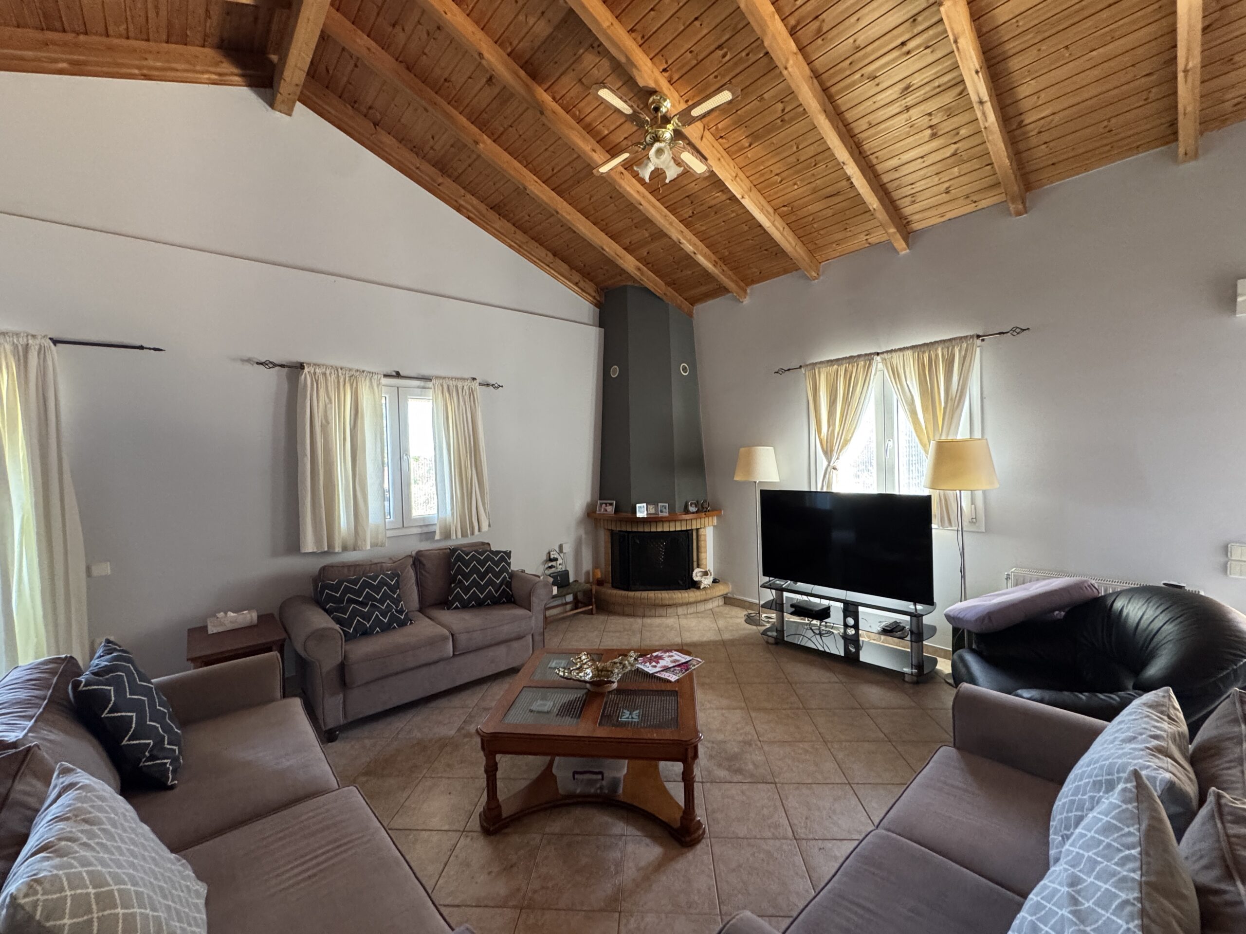 Located in Agios Ioannis, this 170m² house sits on a 2,000m² plot with stunning sea and countryside views. Built in 2008, it is in excellent condition and comes fully furnished, ready for immediate occupancy.