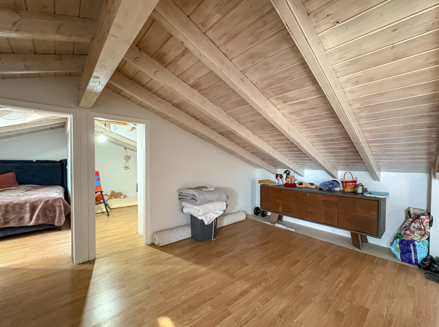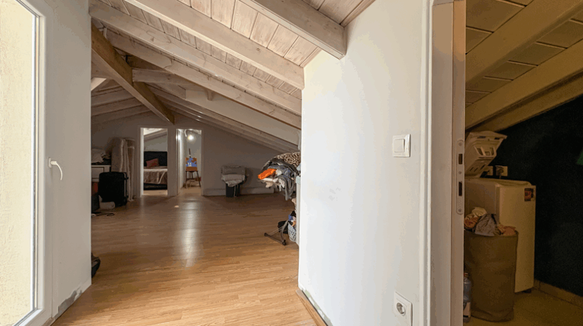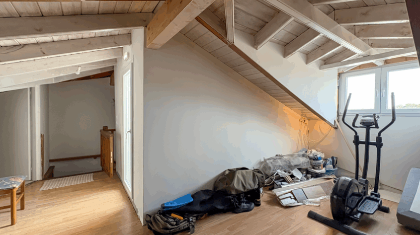 The main level includes 3 bedrooms, 2 bathrooms, and an open living area connected to a the kitchen and dining space. Large windows bring in plenty of light, giving the home a pleasant and airy feel. Upstairs, the attic provides an additional room that can be turned into a 4th bedroom, office, or storage area — ideal for anyone who values extra space and flexibility.