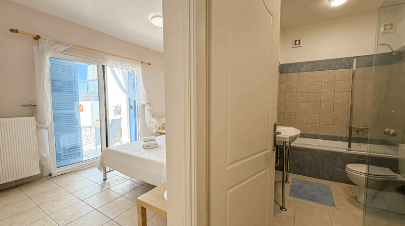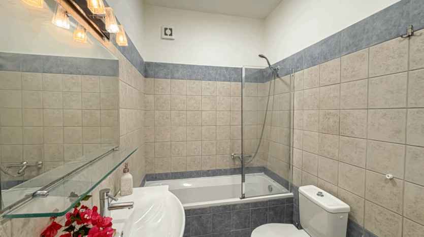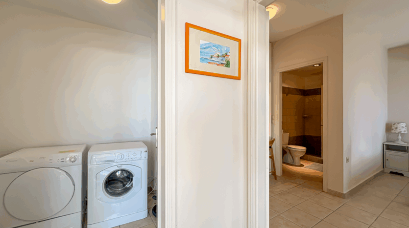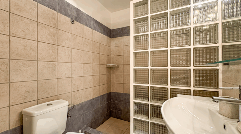 The upper level includes the main living spaces and the master suite, complete with an en-suite bathroom and direct access to the balcony. On the lower floor, two additional double bedrooms each have their own en-suite bathrooms and open directly onto the pool terrace, creating an easy flow between indoor comfort and outdoor relaxation. A WC and a storage room complete the functional layout of the home.