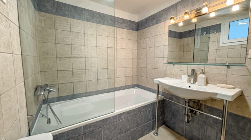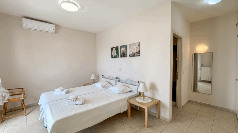 Outside, the villa features a 10.5m x 5m swimming pool surrounded by a paved terrace offering space for sun loungers and outdoor seating. The elevated position provides beautiful open views across the sea and the surrounding countryside. With central heating, new air-conditioning, a gated entrance, and private parking, the villa offers both comfort and convenience.