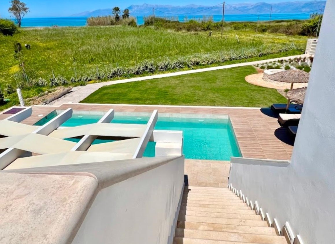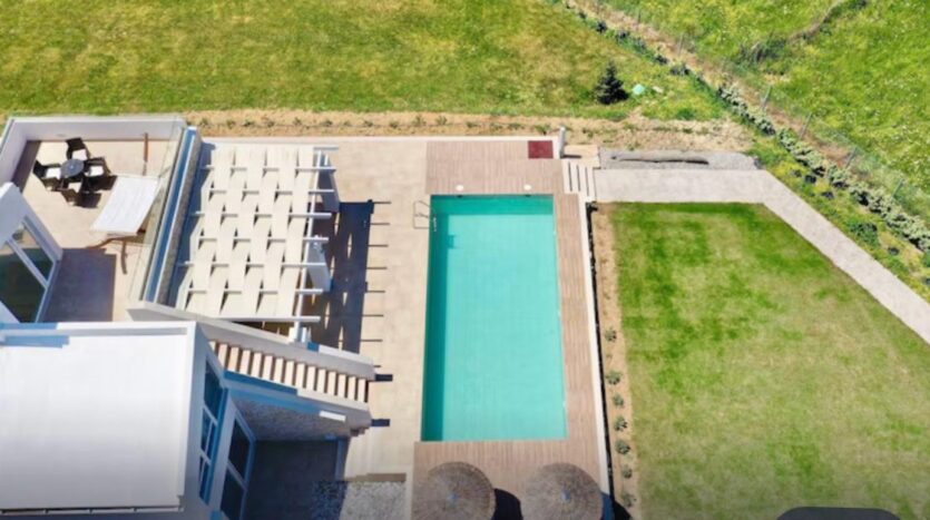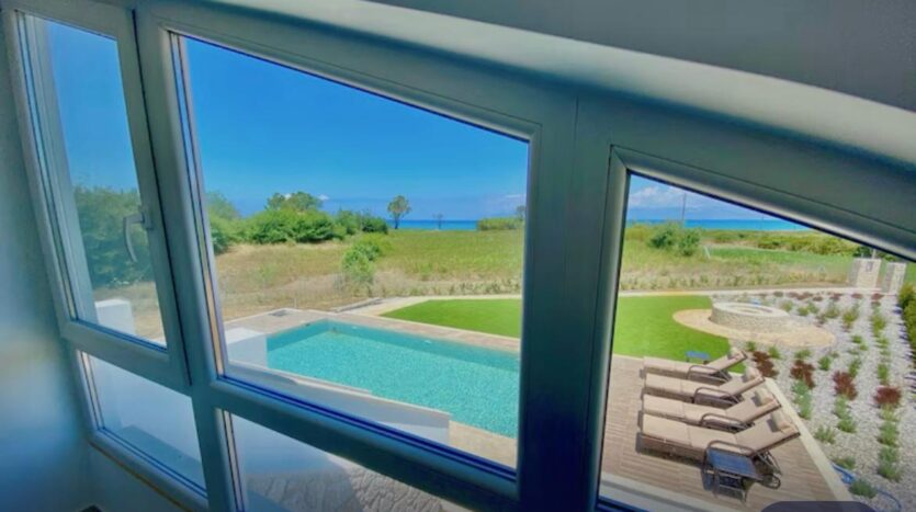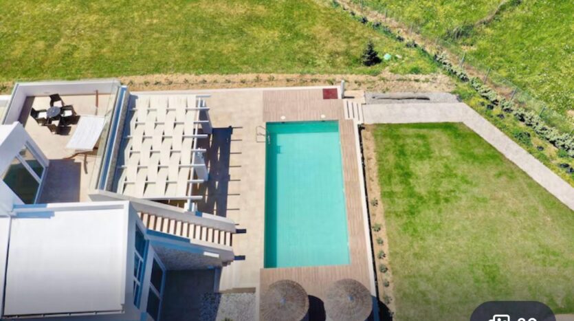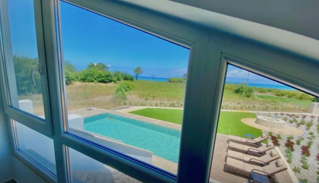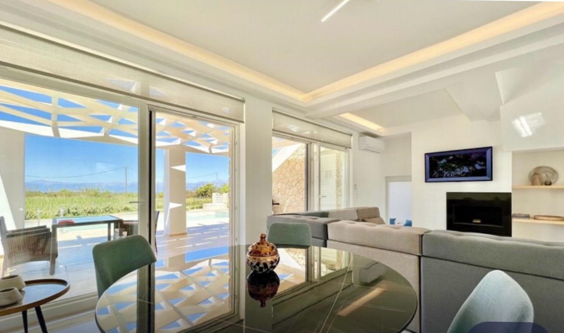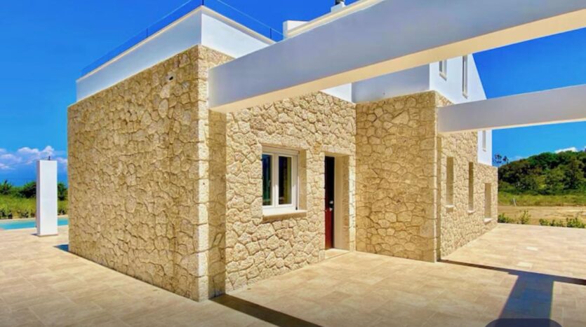 This beautifully designed modern villa offers a rare combination of privacy, space, and proximity to the beach. Built in 2022, the property sits on a generous 1,800m² plot and offers 130m² of well-planned living space. Just 100m from a long stretch of sandy beach, the villa is located in the peaceful area of Agnos on the northern coast of Corfu—only a few minutes’ drive from the lively towns of Roda and Acharavi.