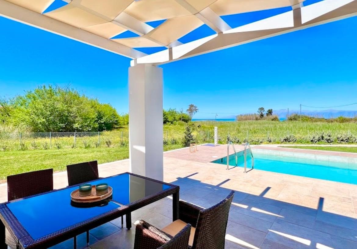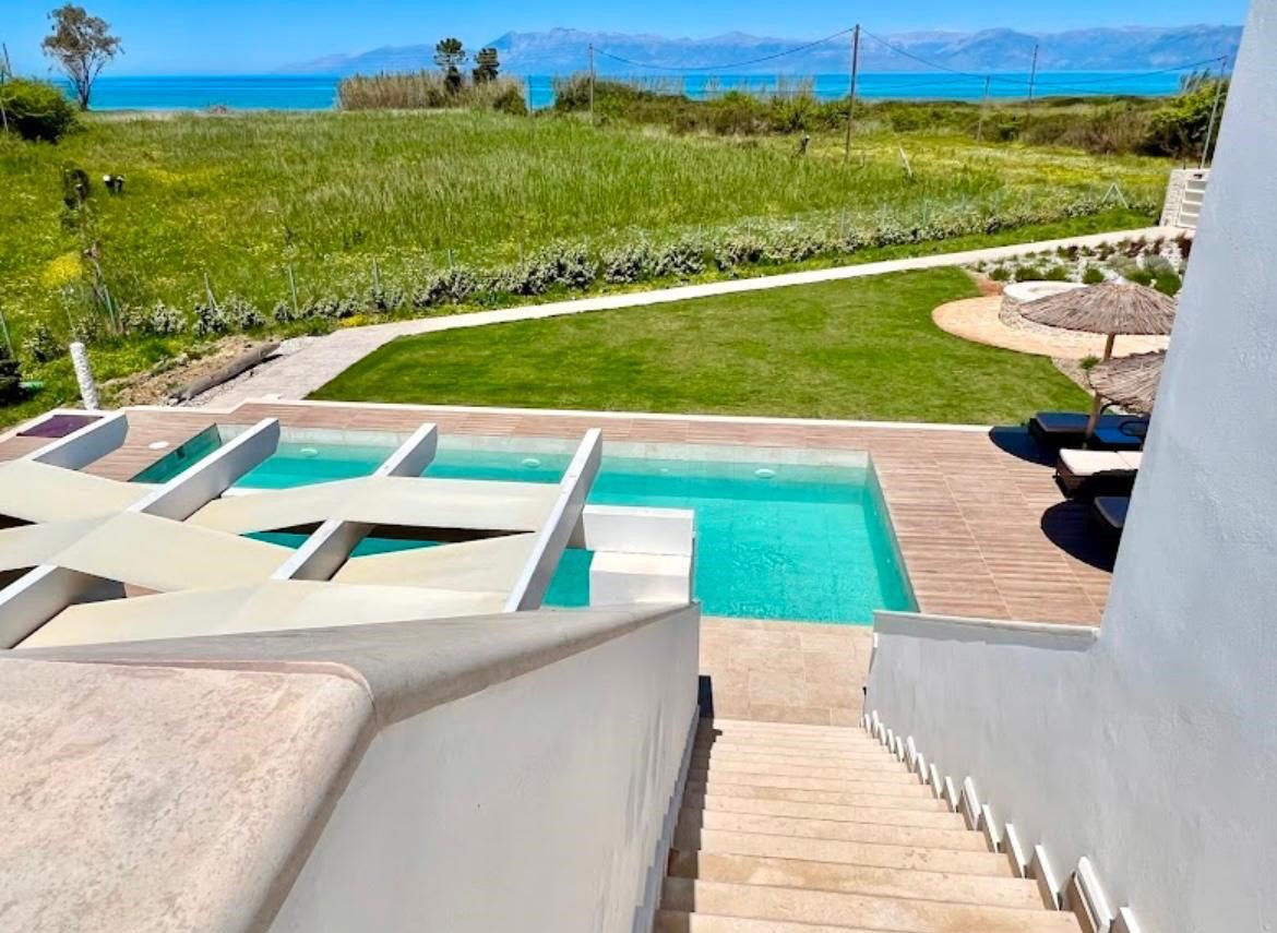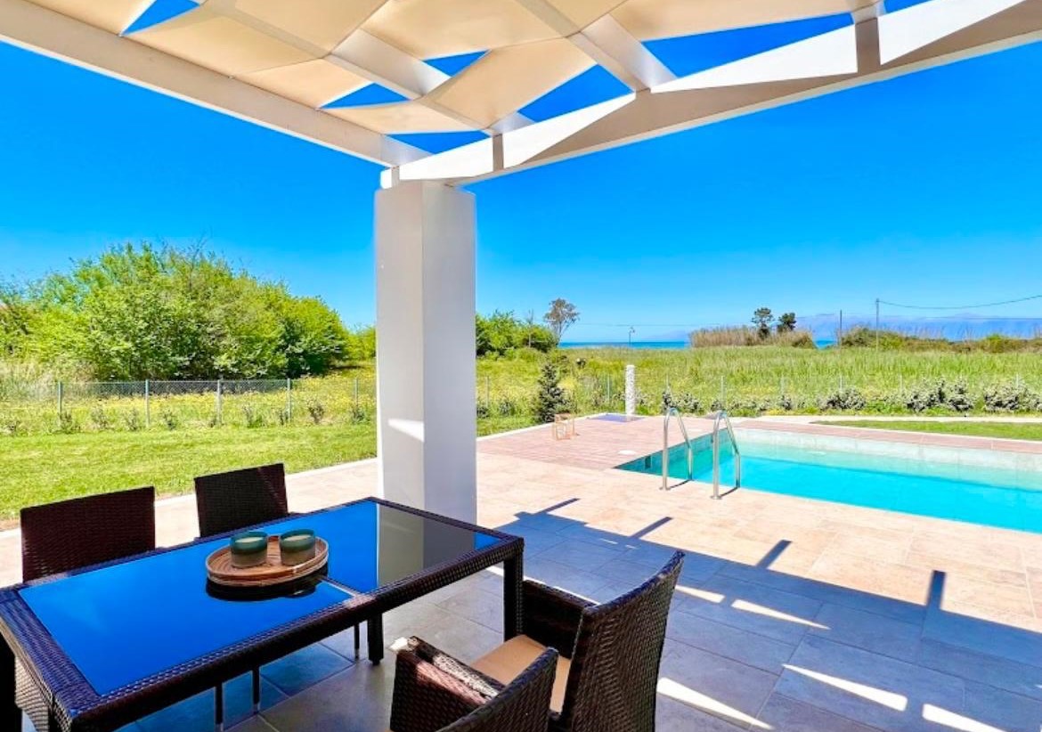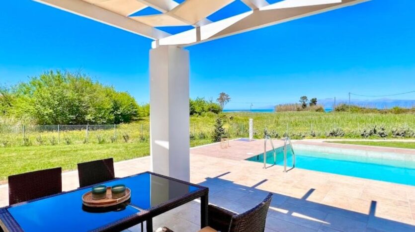 This beautifully designed modern villa offers a rare combination of privacy, space, and proximity to the beach. Built in 2022, the property sits on a generous 1,800m² plot and offers 130m² of well-planned living space. Just 100m from a long stretch of sandy beach, the villa is located in the peaceful area of Agnos on the northern coast of Corfu—only a few minutes’ drive from the lively towns of Roda and Acharavi.