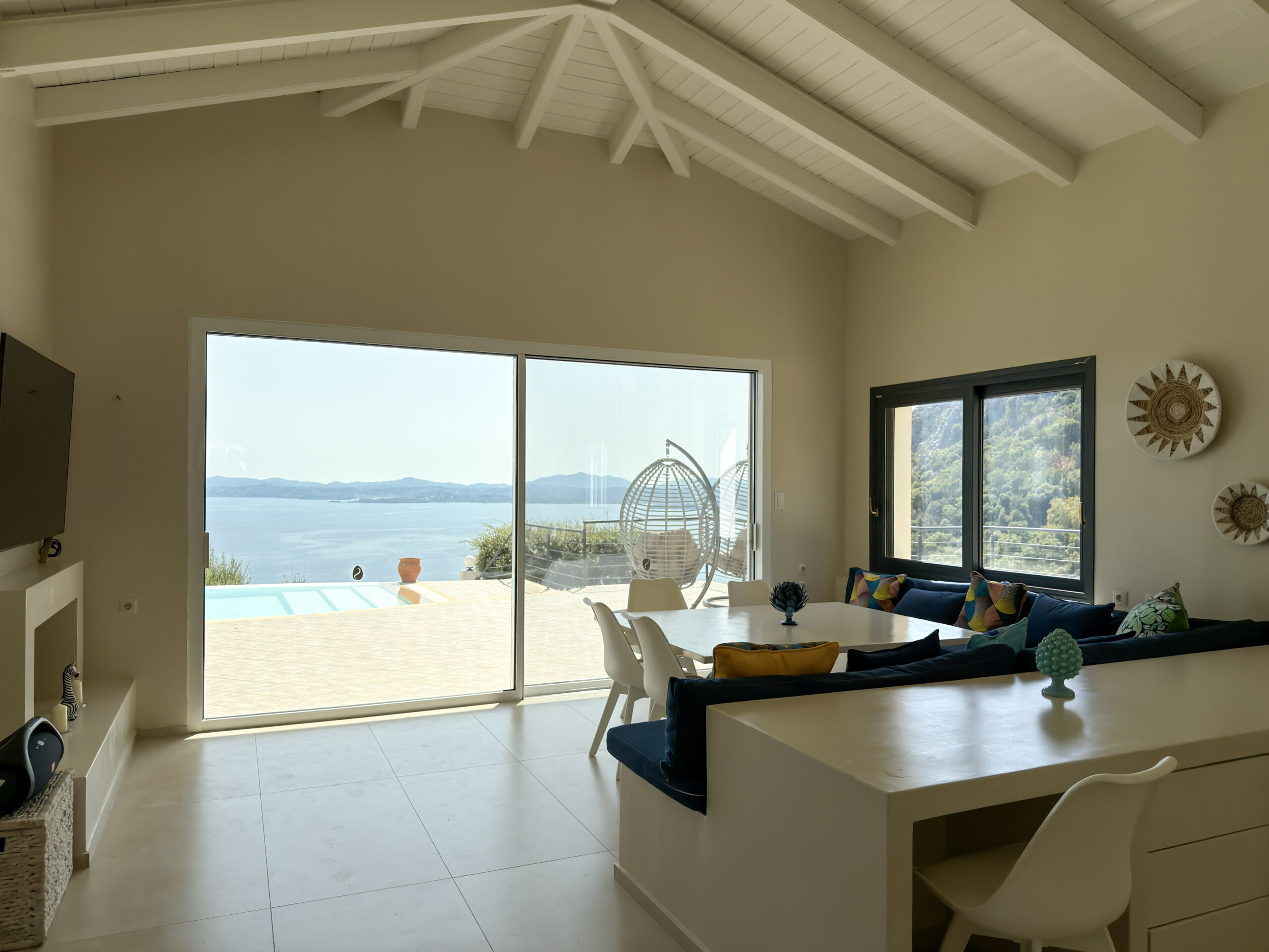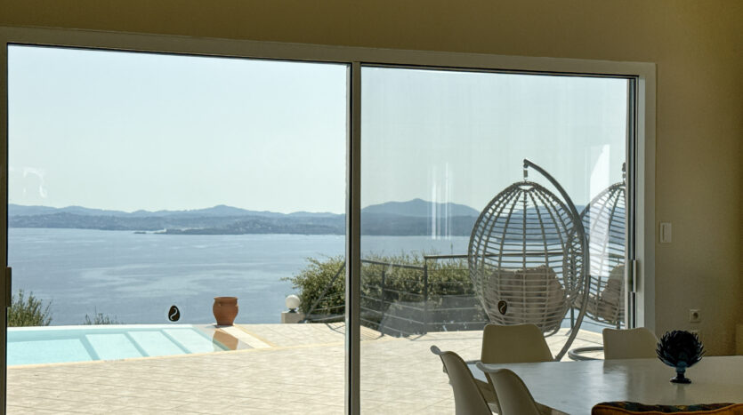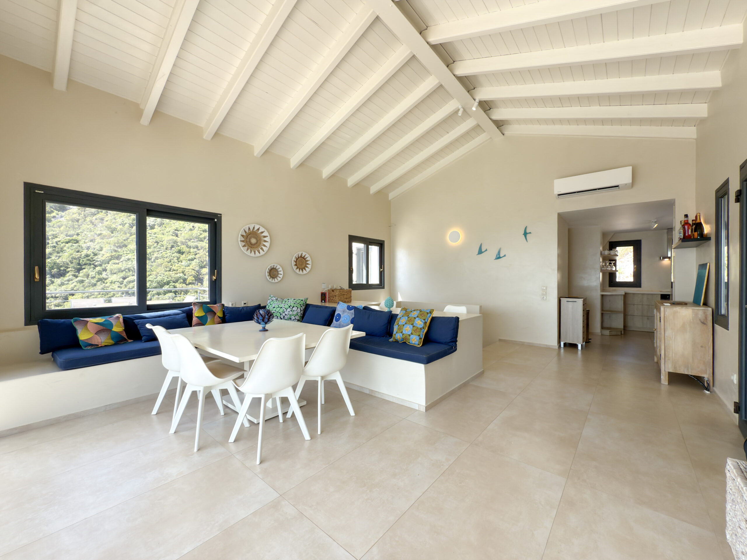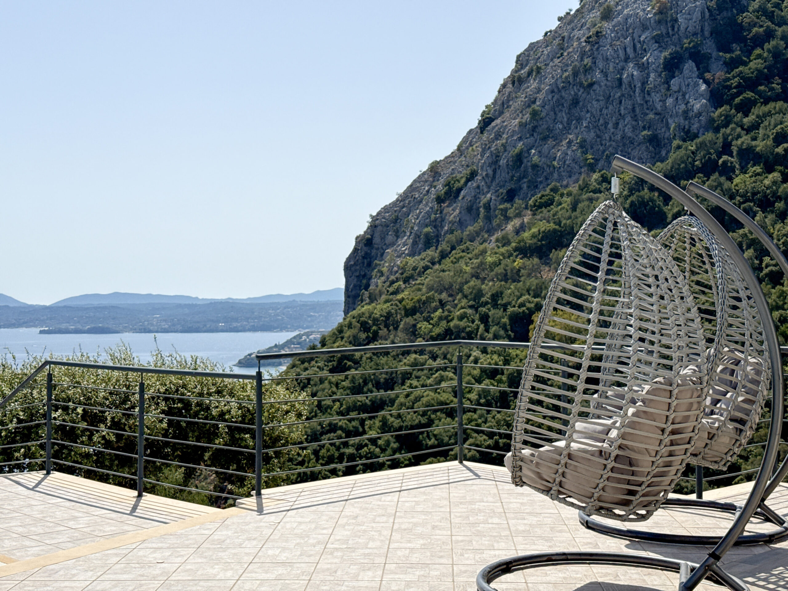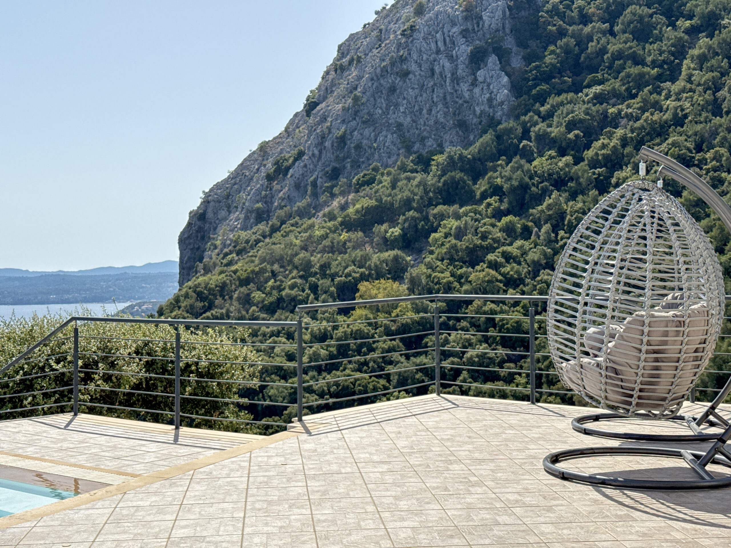Positioned in the exclusive hillside enclave of Vigglatouri, this 140m² villa has been designed with precision to capture uninterrupted panoramic views across Corfu’s coastline, renovated to a high standard in 2023. Set on a beautifully landscaped, private 4,800m² plot, the property offers complete seclusion and the rare advantage of an additional 60m² of buildable allowance.
