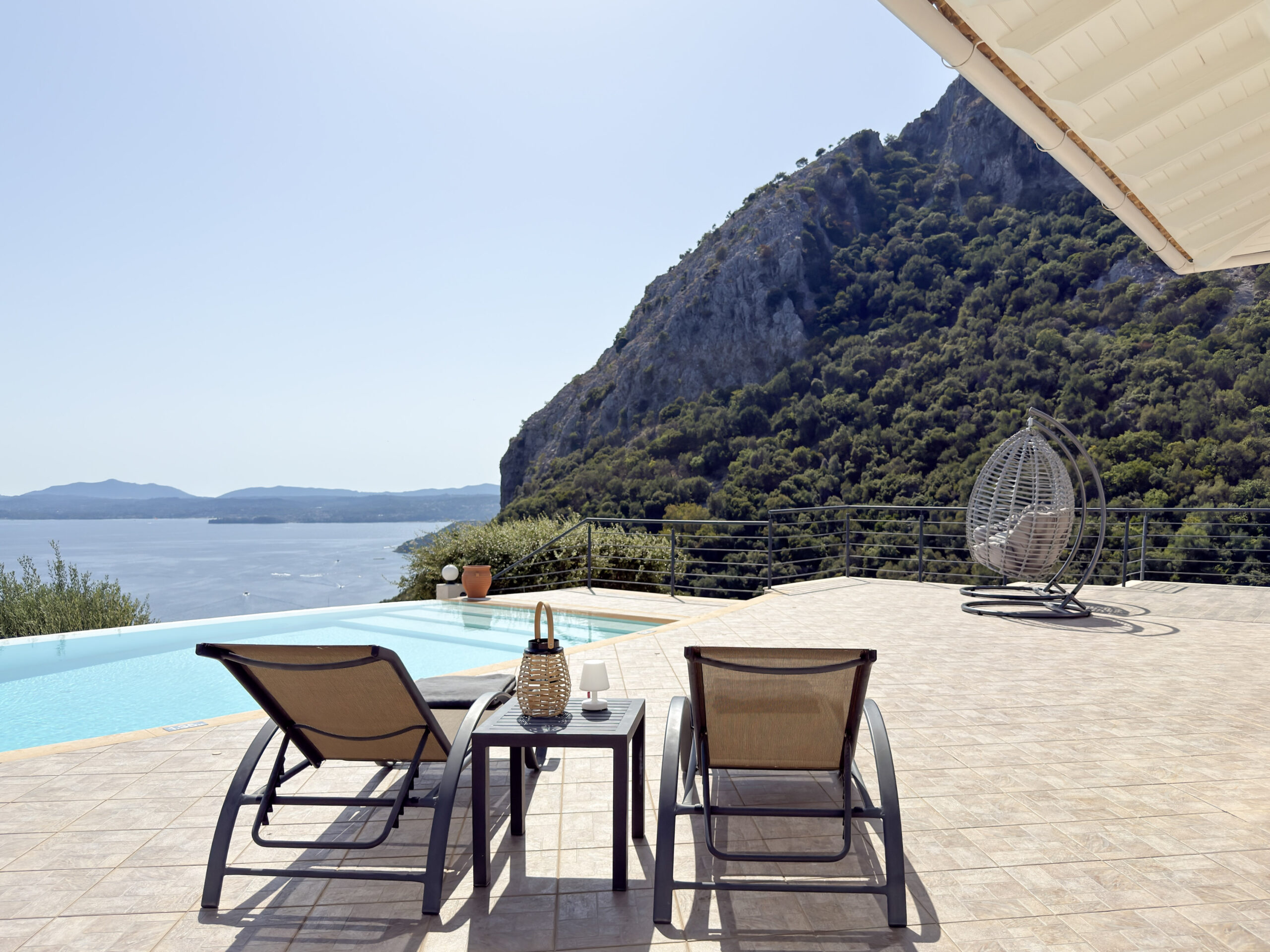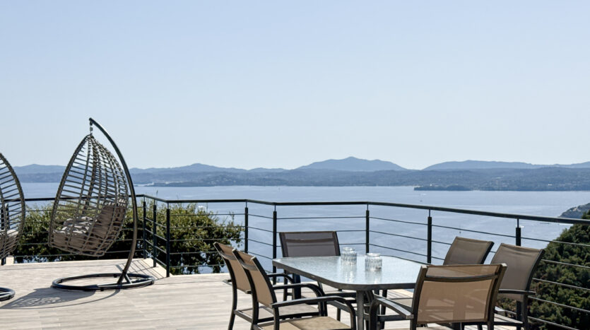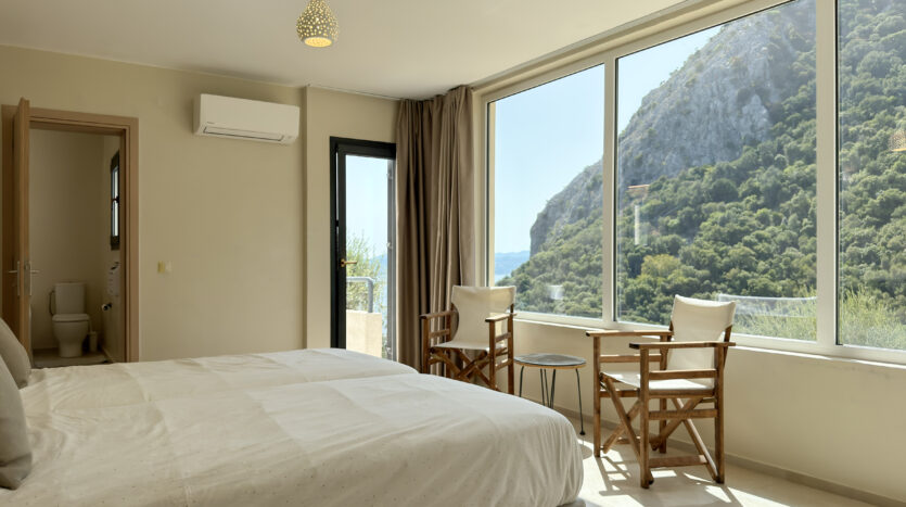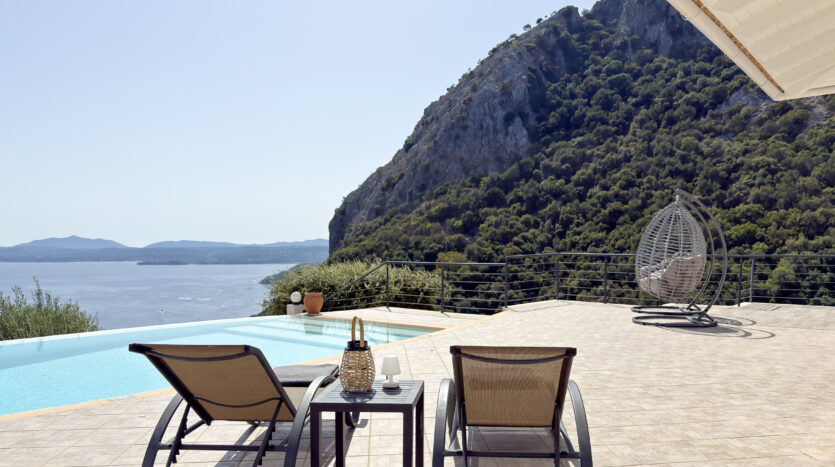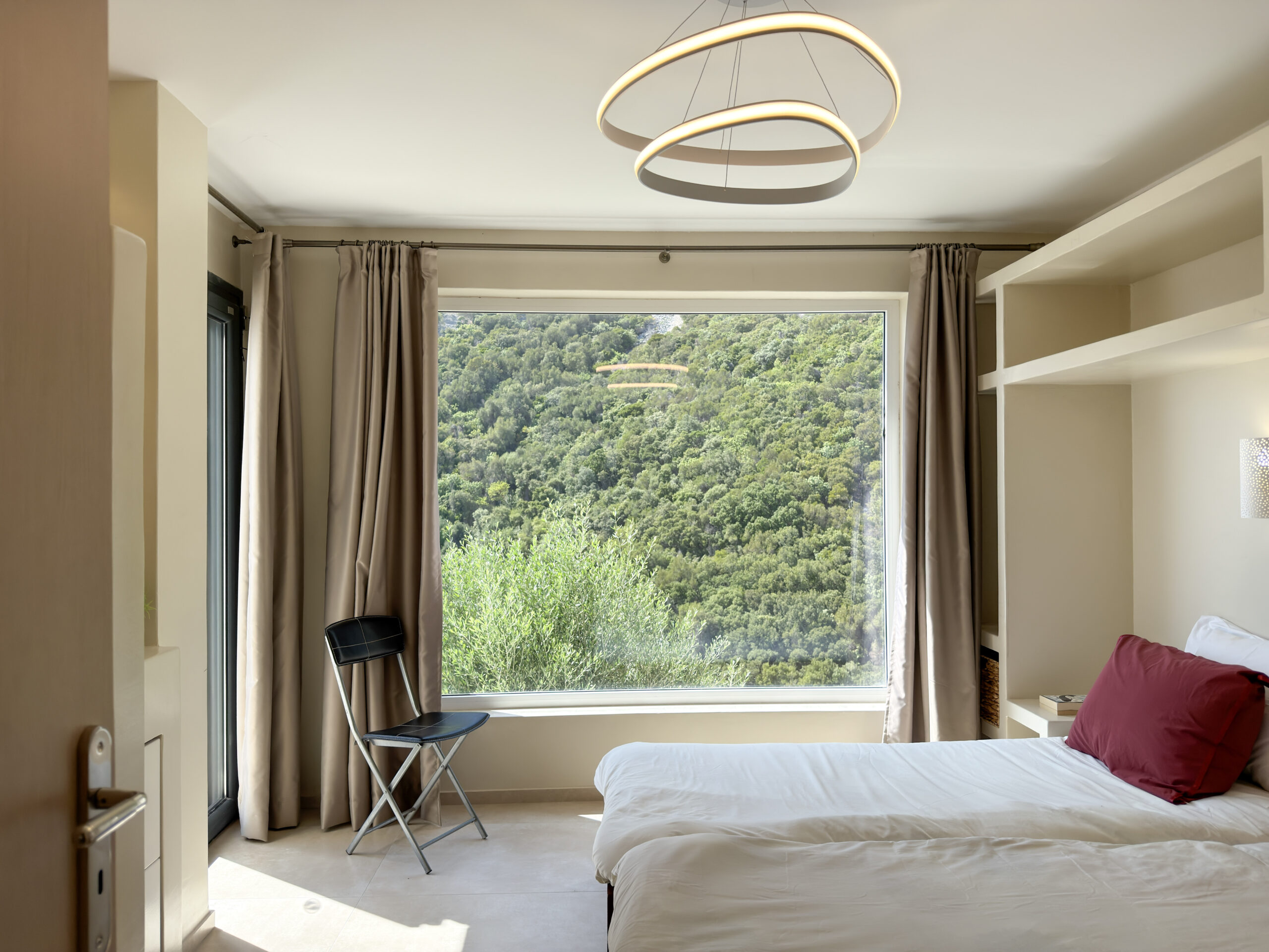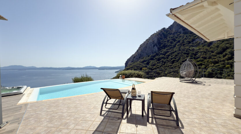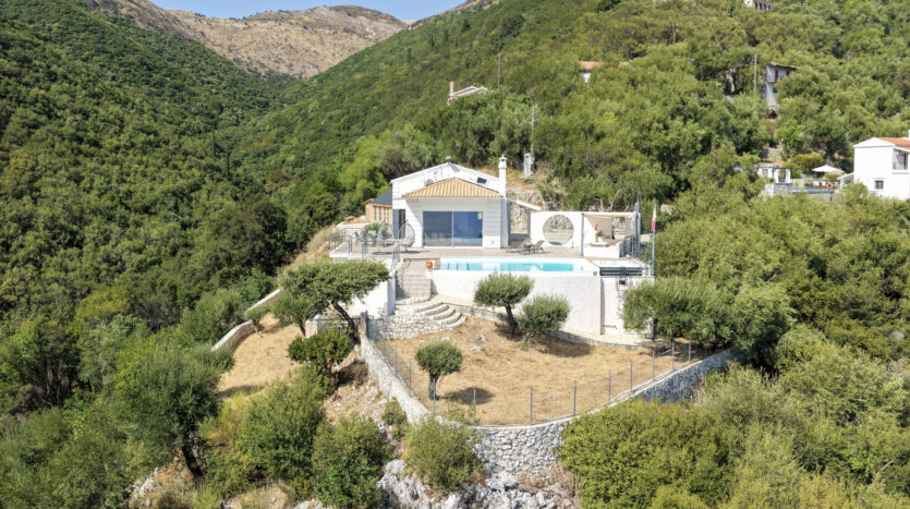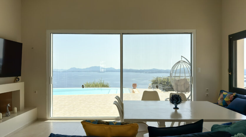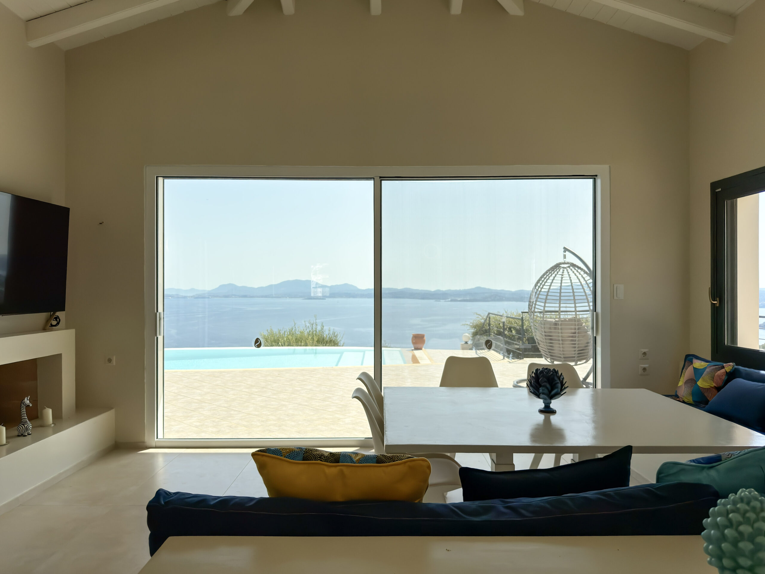 Positioned in the exclusive hillside enclave of Vigglatouri, this 140m² villa has been designed with precision to capture uninterrupted panoramic views across Corfu’s coastline, renovated to a high standard in 2023. Set on a beautifully landscaped, private 4,800m² plot, the property offers complete seclusion and the rare advantage of an additional 60m² of buildable allowance.