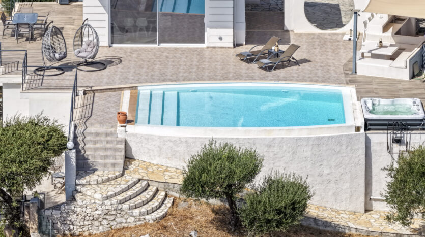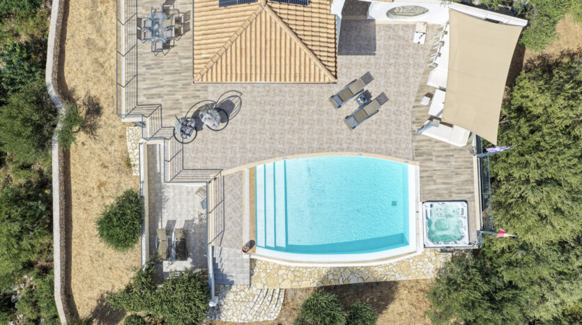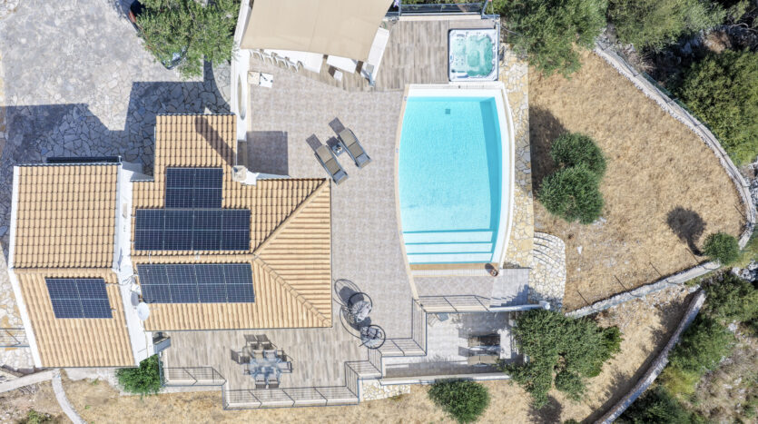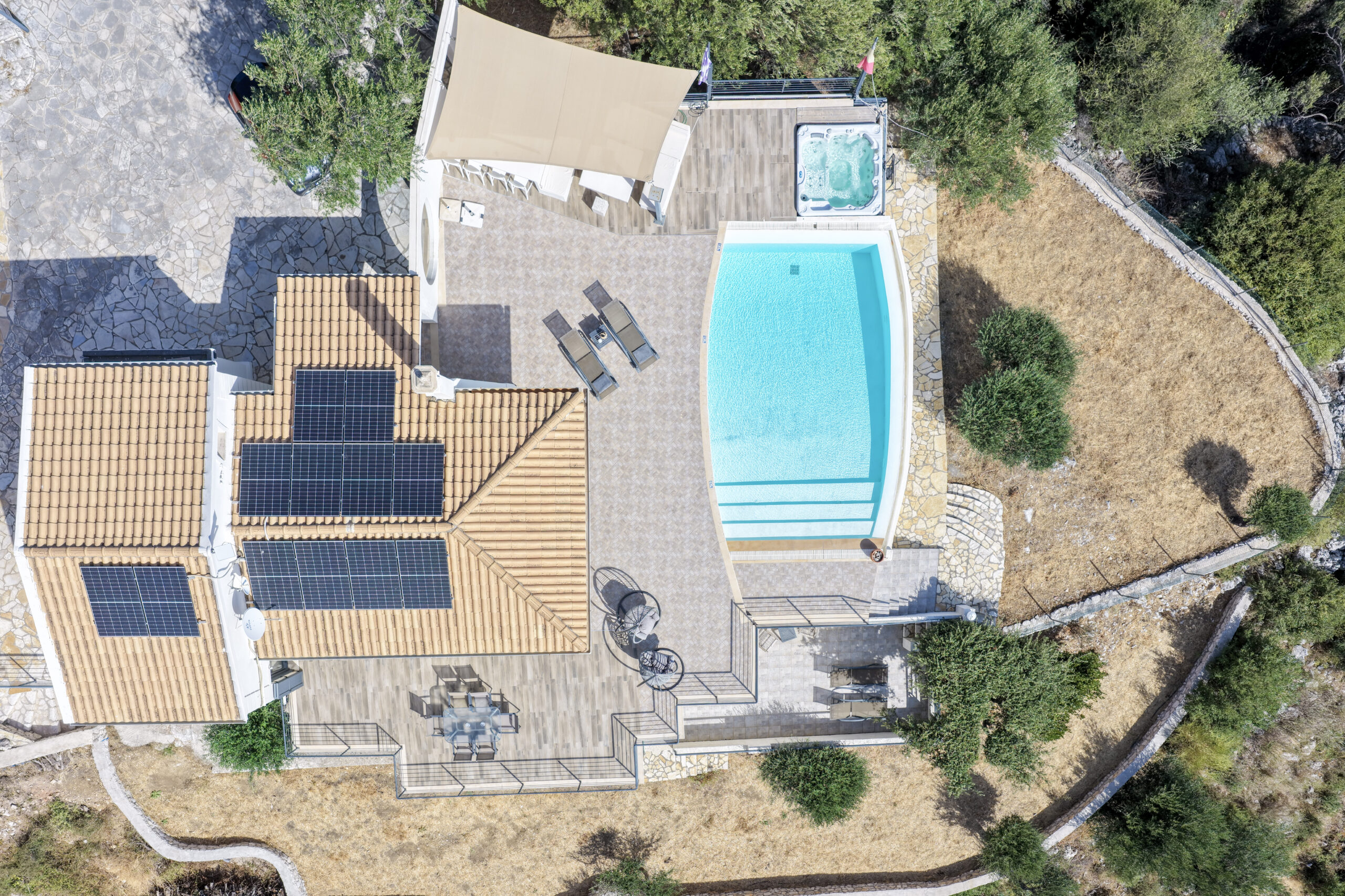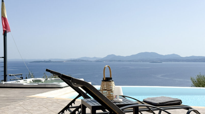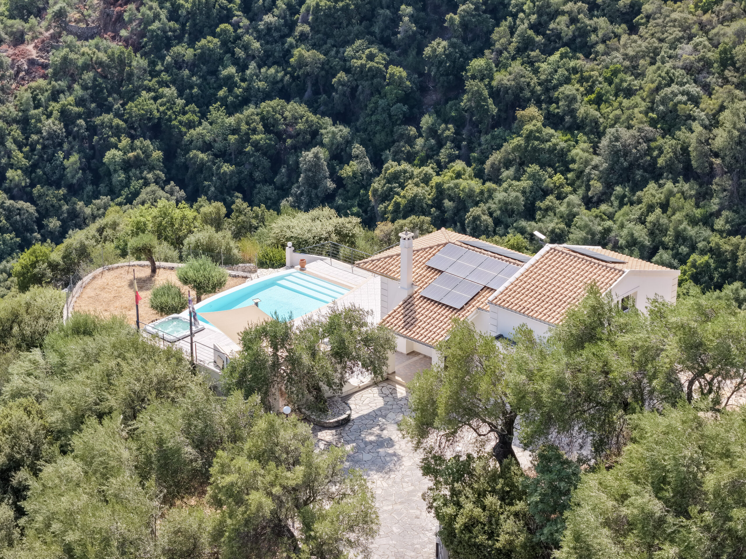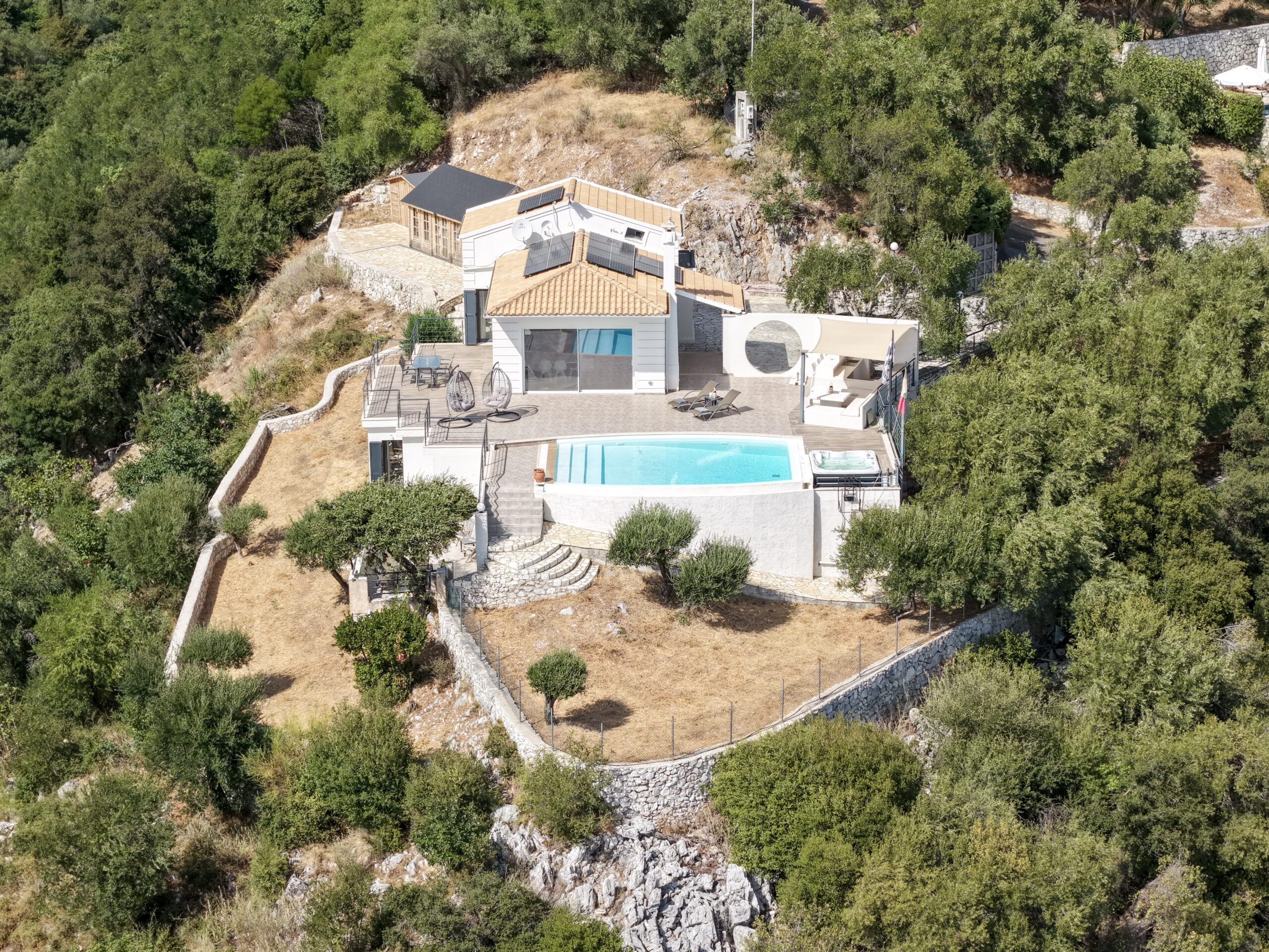 Outdoors, the villa delivers a resort-standard environment. A wrap-around terrace creates multiple private zones, complemented by a swimming pool, jacuzzi, outdoor cinema, fully equipped kitchen, shower, and landscaped grounds. Discreet luxuries include electric gates, a comprehensive security system, solar panels, Starlink internet, and air conditioning throughout — extending even to the wooden outbuildings. With no overlooking and no possibility of future development, privacy here is absolute. This is a turnkey residence offering elegance, exclusivity, and investment potential in one of Corfu’s most desirable locations on the Northeast coast.