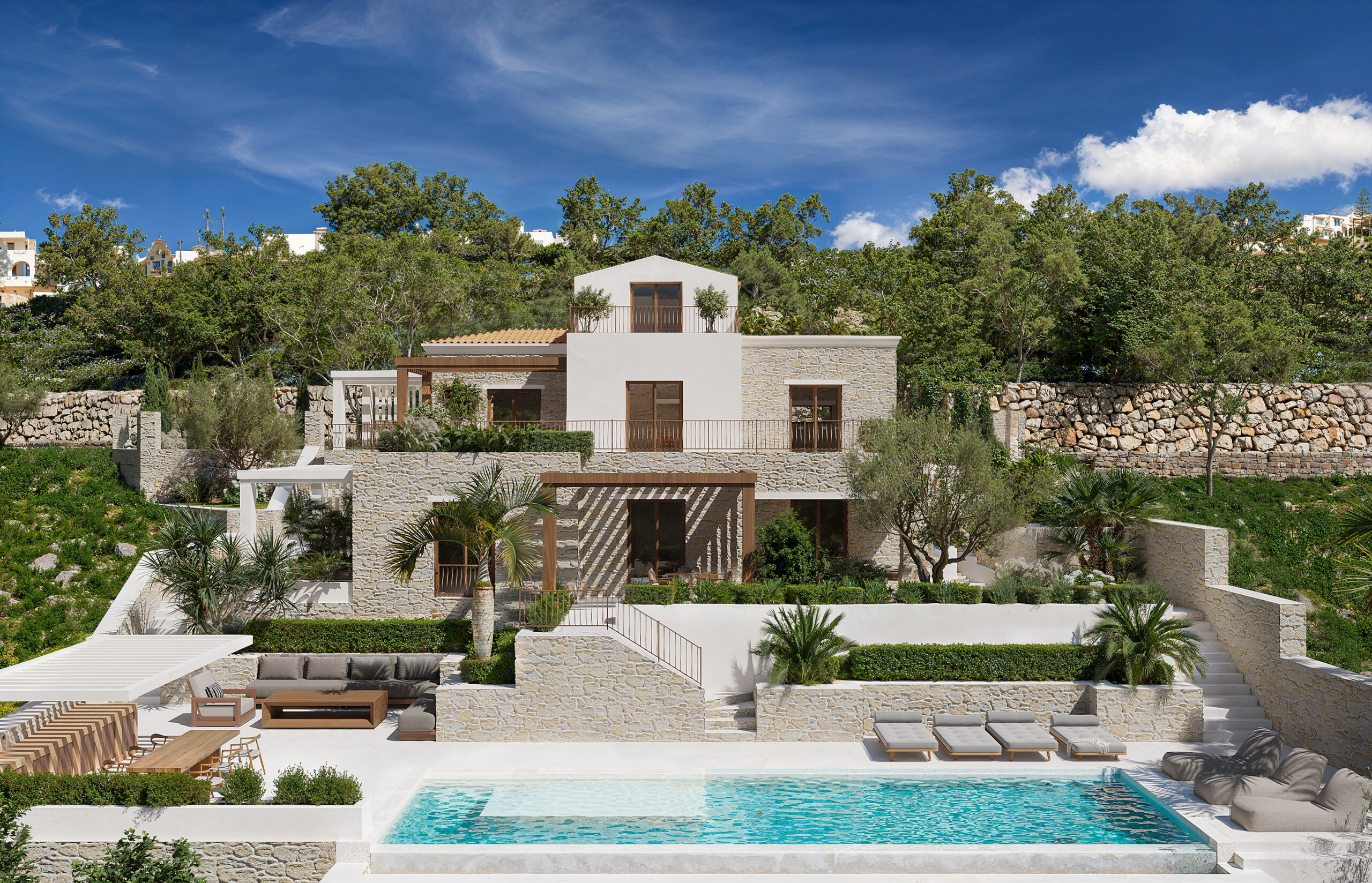 Perfectly west-facing, the property offers uninterrupted panoramic sea views and iconic sunset vistas, blending elegant architecture with nature, comfort, and total privacy.