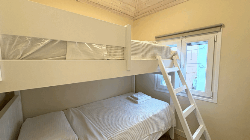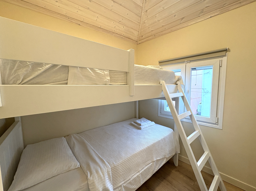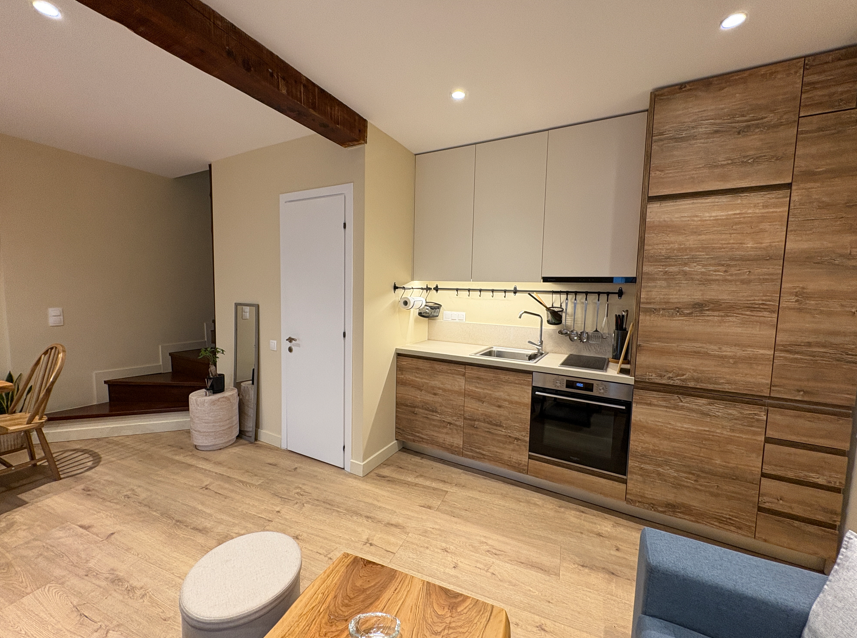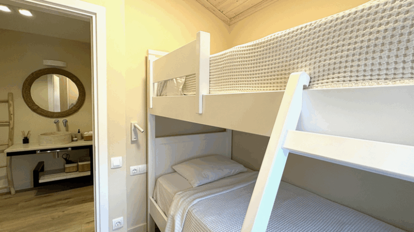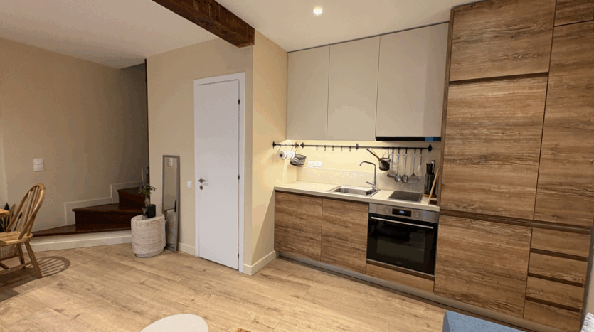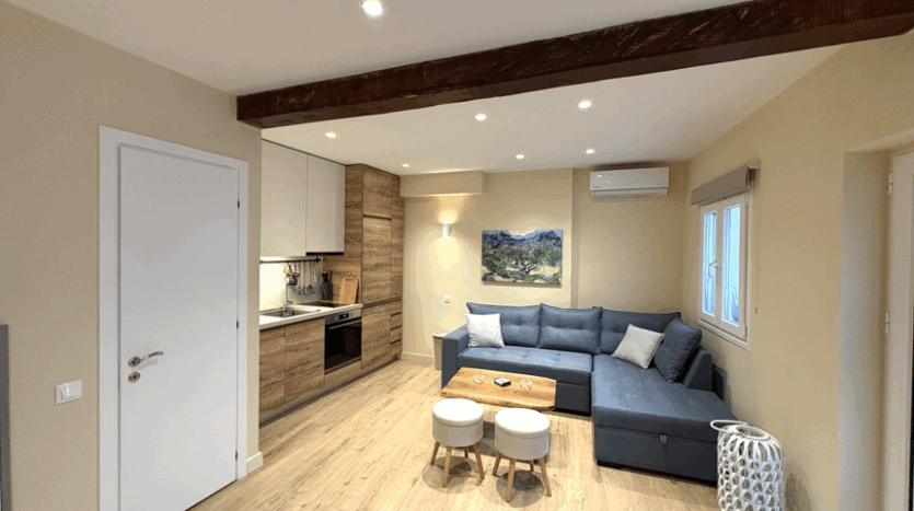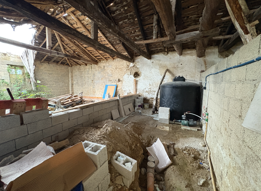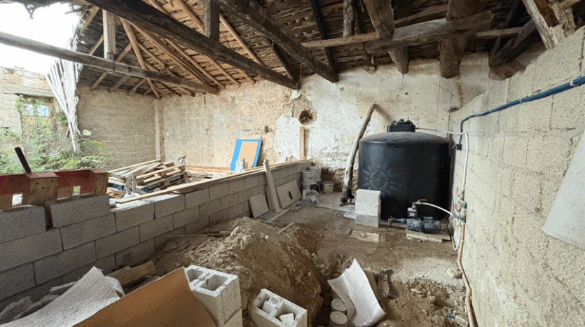 The property comes with stylish furnishings such as an integrated kitchen, sofa bed, and two olive-wood tables. It is in excellent condition and ready to move into immediately. Behind the main house, there’s an additional unfinished structure offering space for storage or future use.
