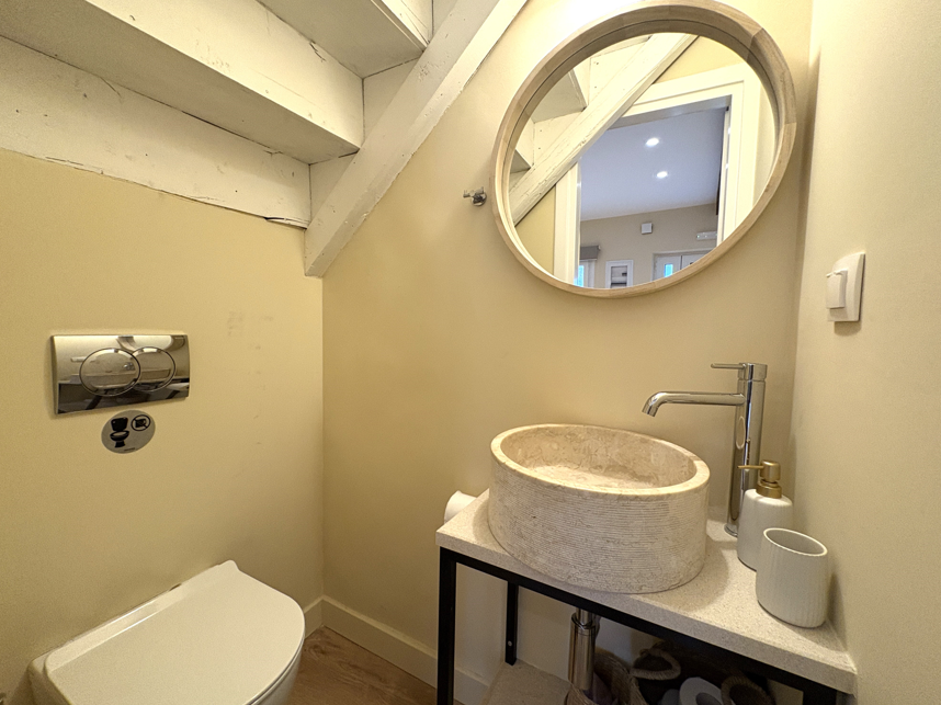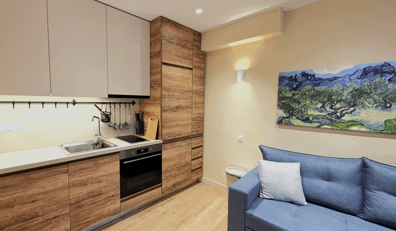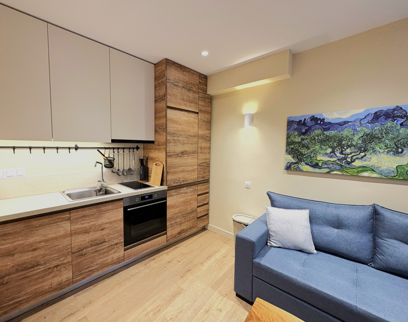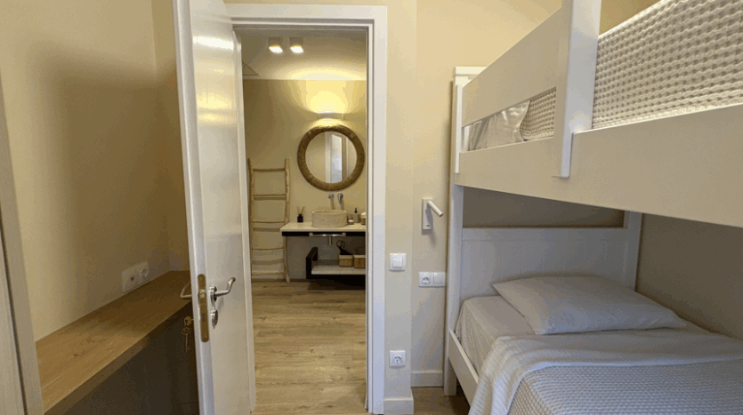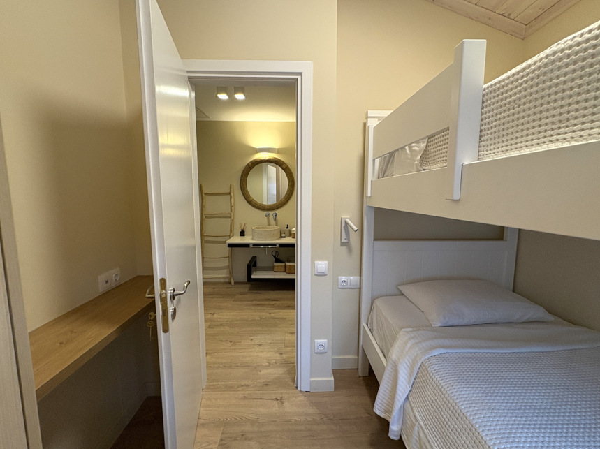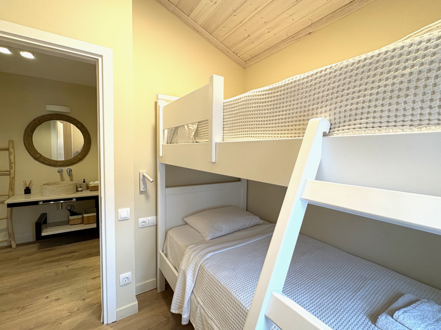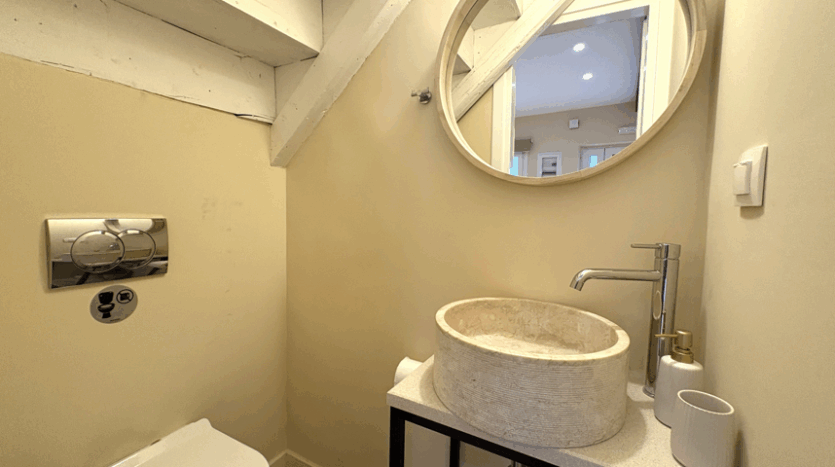 The property comes with stylish furnishings such as an integrated kitchen, sofa bed, and two olive-wood tables. It is in excellent condition and ready to move into immediately. Behind the main house, there’s an additional unfinished structure offering space for storage or future use.