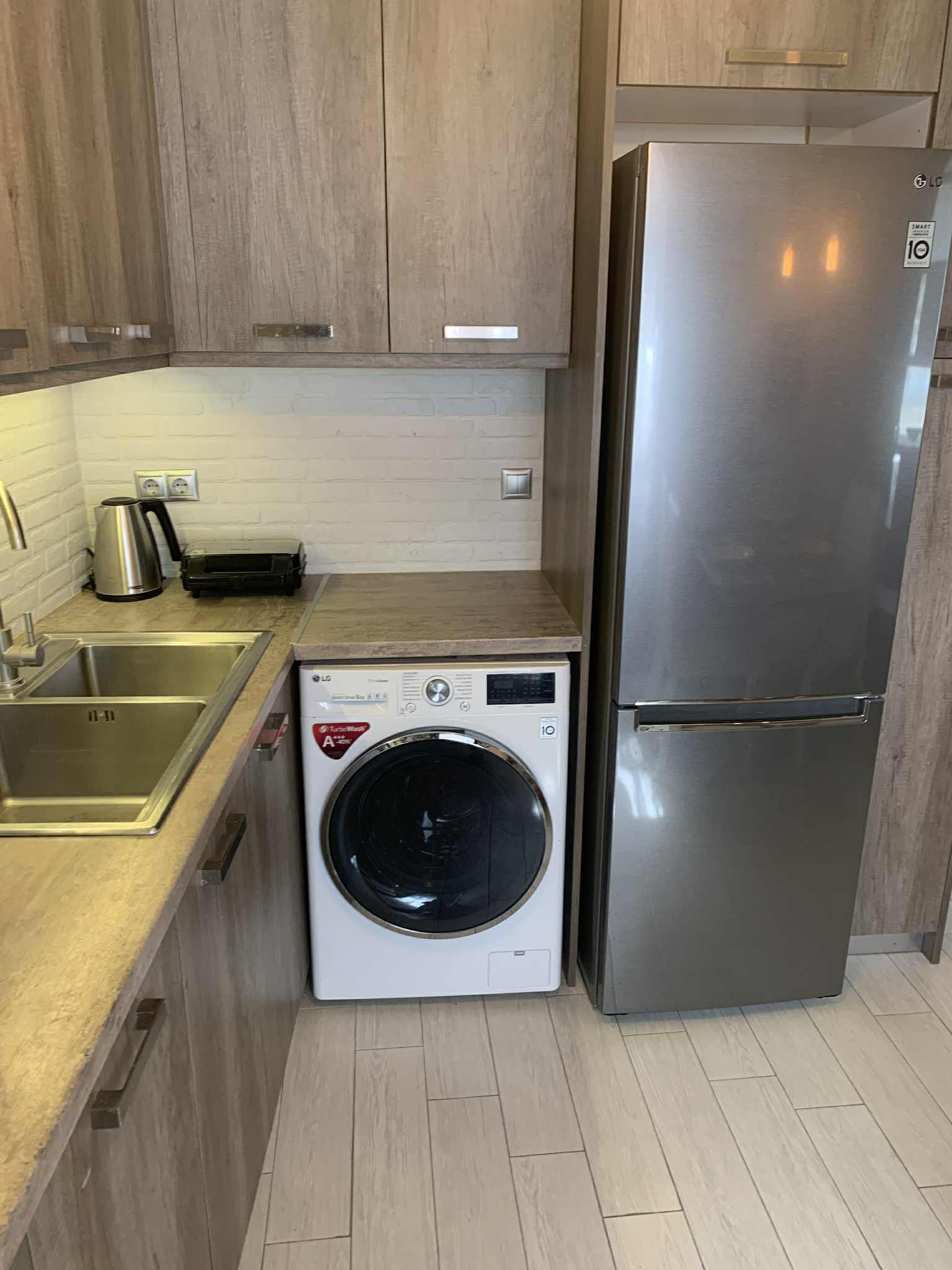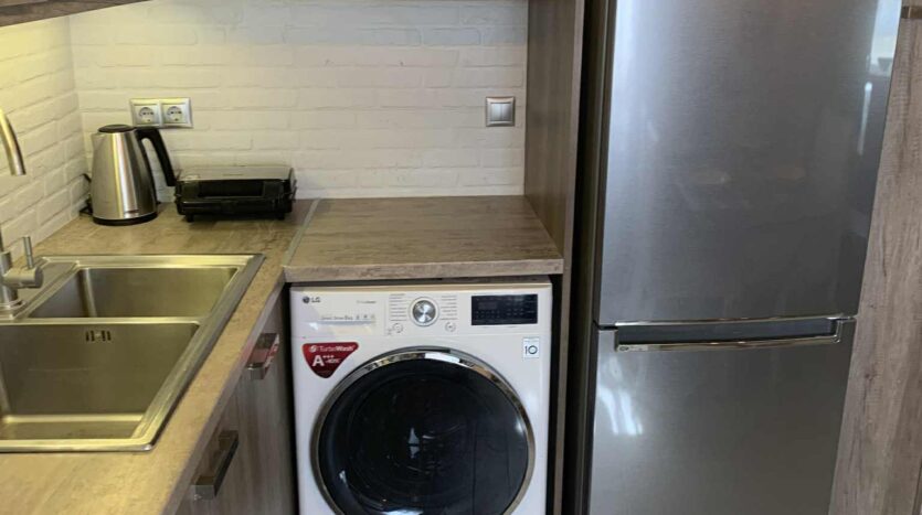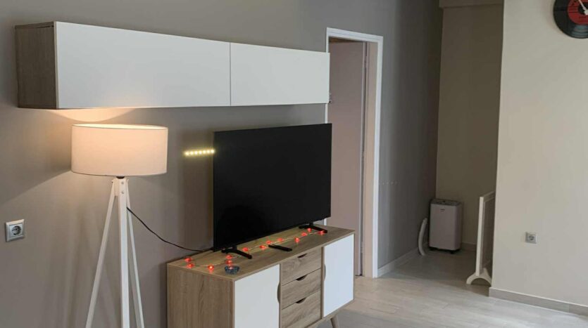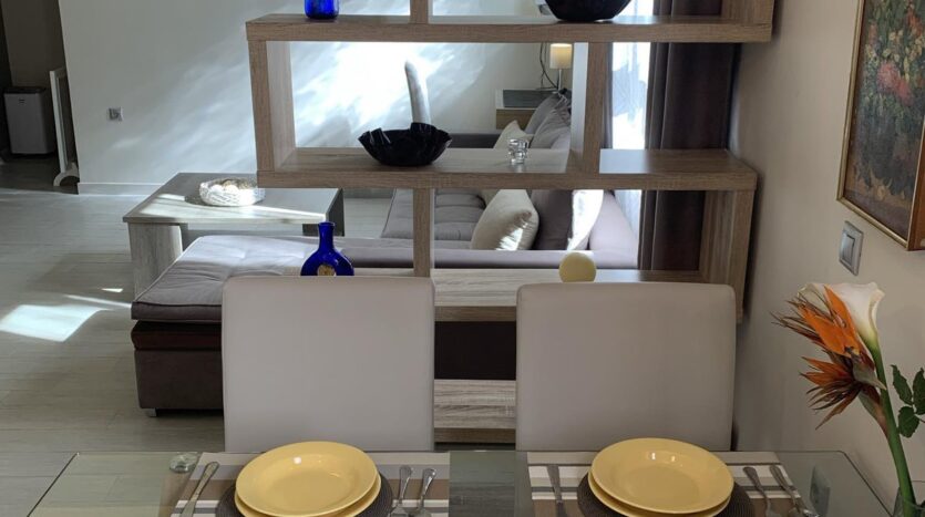 Inside, the property offers a modern and practical layout. There’s a bright bedroom, a bathroom, and an open-plan living and dining area connected to a fully fitted modern kitchen. The living room has been designed with clean, minimal colors, giving the space a relaxing and comfortable feel.