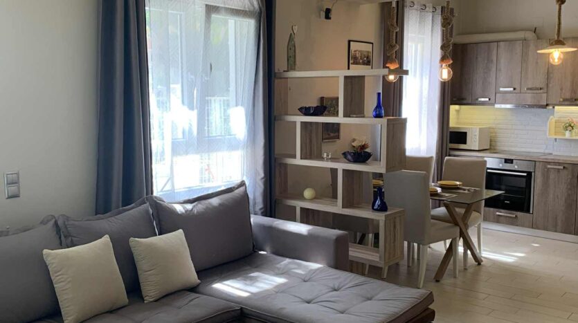 This beautifully renovated ground-floor apartment is located right in the center of Benitses, just 45 meters from the sea. Everything you need is within walking distance, including cafés, restaurants, and a local bus stop that connects you easily with Corfu Town.