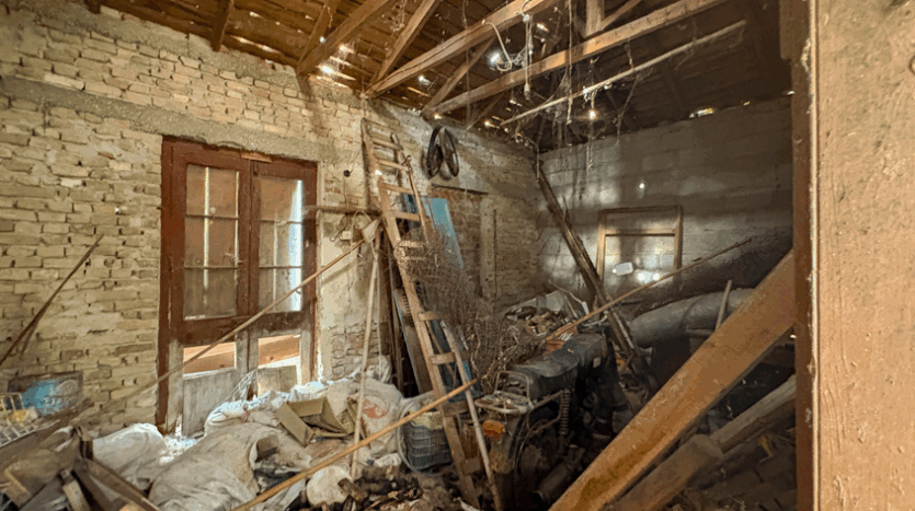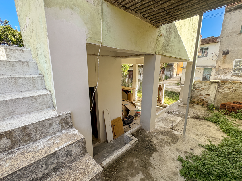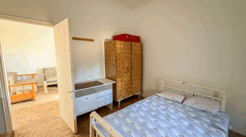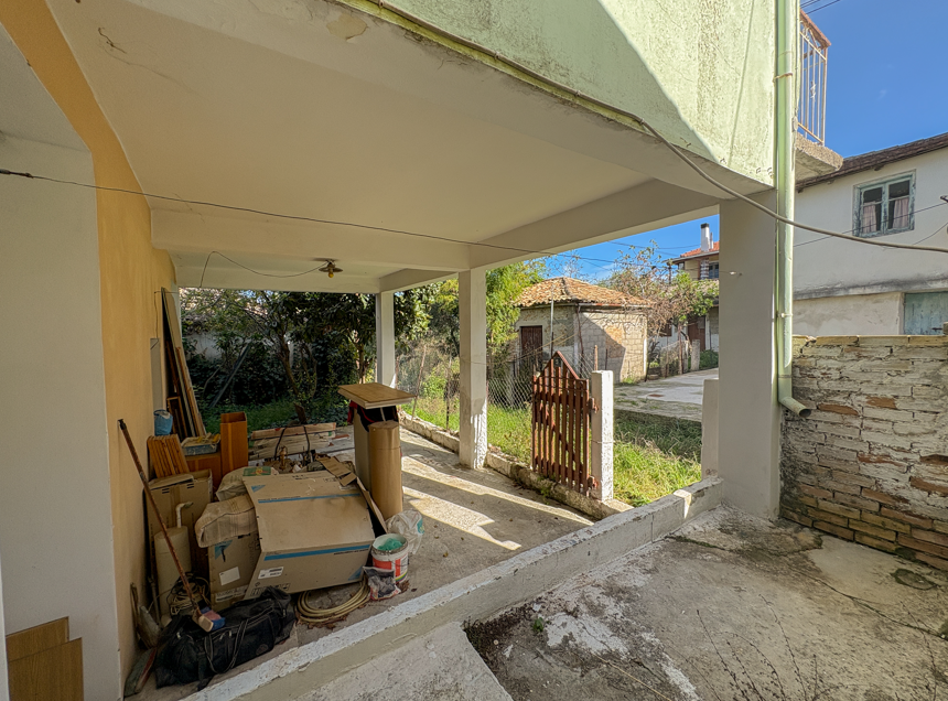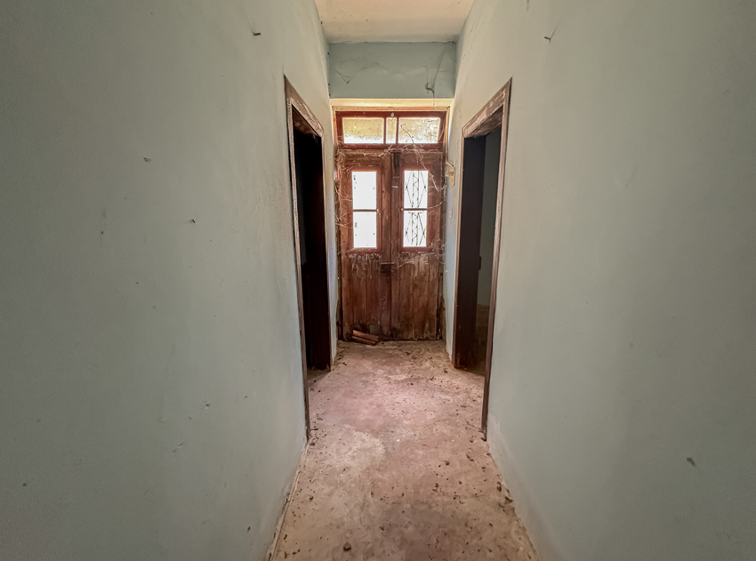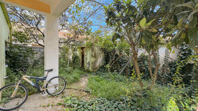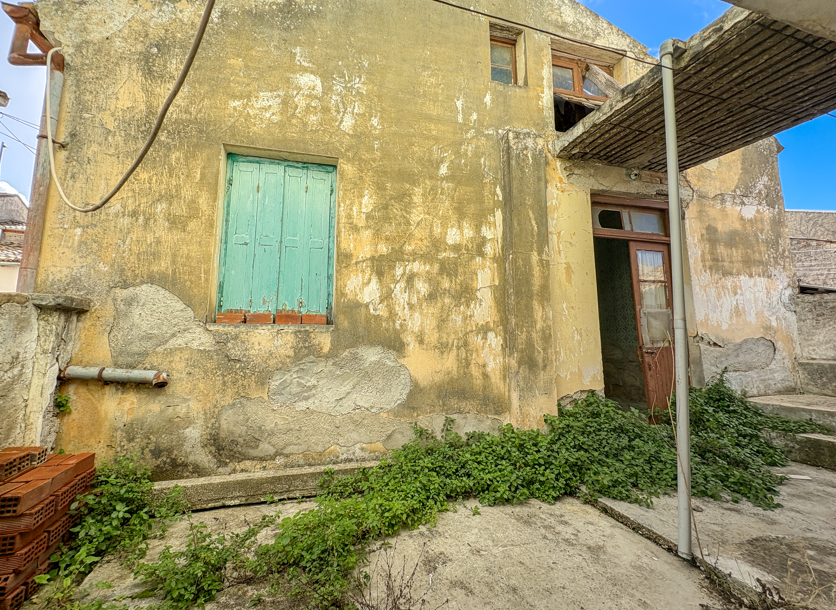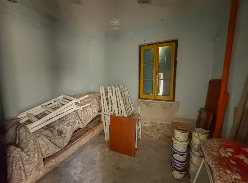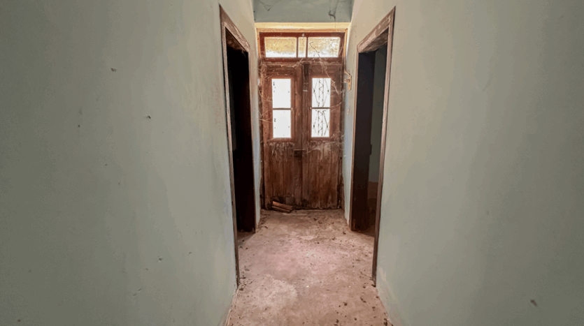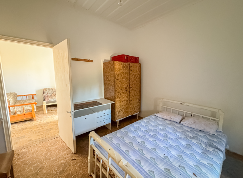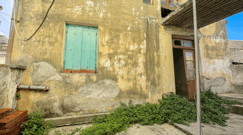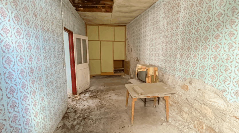 The first house, easily recognized by its yellow exterior, is a stone-built structure that has been covered in concrete. It has possibilities to be further extended by one metre from the attic level maisonette-style layout. The second house, directly beside it, can also be extended and enclosed, offering flexibility for renovation or expansion according to the buyer’s needs.