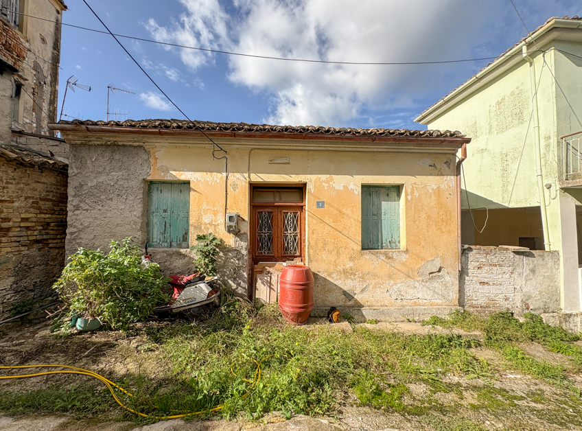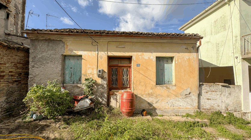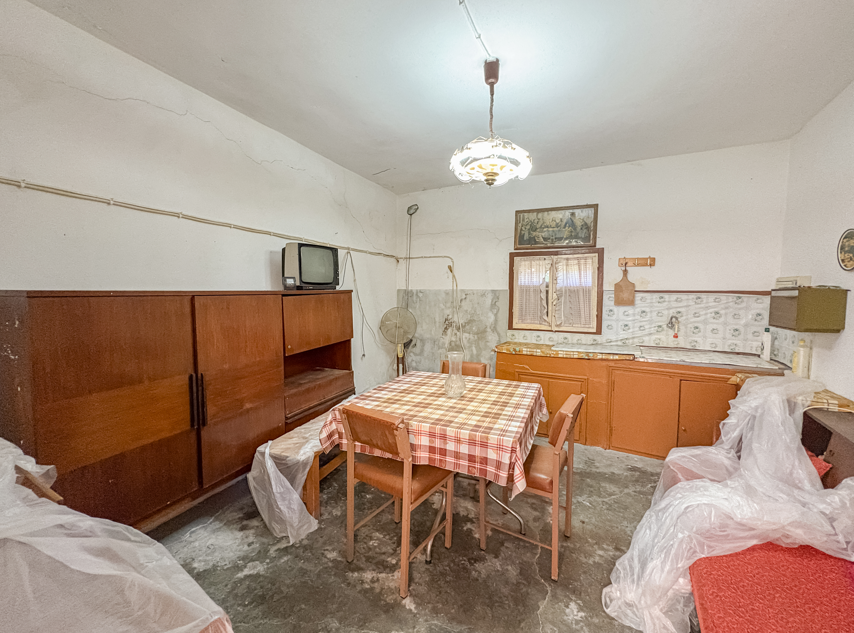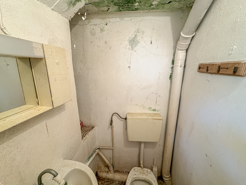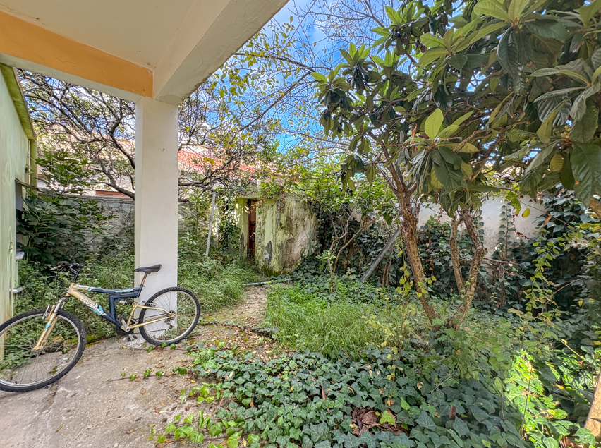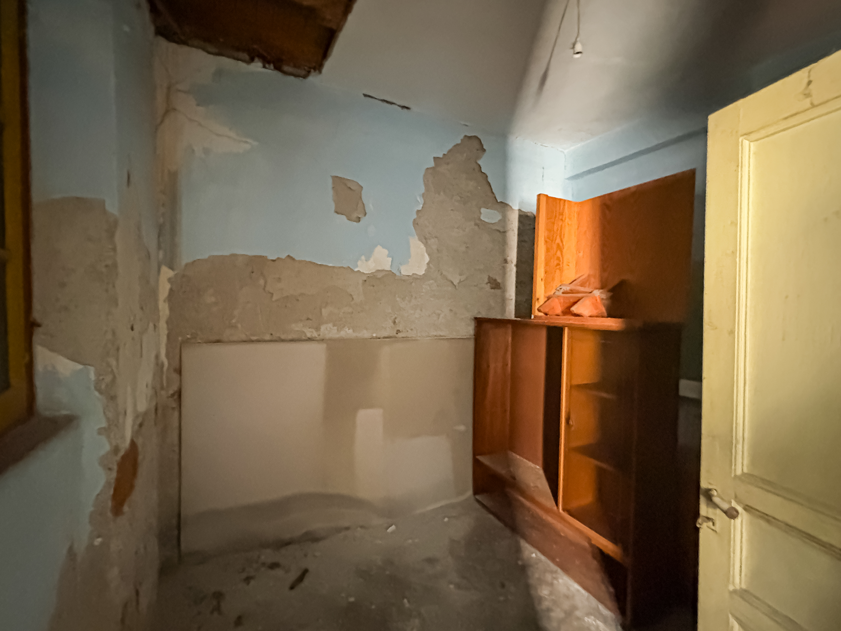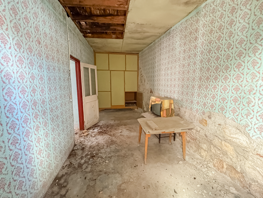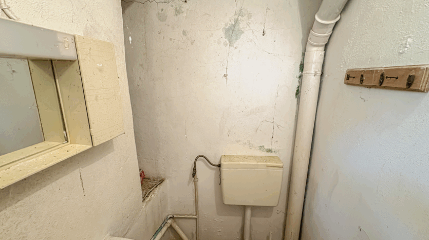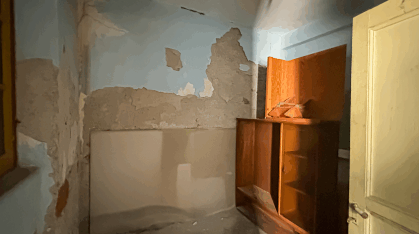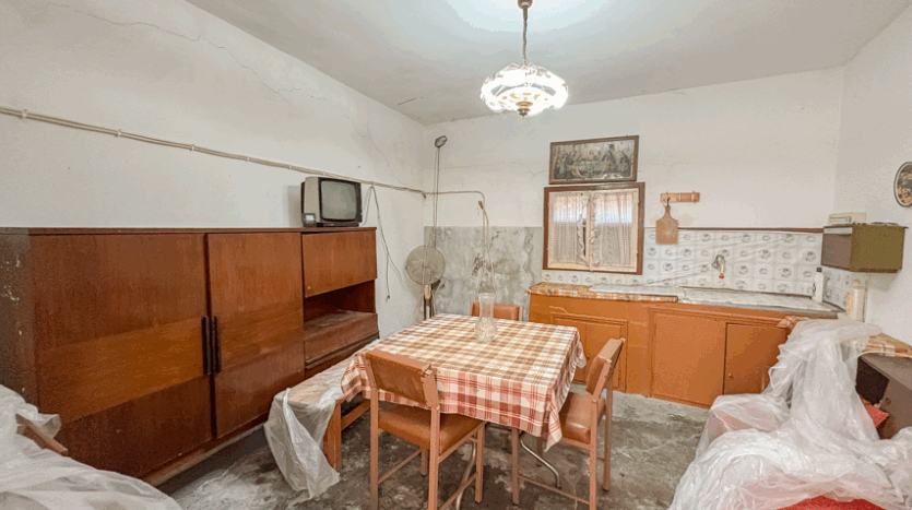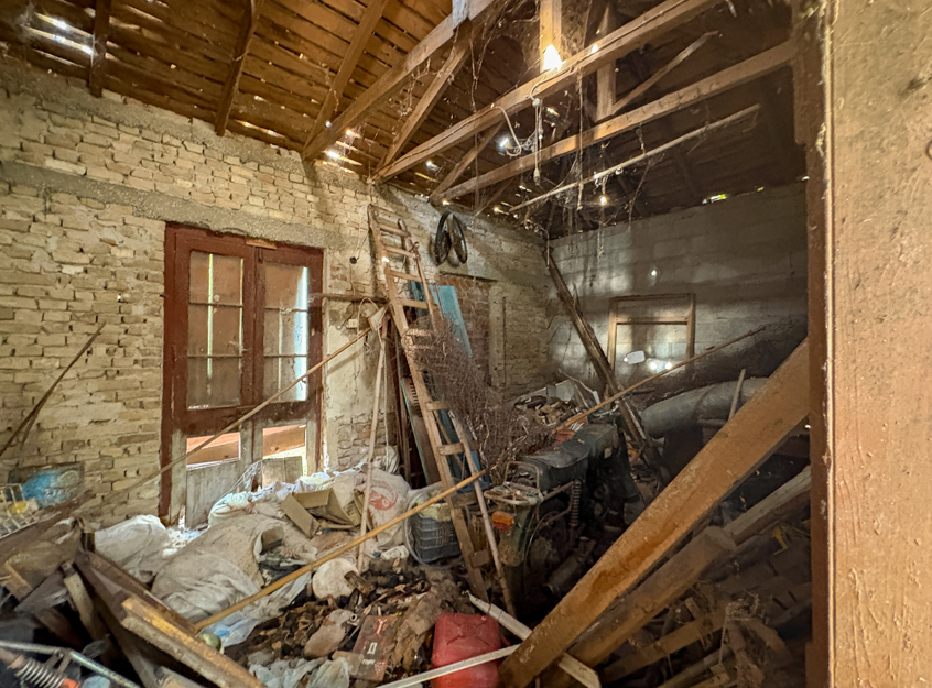 The first house, easily recognized by its yellow exterior, is a stone-built structure that has been covered in concrete. It has possibilities to be further extended by one metre from the attic level maisonette-style layout. The second house, directly beside it, can also be extended and enclosed, offering flexibility for renovation or expansion according to the buyer’s needs.