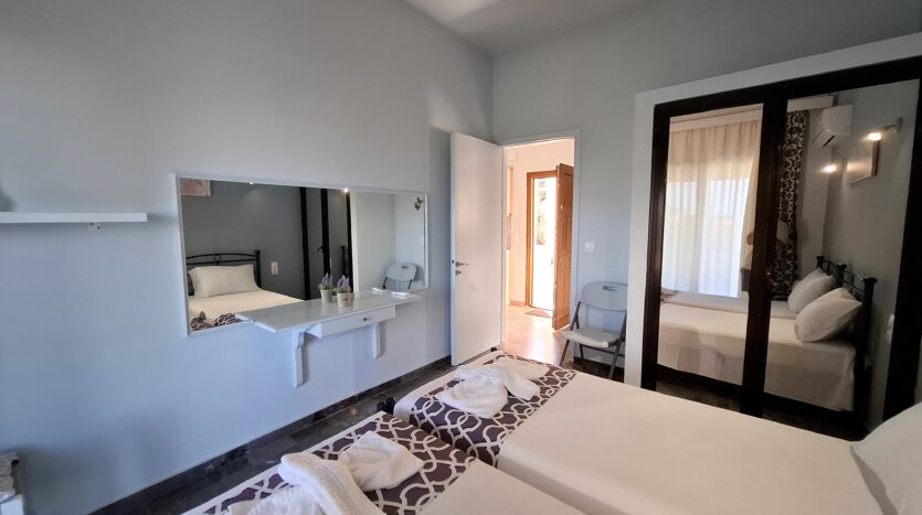 The apartments are equipped with air-conditioning and petrol heating, supporting comfort throughout the year. Its location in Agios Mattheos ensures access to nearby amenities, making it convenient for residents or tenants. The large outdoor plot provides further opportunities for development or landscaping.