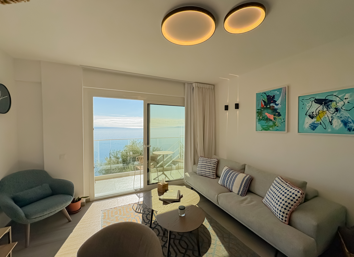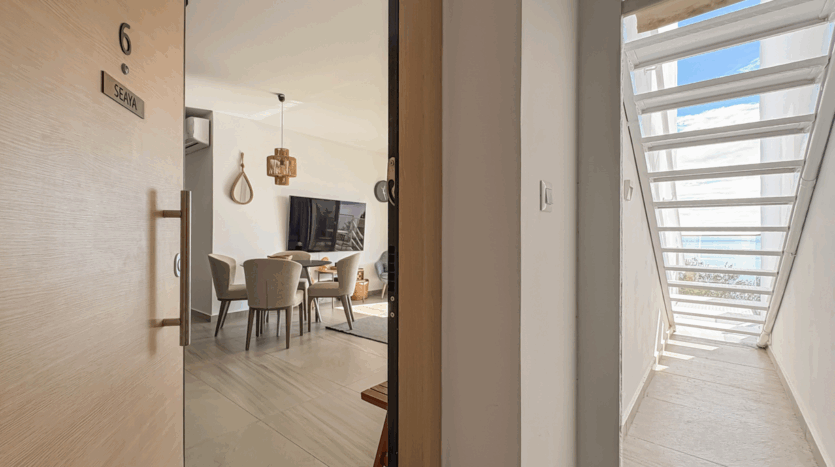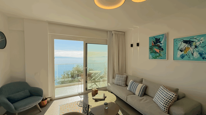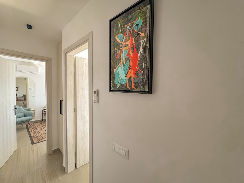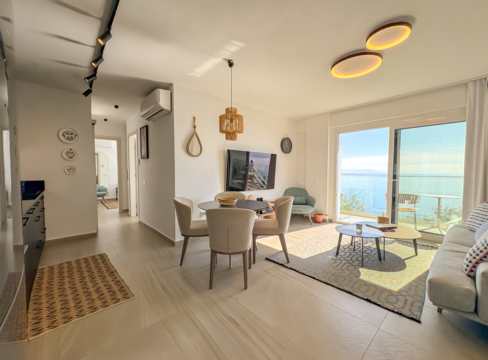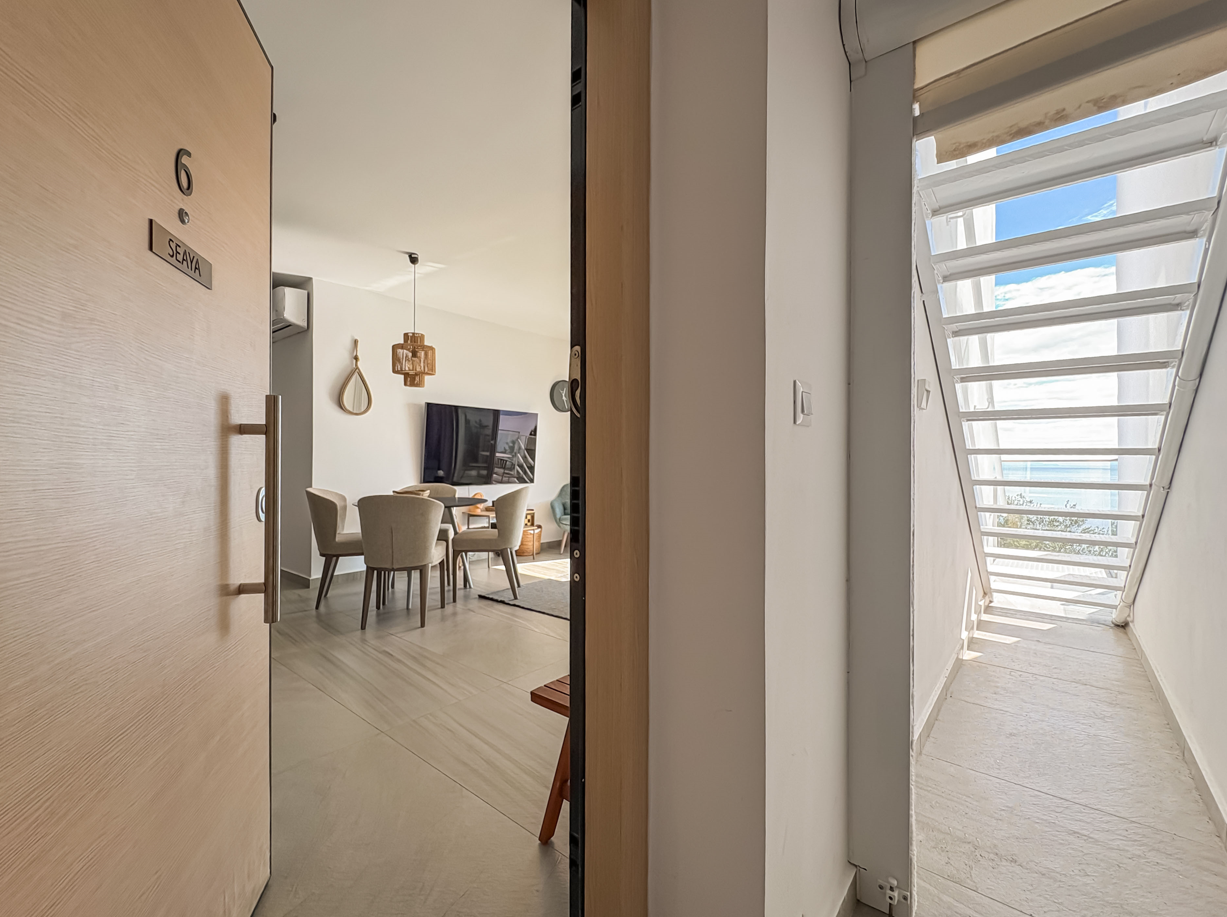 This property offers more than just indoor luxury: a short walk down the stone stairs leads you to a beautiful beach. The apartment also includes a laundry room and access to a large shared rooftop terrace, ideal for entertaining or enjoying the sunset.