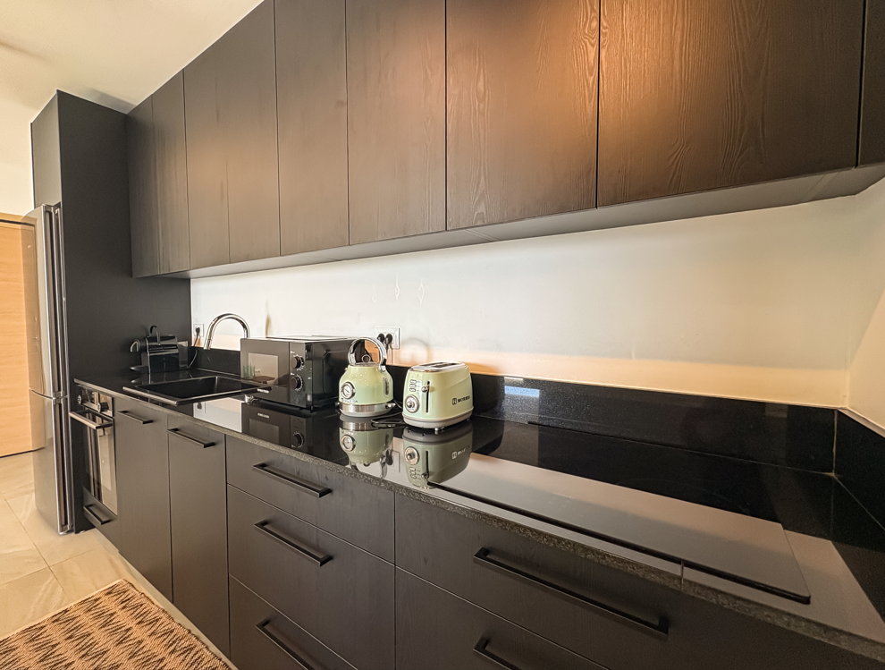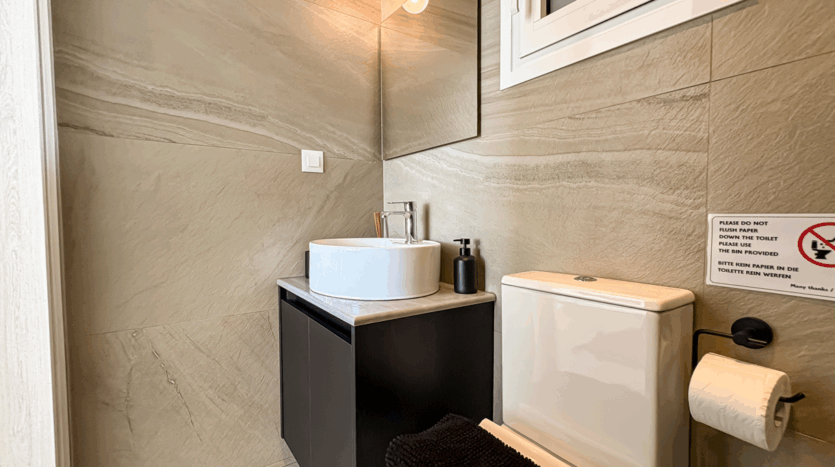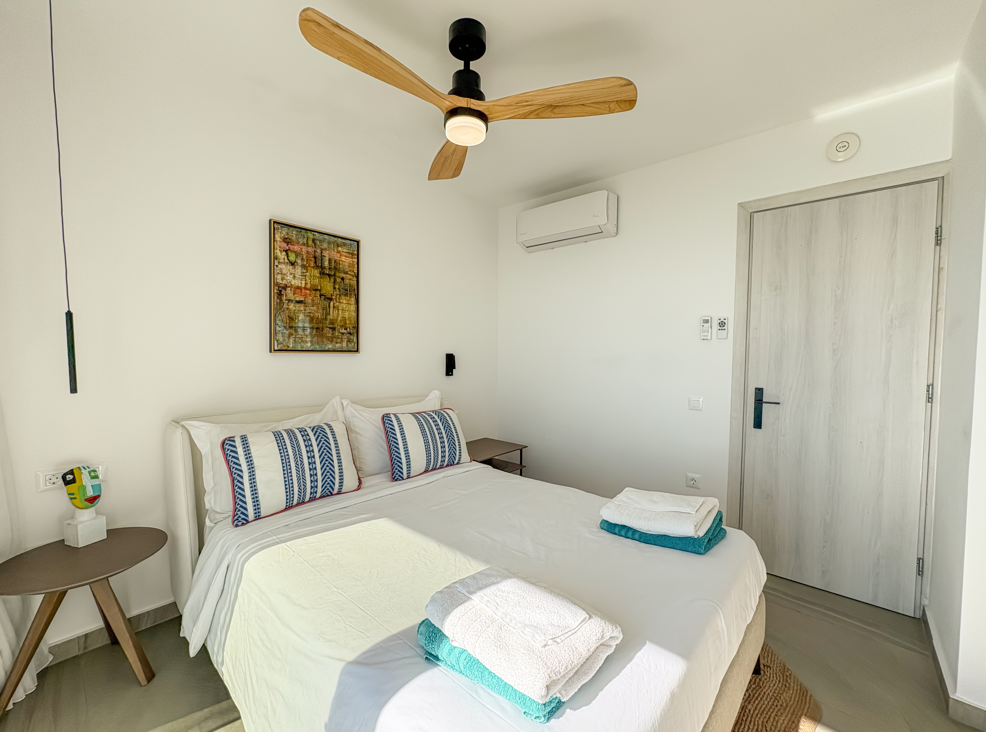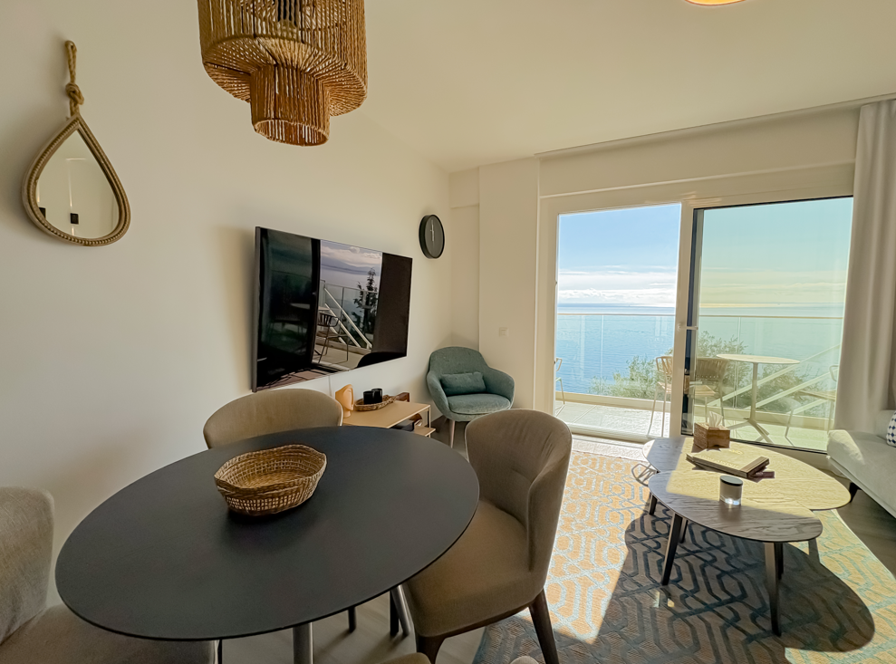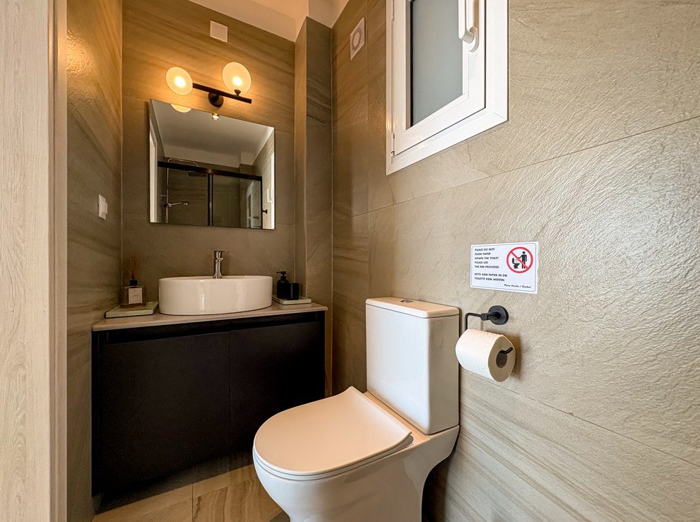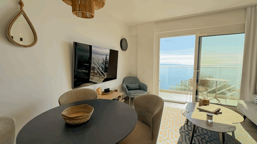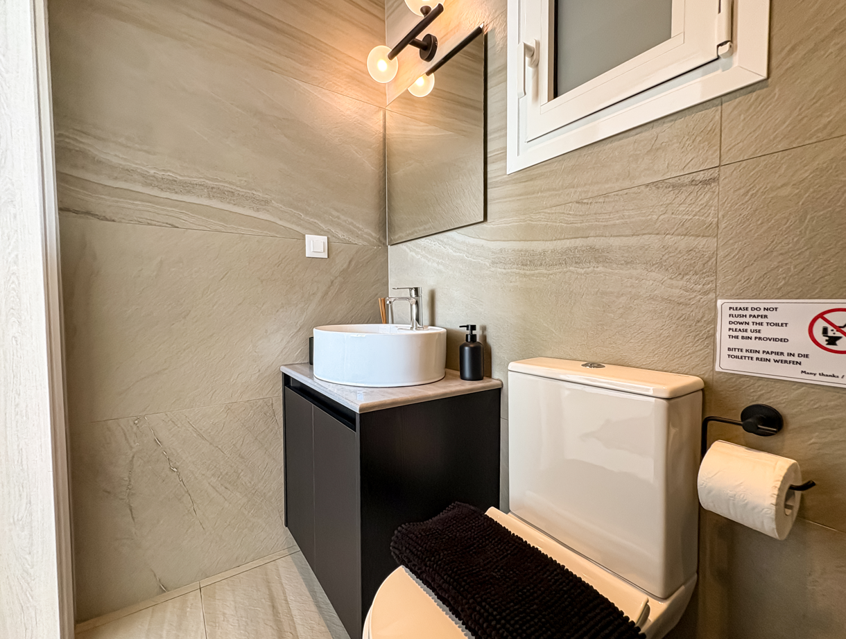 This property offers more than just indoor luxury: a short walk down the stone stairs leads you to a beautiful beach. The apartment also includes a laundry room and access to a large shared rooftop terrace, ideal for entertaining or enjoying the sunset.
