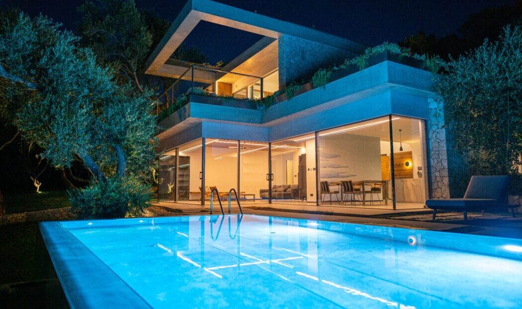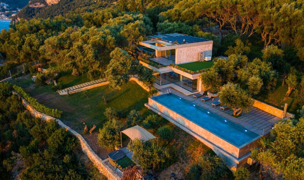 Chase Real Estate Corfu proudly presents the Luxury Villa Olives in the Sea, a newly built (2023) and exclusively designed villa located in the charming village on the West of Corfu, on Corfu’s stunning western coast. Pentati is renowned for its natural beauty and tranquil atmosphere, making it the ideal location for this luxurious villa that seamlessly blends modern design with the serenity of nature.