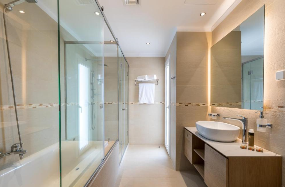 Upstairs, the master suite feels private and calm, complete with an en-suite bathroom and a sea-facing balcony that captures the sunrise. Two more bedrooms share a generous bathroom, and both open directly to a shared terrace where the view stretches right across the coast.