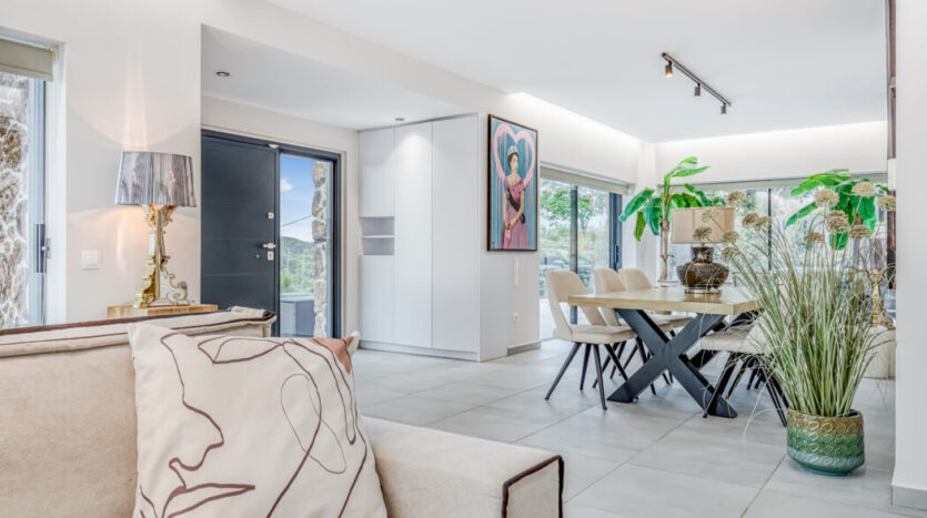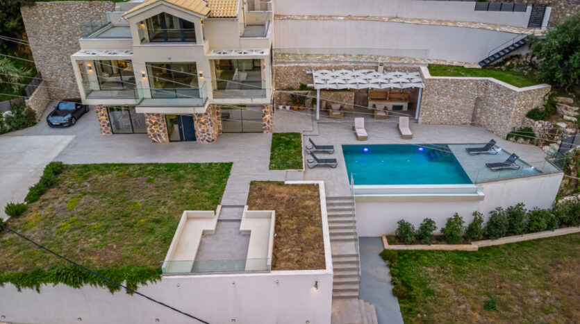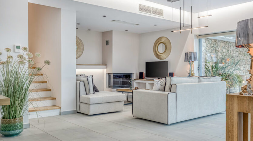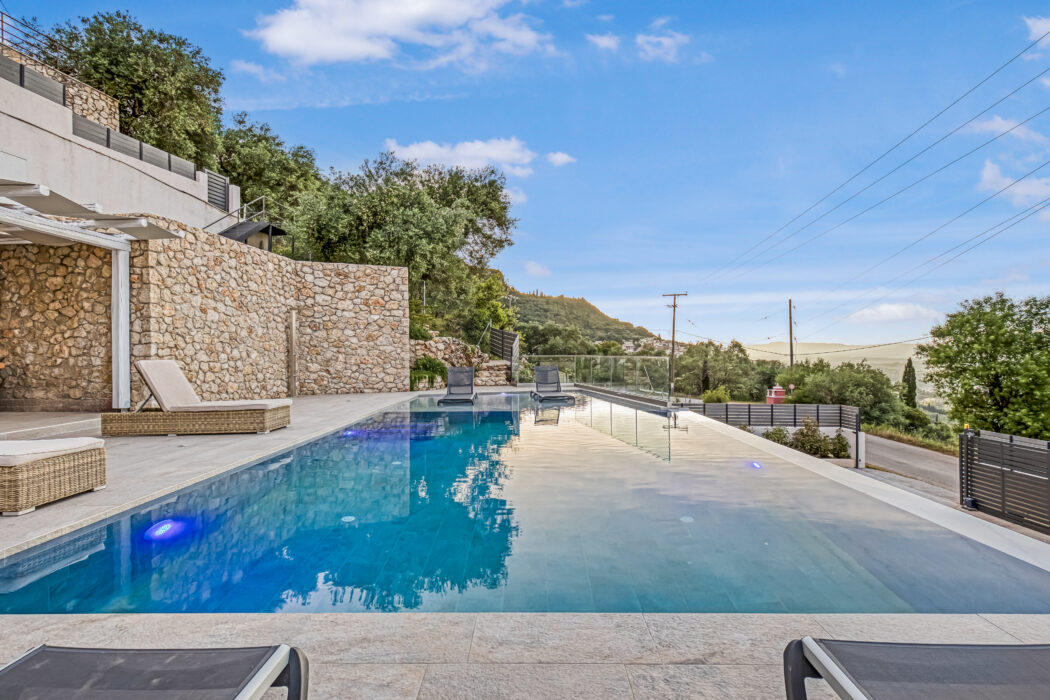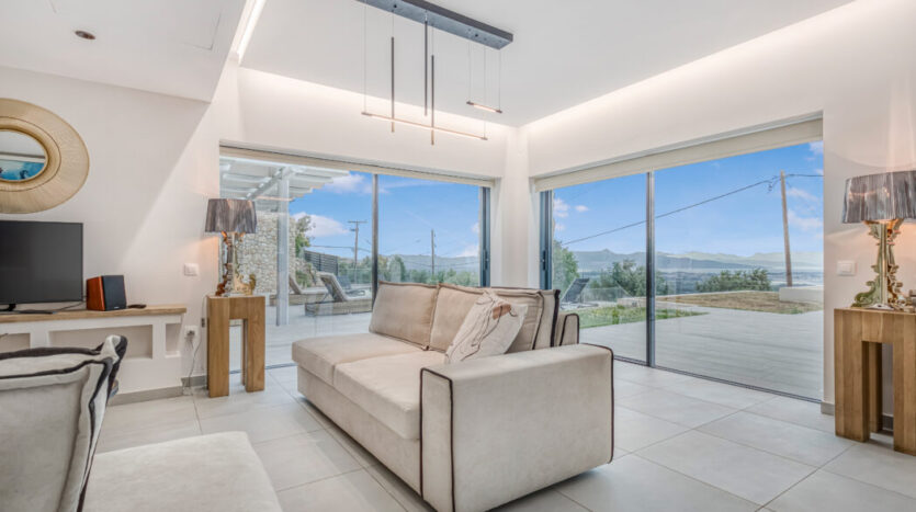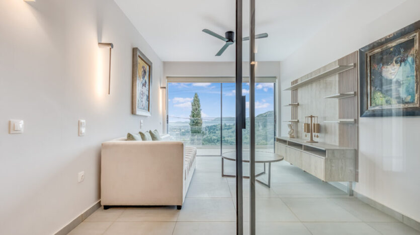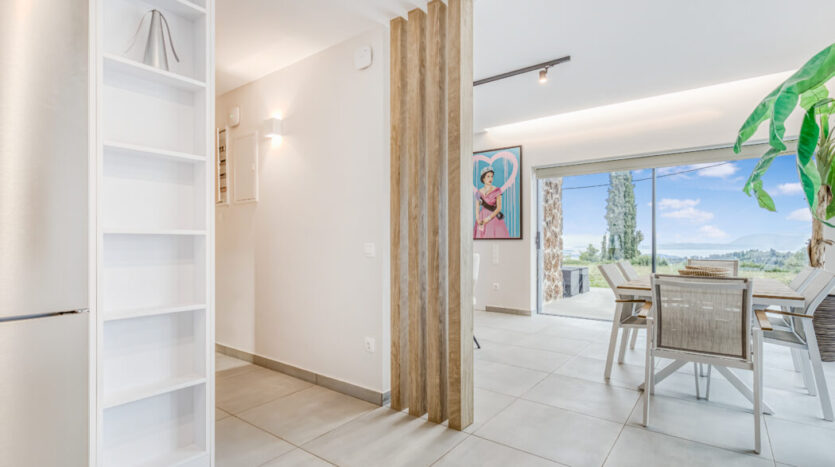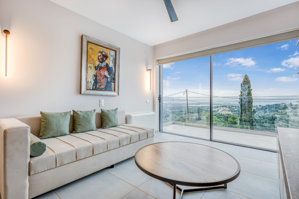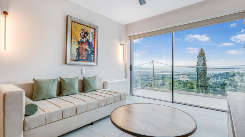 Located just 15 km (20 minutes) from Corfu Town and 13 km (18 minutes) from Corfu International Airport, this villa offers easy access to the island’s key amenities while being set in a quiet and picturesque area. Its elevated position provides stunning views, while nearby Agi Deka Village offers traditional tavernas and local charm.