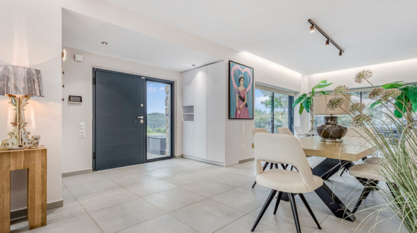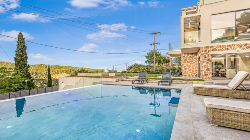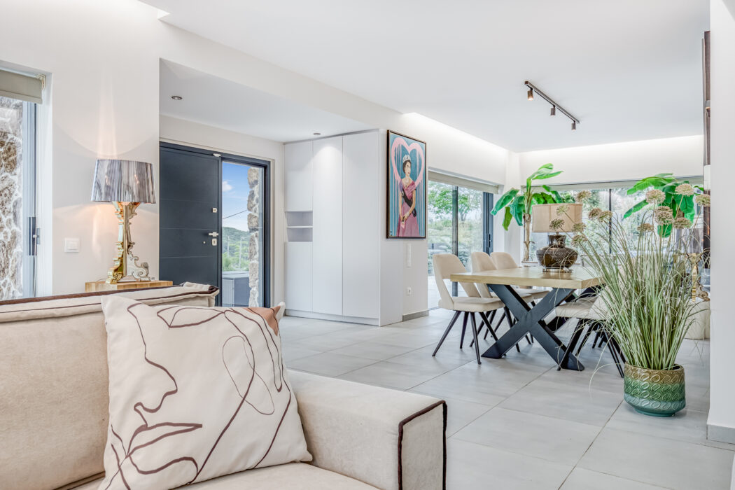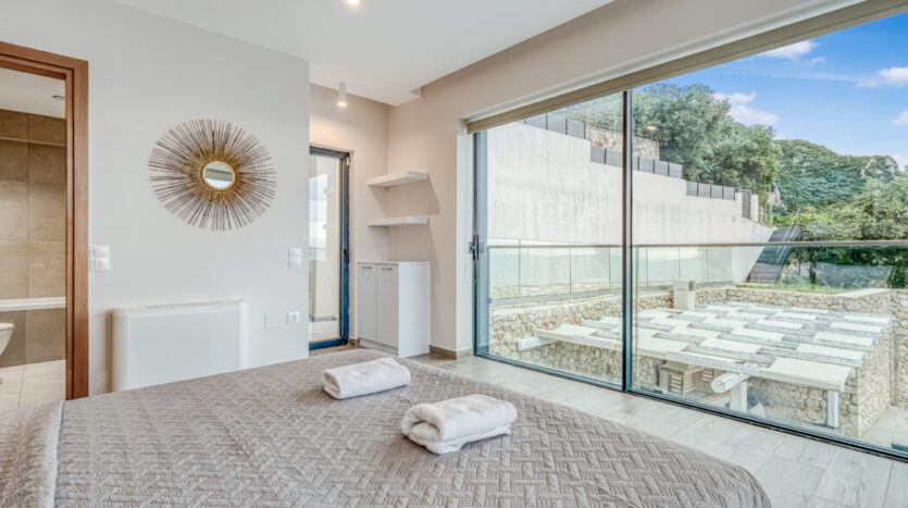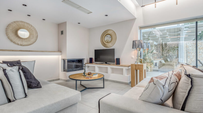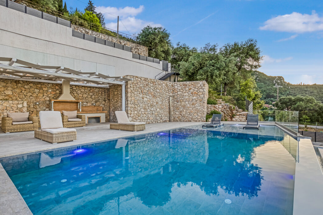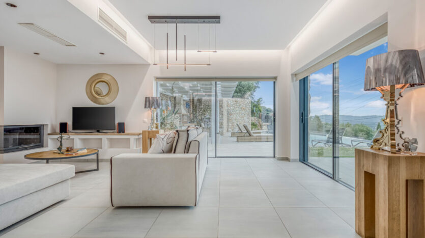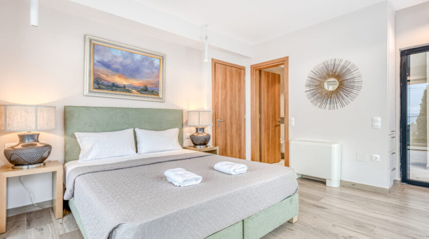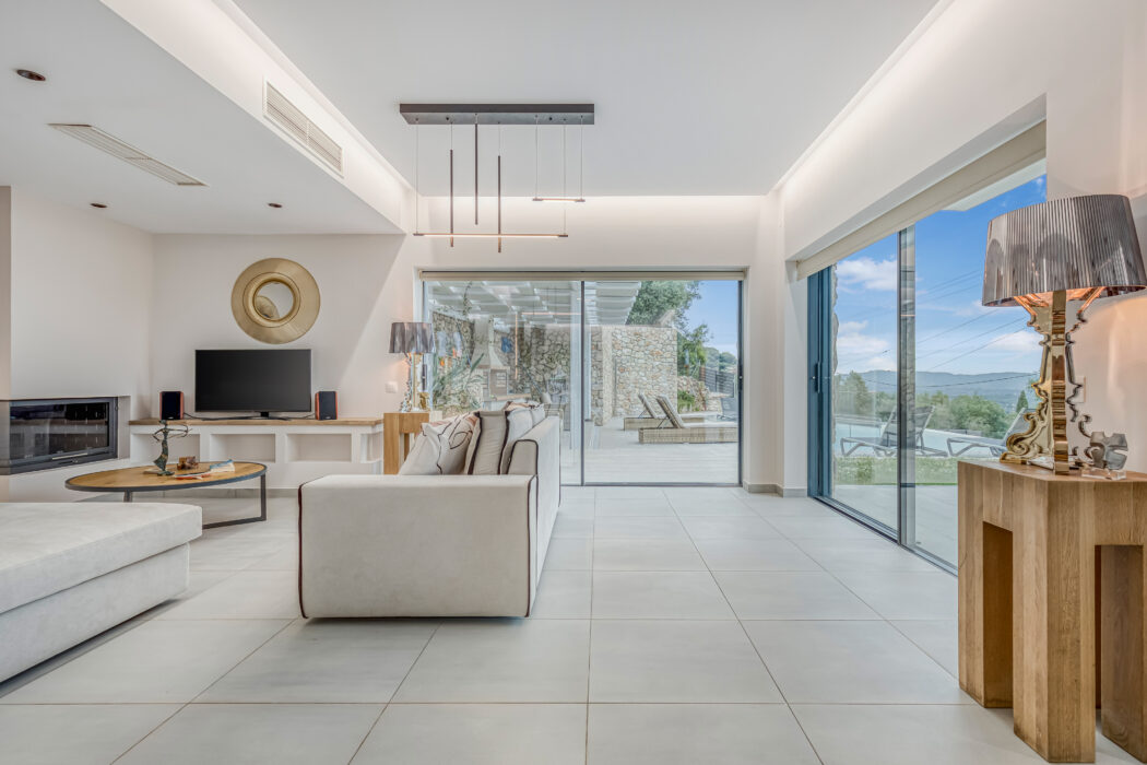 Located just 15 km (20 minutes) from Corfu Town and 13 km (18 minutes) from Corfu International Airport, this villa offers easy access to the island’s key amenities while being set in a quiet and picturesque area. Its elevated position provides stunning views, while nearby Agi Deka Village offers traditional tavernas and local charm.