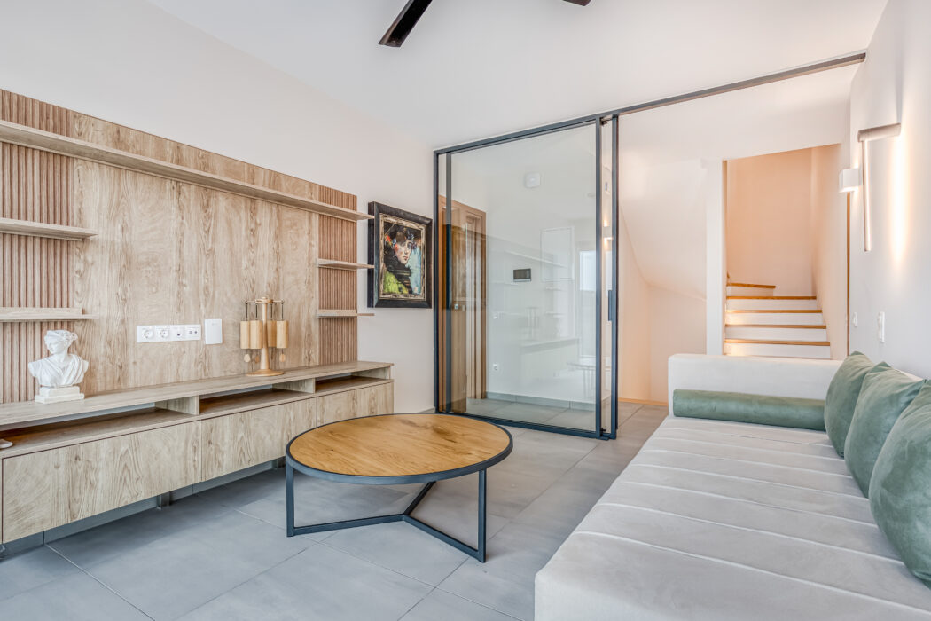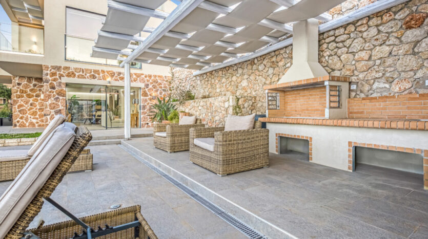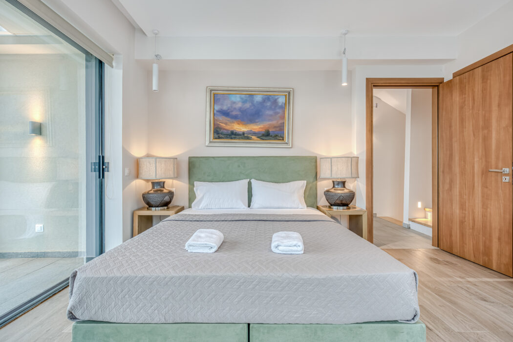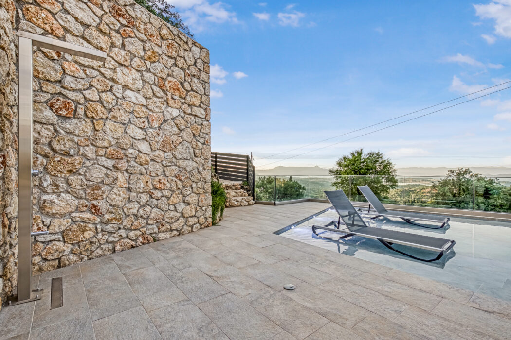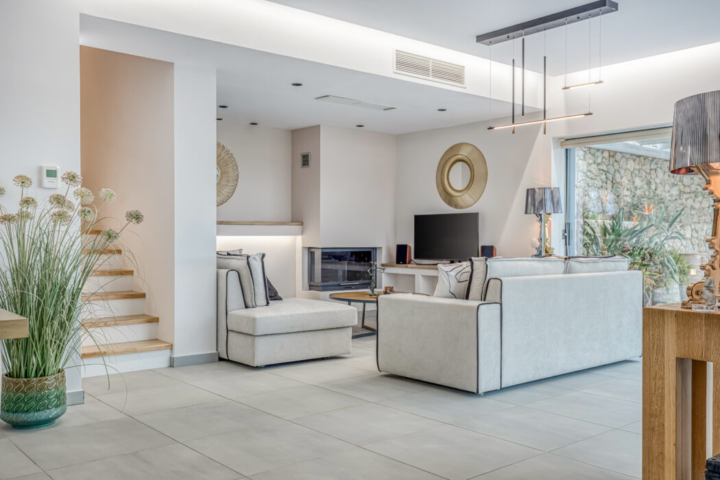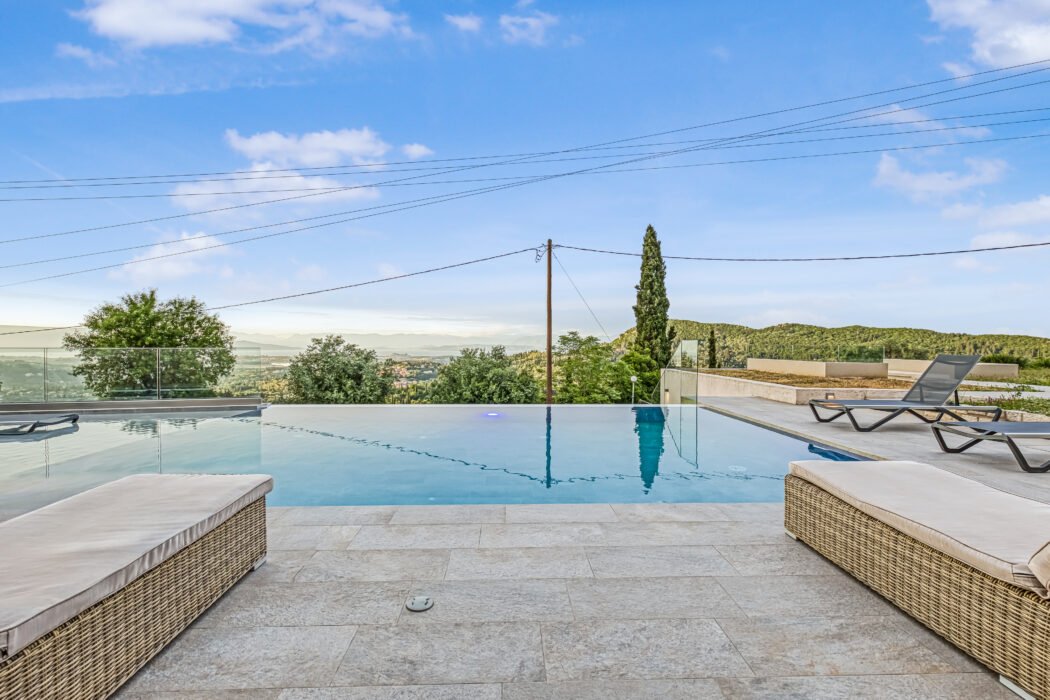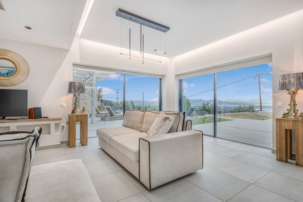 Located just 15 km (20 minutes) from Corfu Town and 13 km (18 minutes) from Corfu International Airport, this villa offers easy access to the island’s key amenities while being set in a quiet and picturesque area. Its elevated position provides stunning views, while nearby Agi Deka Village offers traditional tavernas and local charm.