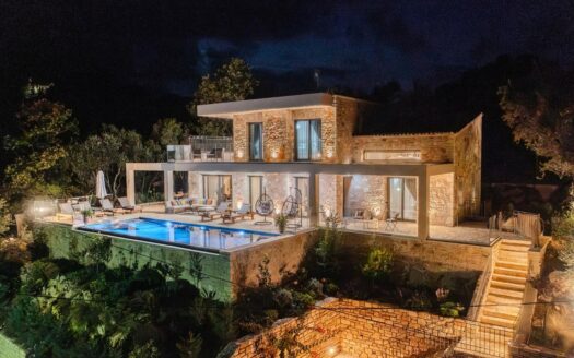 Discover a standout new-build villa in the sought-after area of Sinies, just 1.5 km from the beach and 2 km from Kassiopi. Positioned on a generous 1,600 m² plot, this 360 m² property is currently under construction and designed to deliver high-end modern living, excellent energy efficiency, and seamless indoor–outdoor flow. Completion is scheduled for December 2026.
