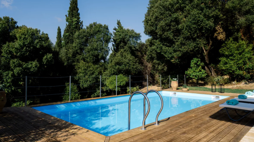 The private pool sits at the heart of the outdoor space, with terraces and verandas ideal for long days outside. Whether you’re enjoying meals outdoors or simply taking in the countryside views, the setting is peaceful and uncluttered. With multiple bedrooms and bathrooms, the layout works well for families or groups who want both shared space and privacy.