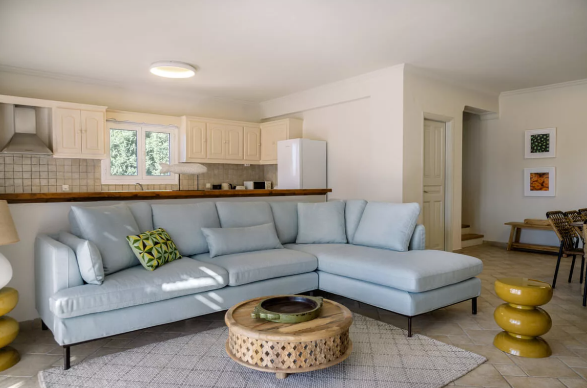 Set within a quiet countryside setting, this villa offers space, privacy, and a calm atmosphere that’s hard to find. Surrounded by greenery and open land, it feels tucked away while still being within easy reach of Corfu’s main areas. The outdoor spaces are generous, giving you room to relax, dine, and enjoy the surroundings without feeling overlooked.