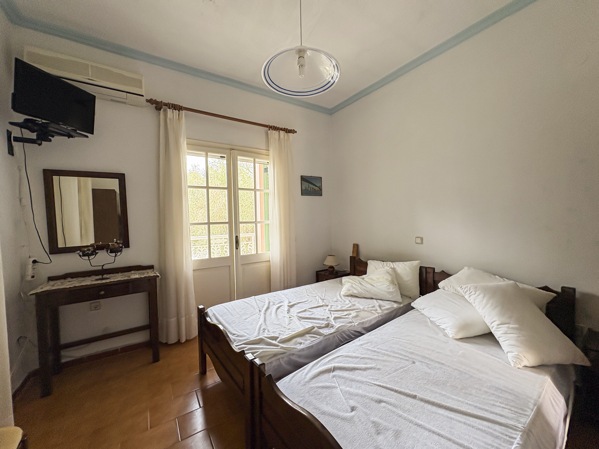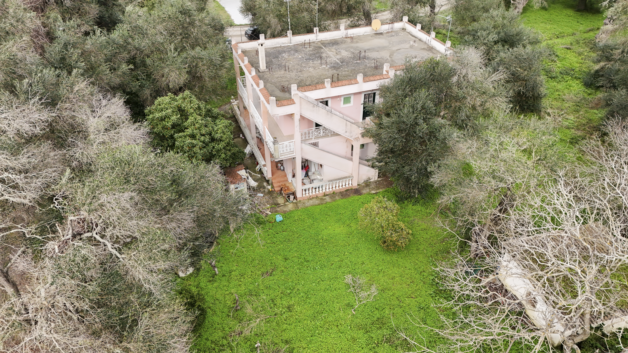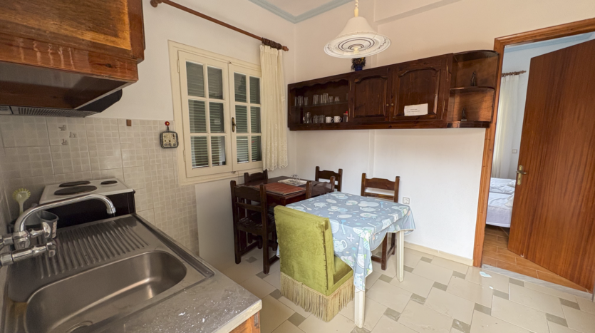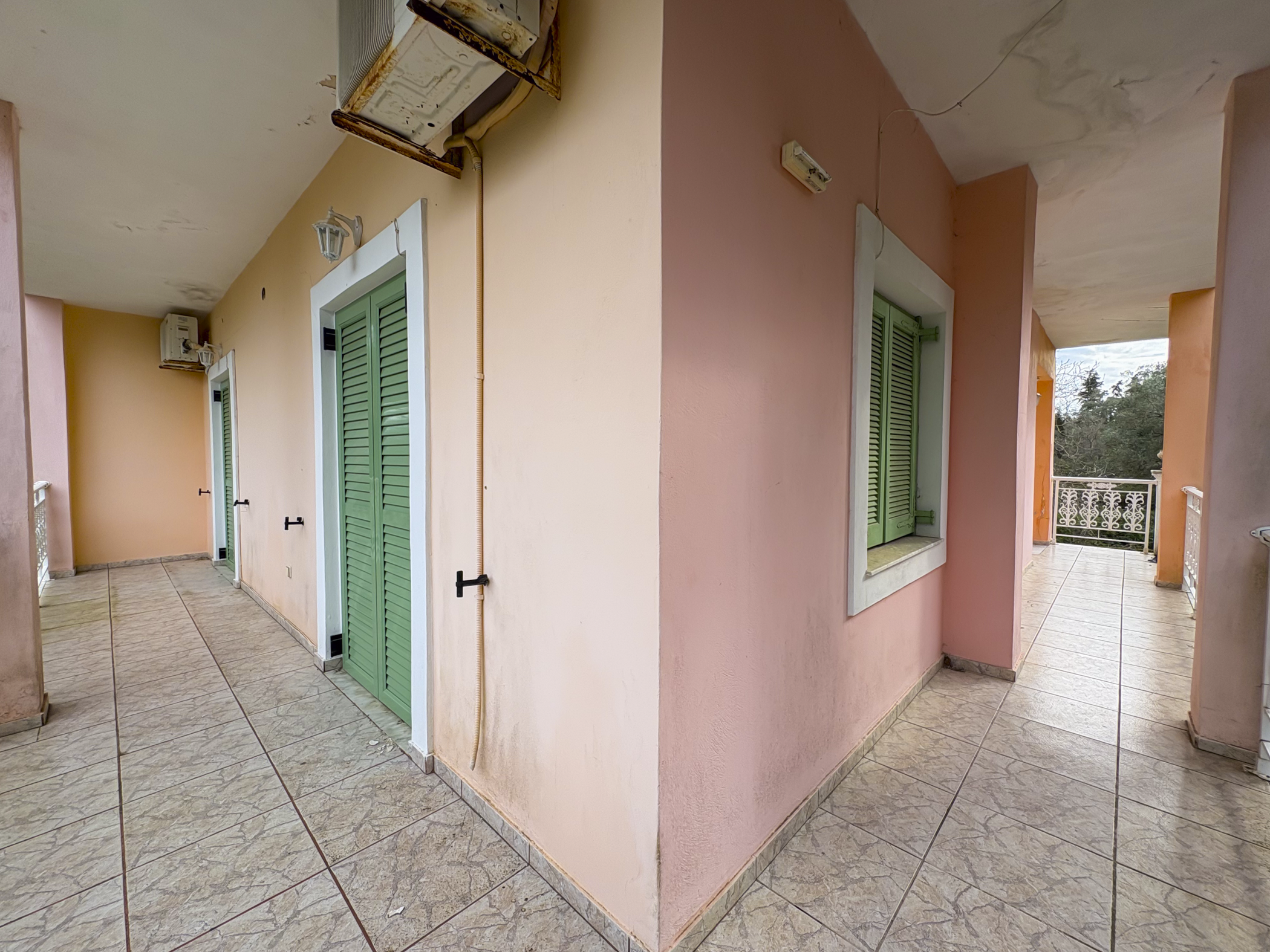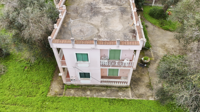 This property in Lefkimmi offers a flexible setup across three distinct units on a 1,000 m² plot. The ground floor consists of a 100 m² main residence with 3 bedrooms and 1 bathroom. Upstairs are two independent apartments, each 50 m², with 2 bedrooms and 1 bathroom per unit. Each level maintains privacy, making the structure suitable for a variety of uses.