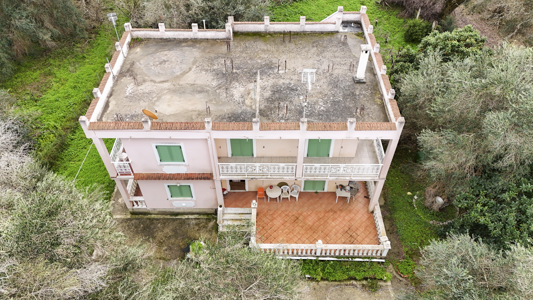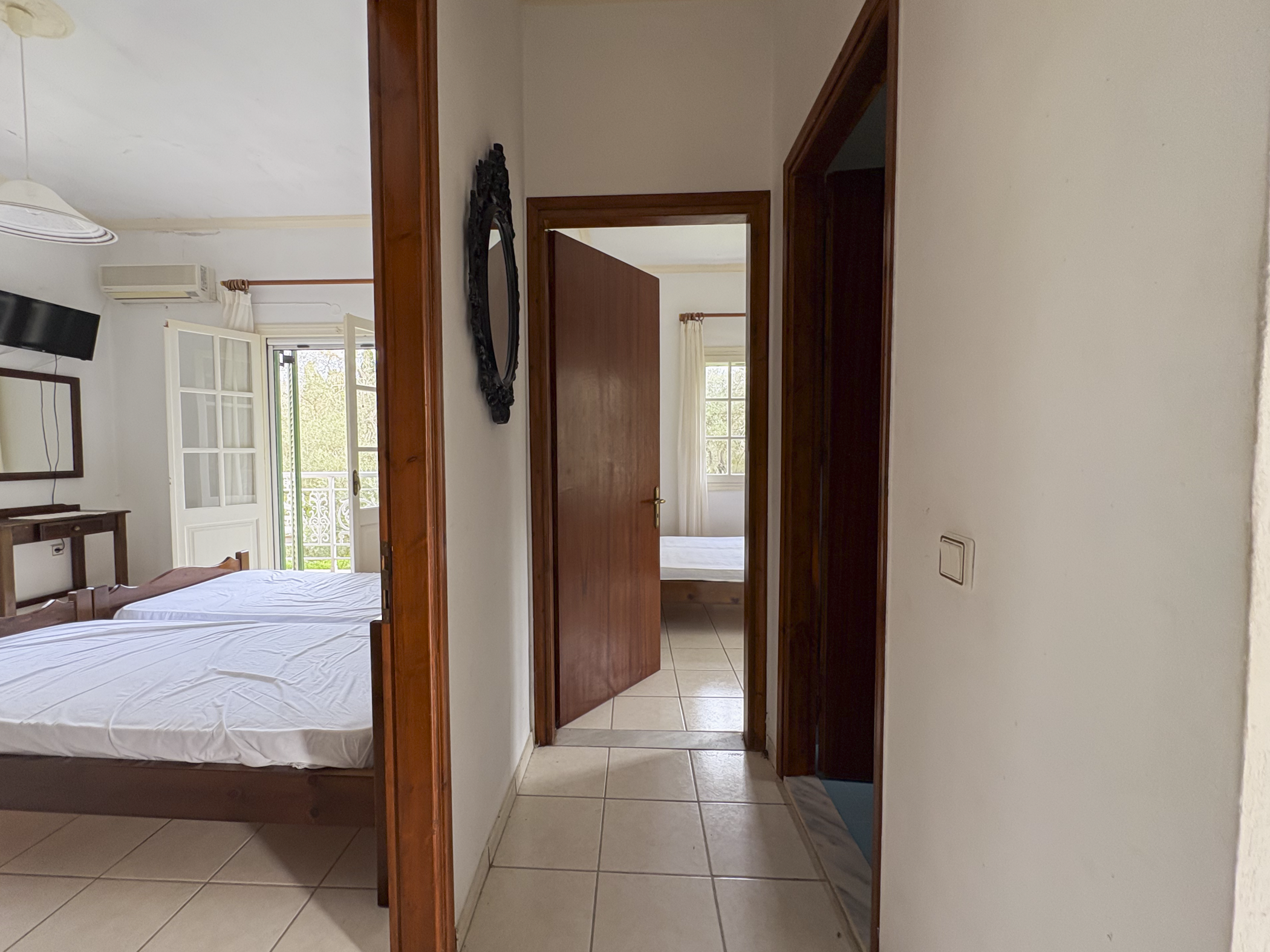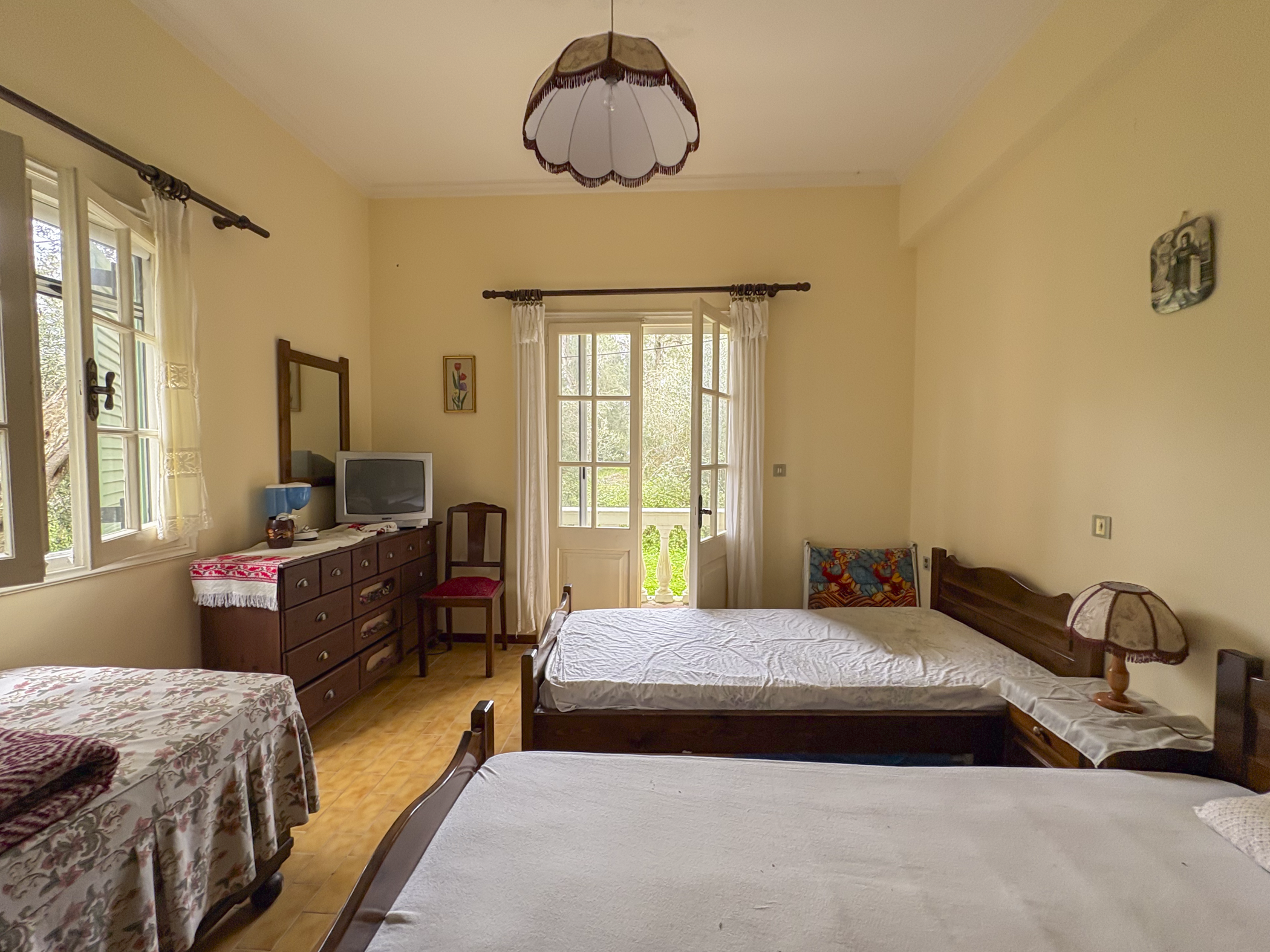 This property in Lefkimmi offers a flexible setup across three distinct units on a 1,000 m² plot. The ground floor consists of a 100 m² main residence with 3 bedrooms and 1 bathroom. Upstairs are two independent apartments, each 50 m², with 2 bedrooms and 1 bathroom per unit. Each level maintains privacy, making the structure suitable for a variety of uses.