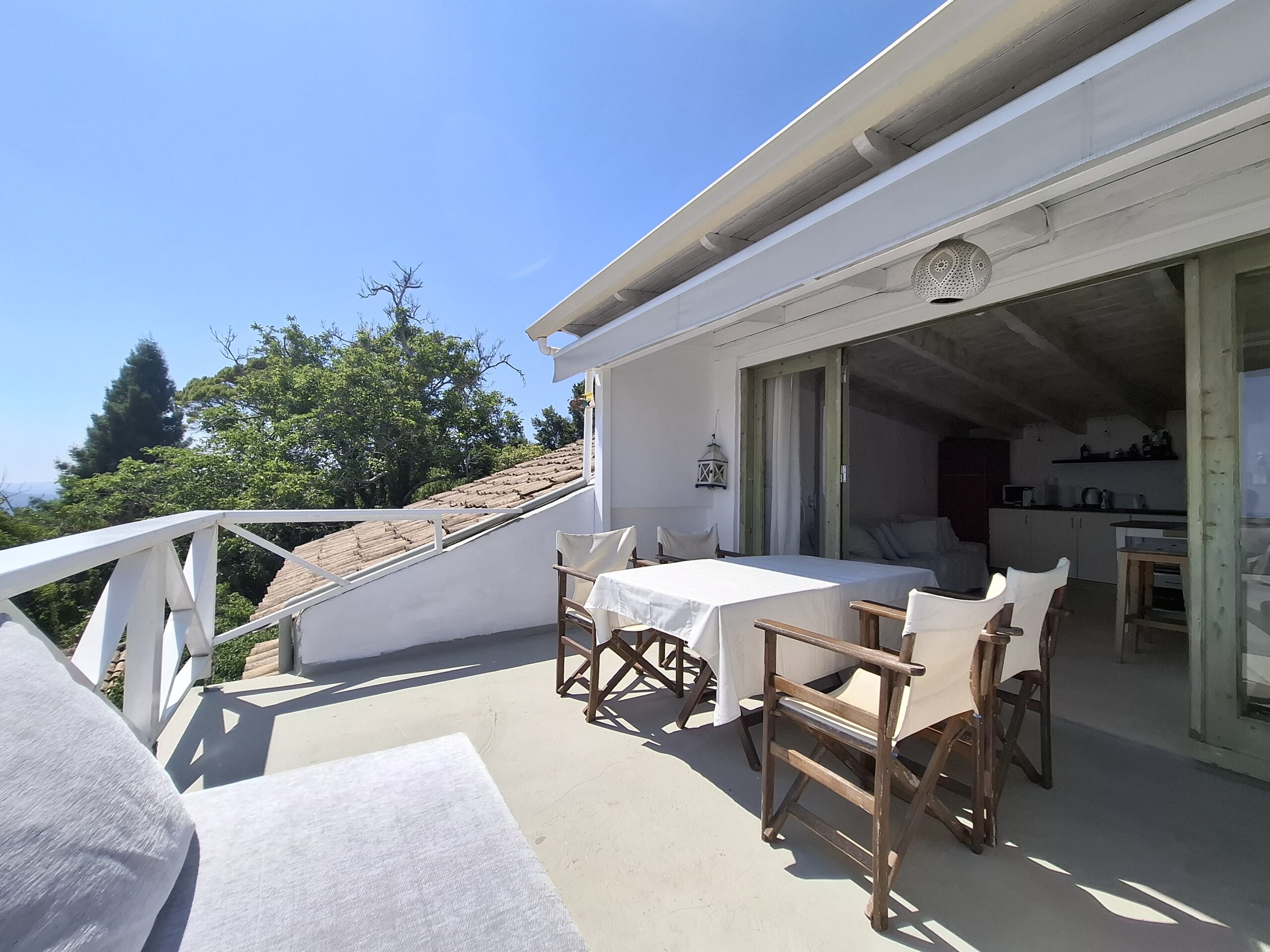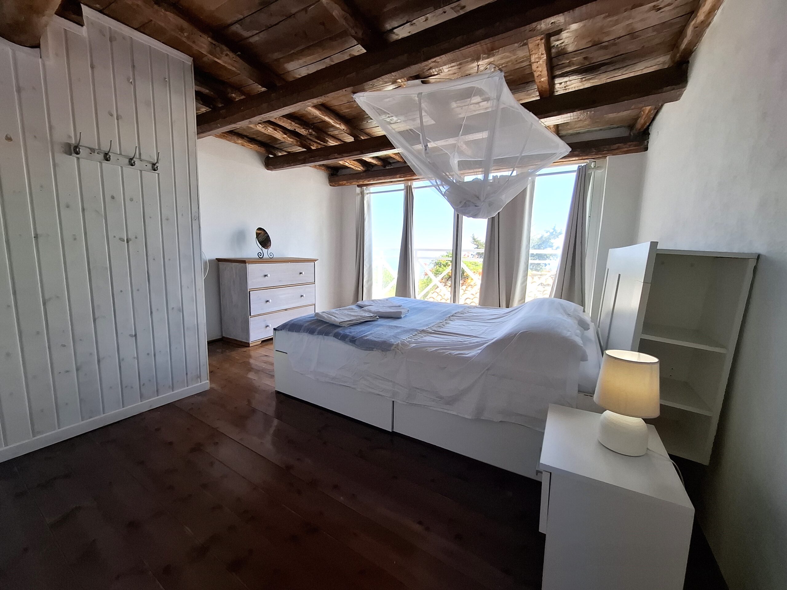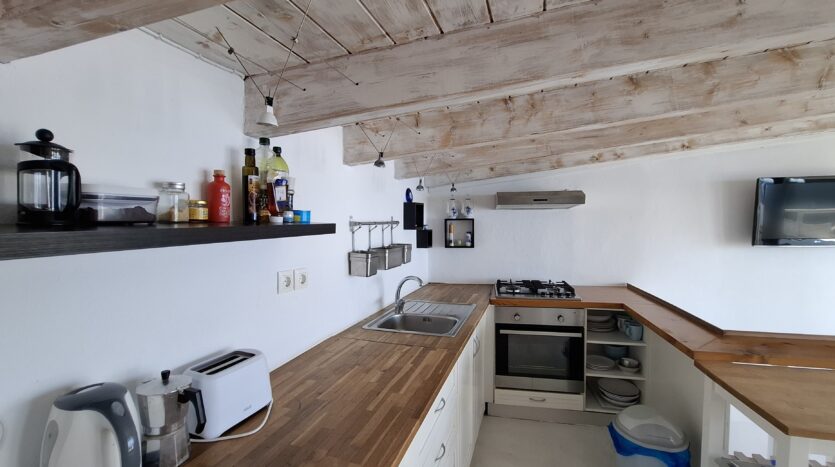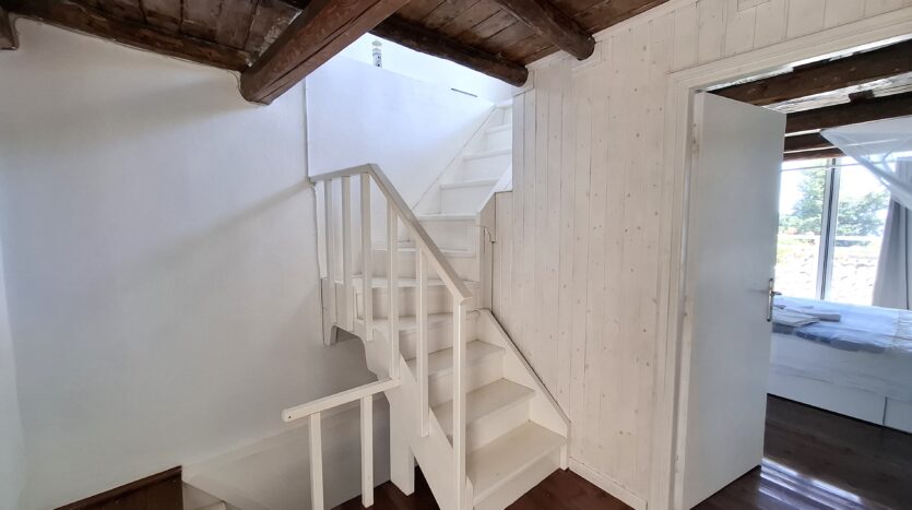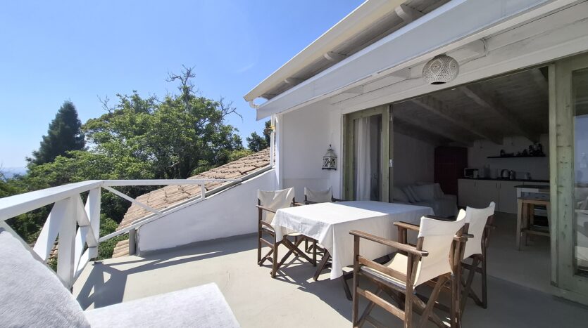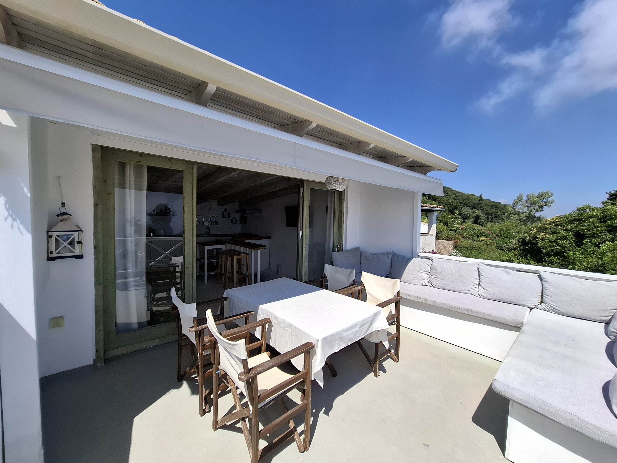 The interiors highlight wooden flooring and ceilings, with large window screens that fill the rooms with light and frame views of the sea. Just a five-minute walk takes you to the nearest tavern and the heart of the village, making it easy to connect with the local lifestyle.