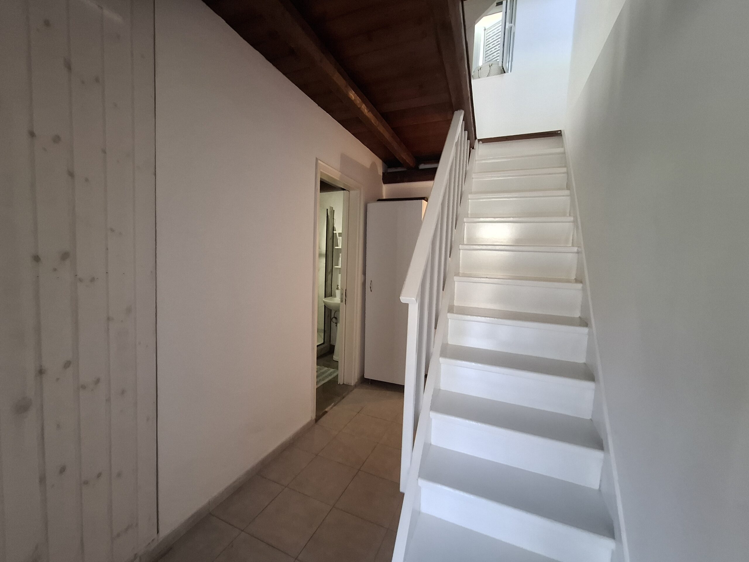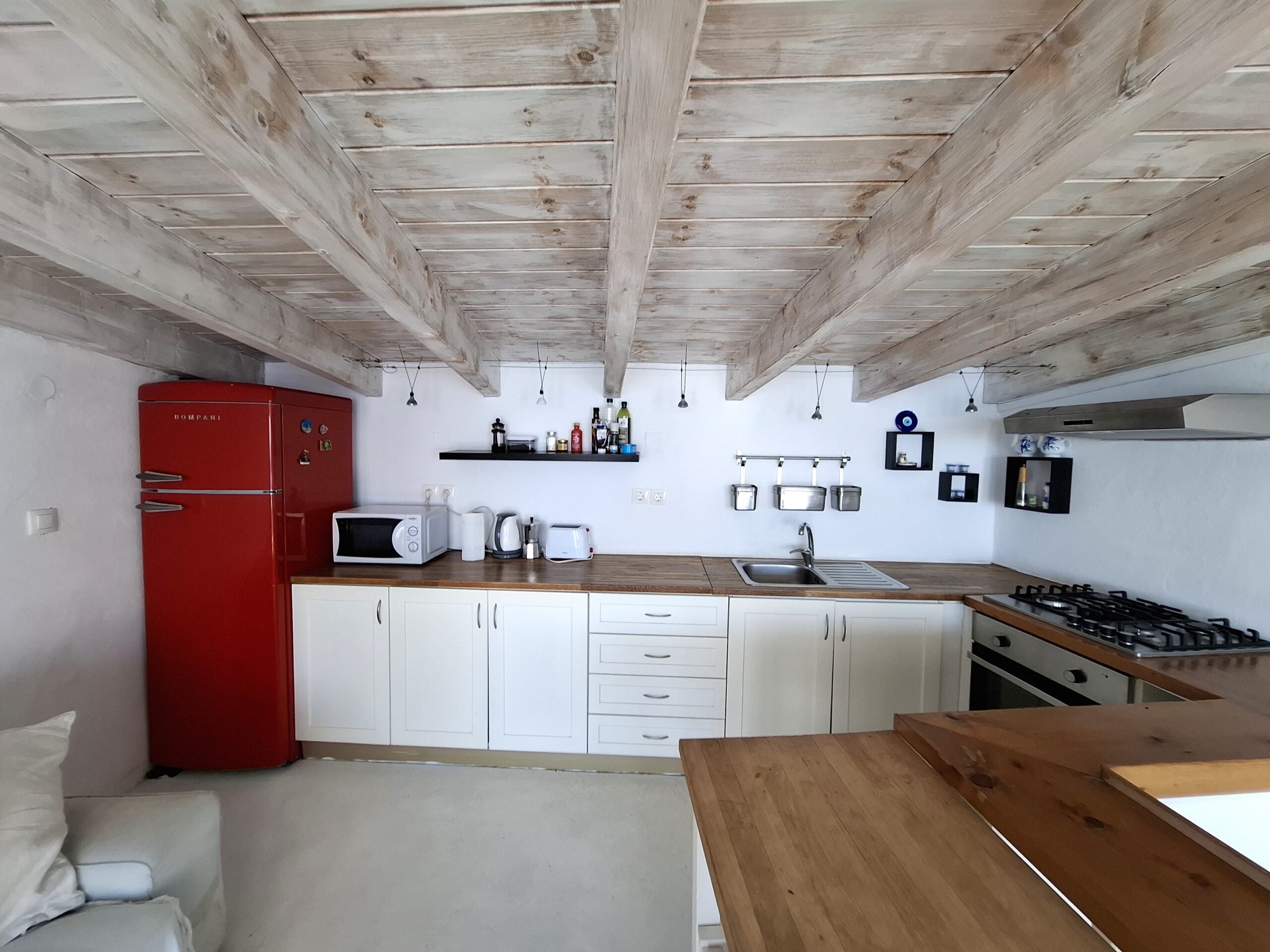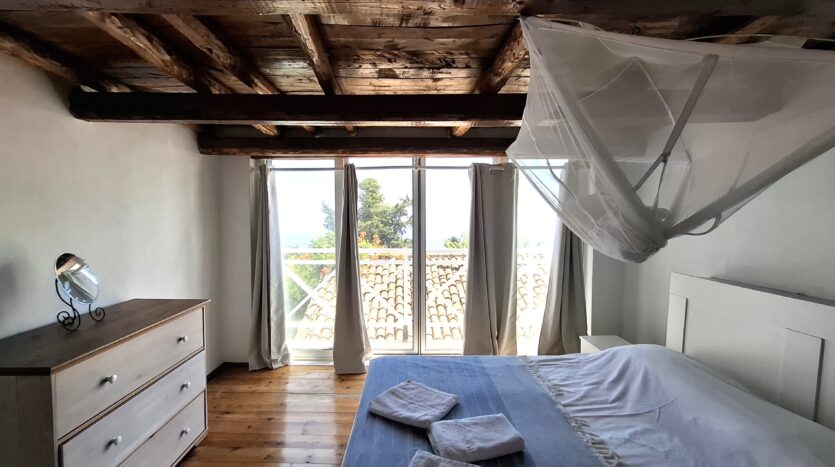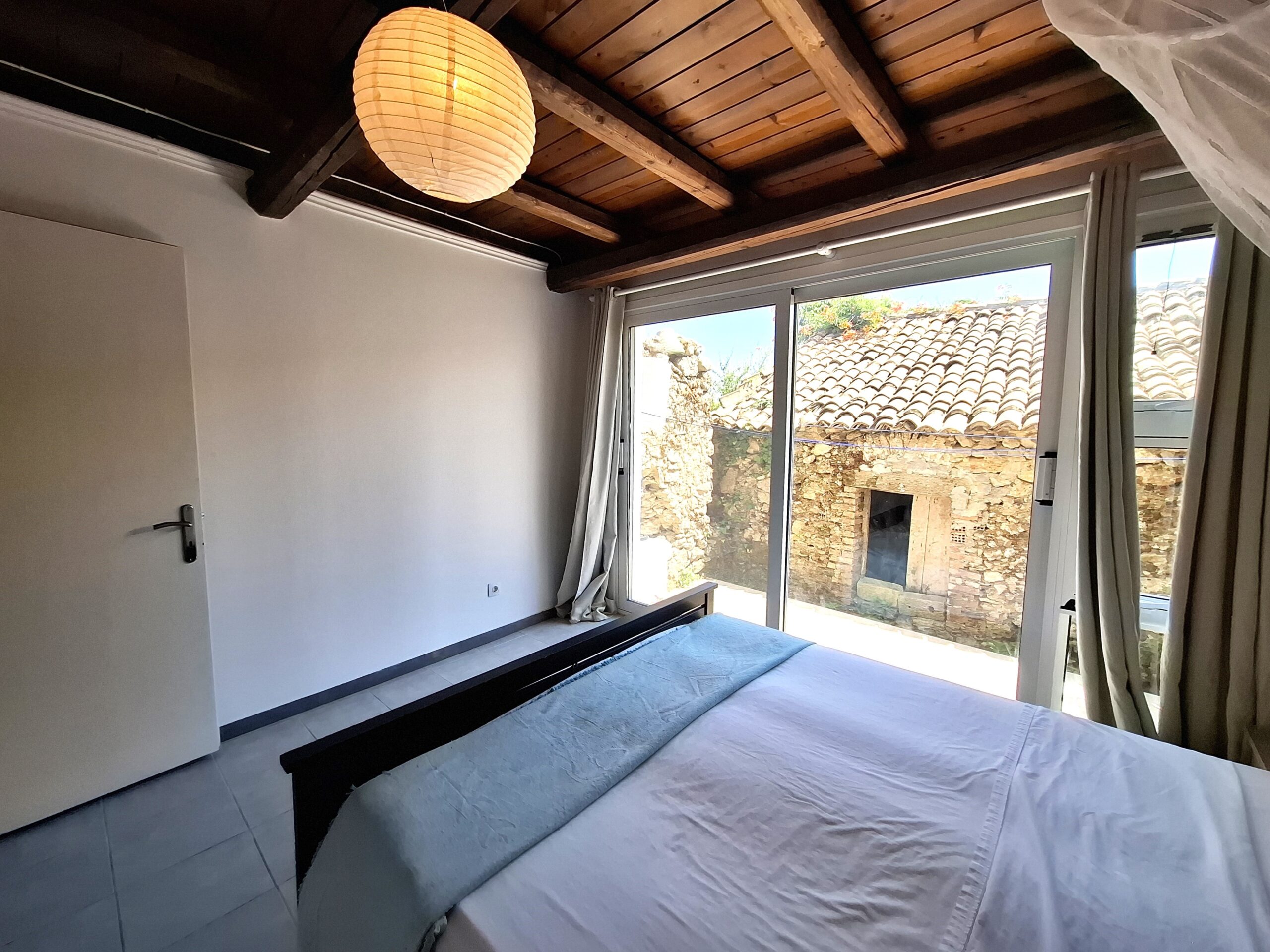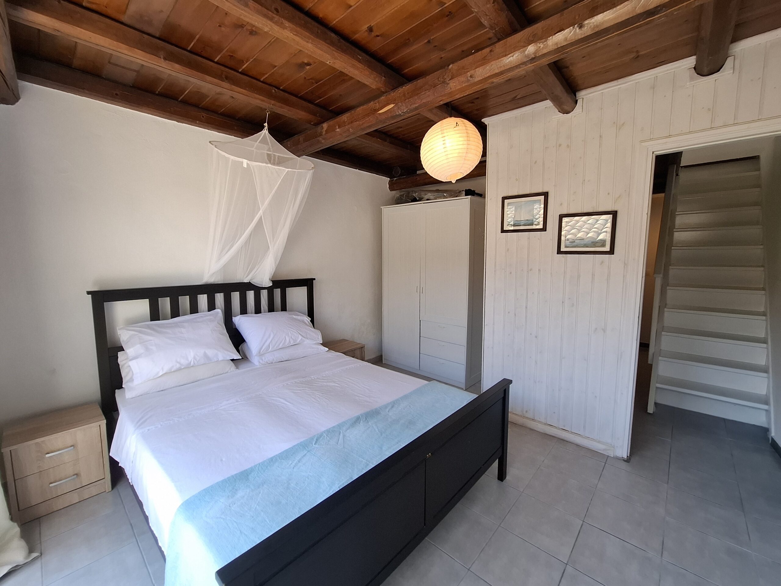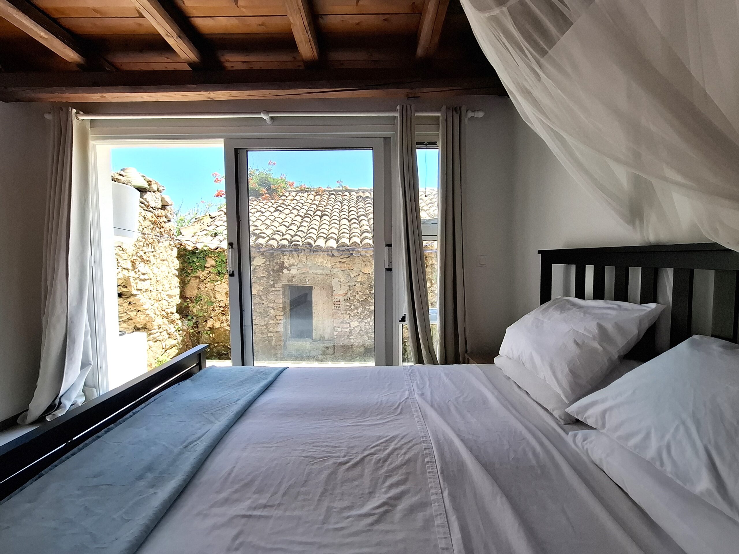 The interiors highlight wooden flooring and ceilings, with large window screens that fill the rooms with light and frame views of the sea. Just a five-minute walk takes you to the nearest tavern and the heart of the village, making it easy to connect with the local lifestyle.