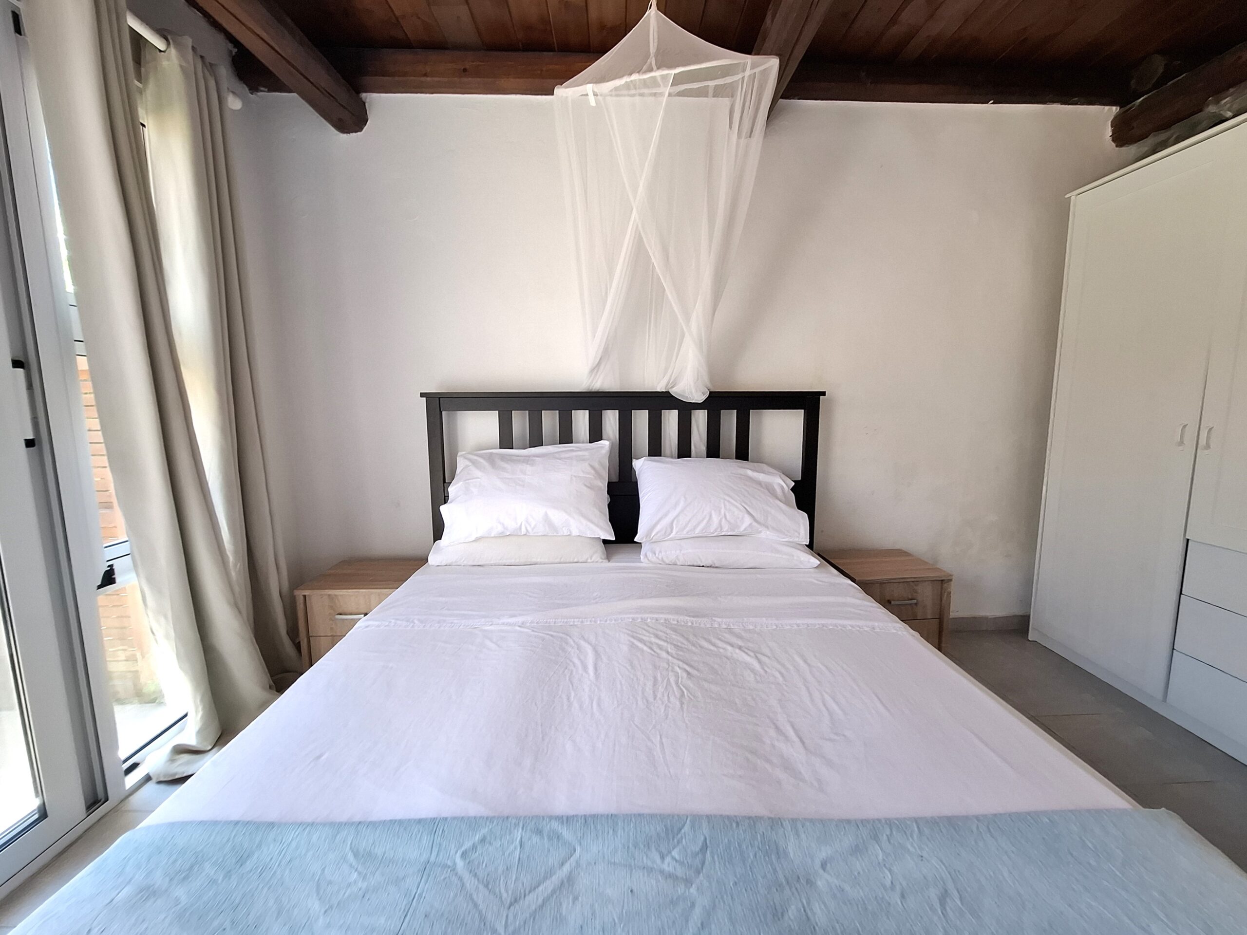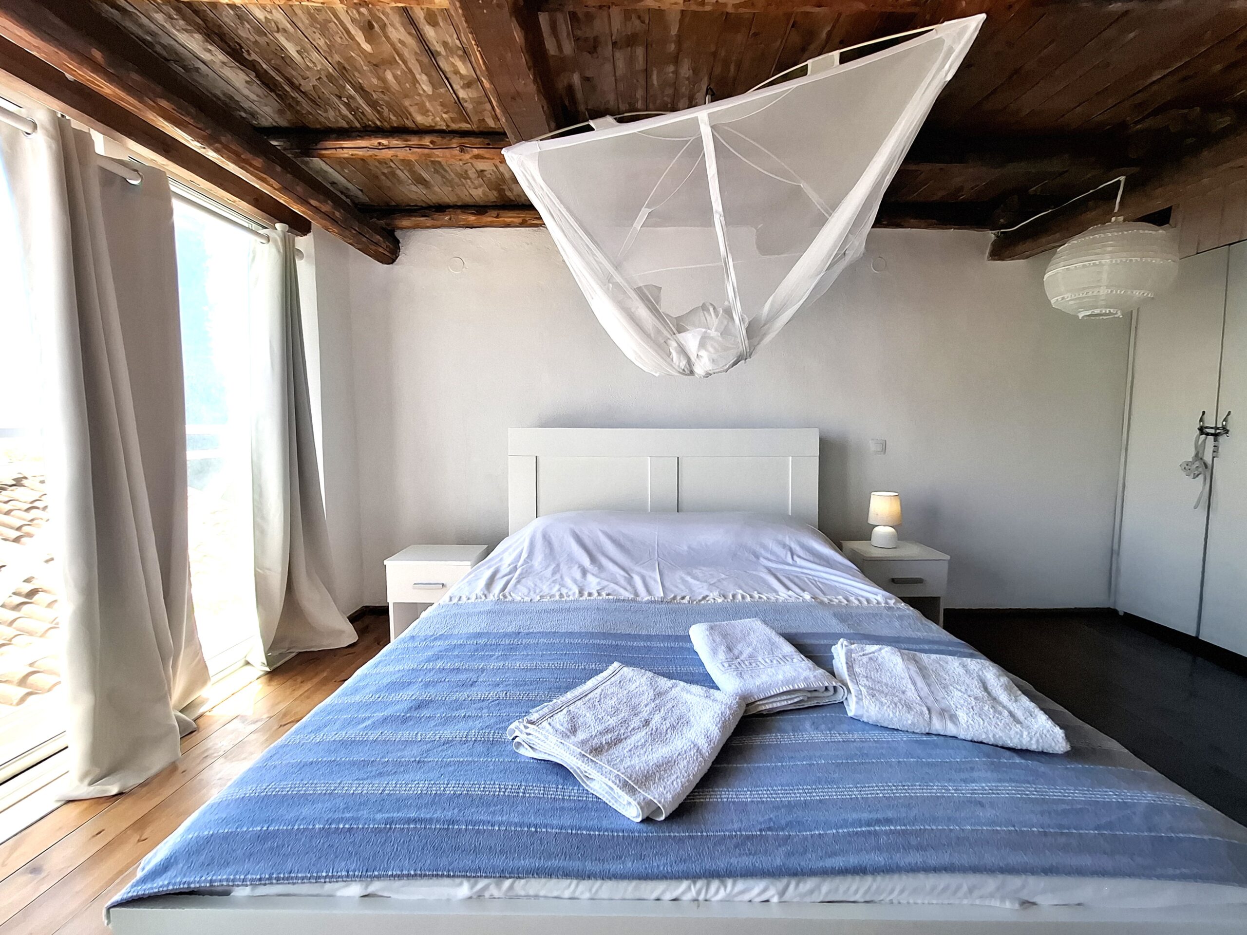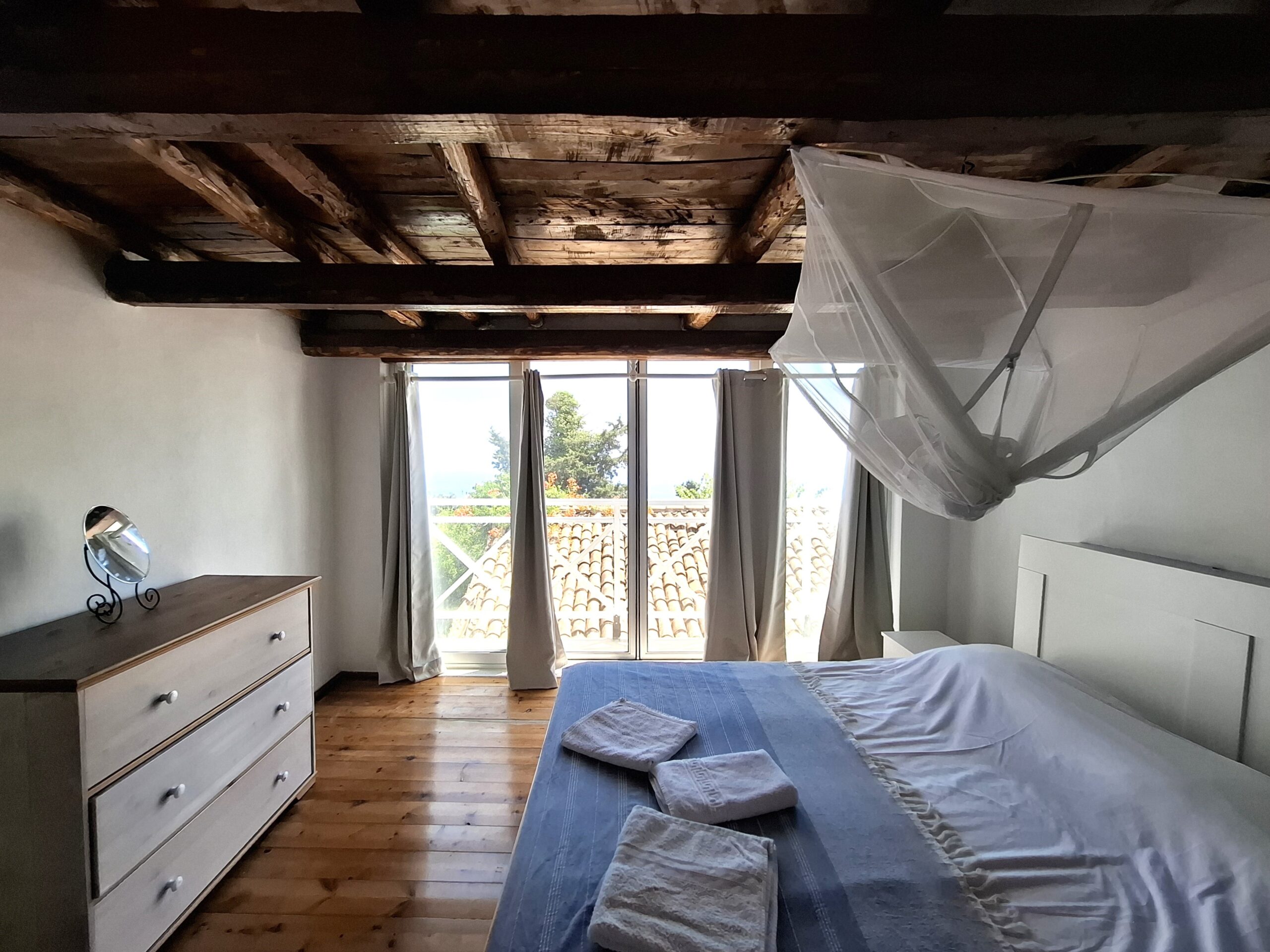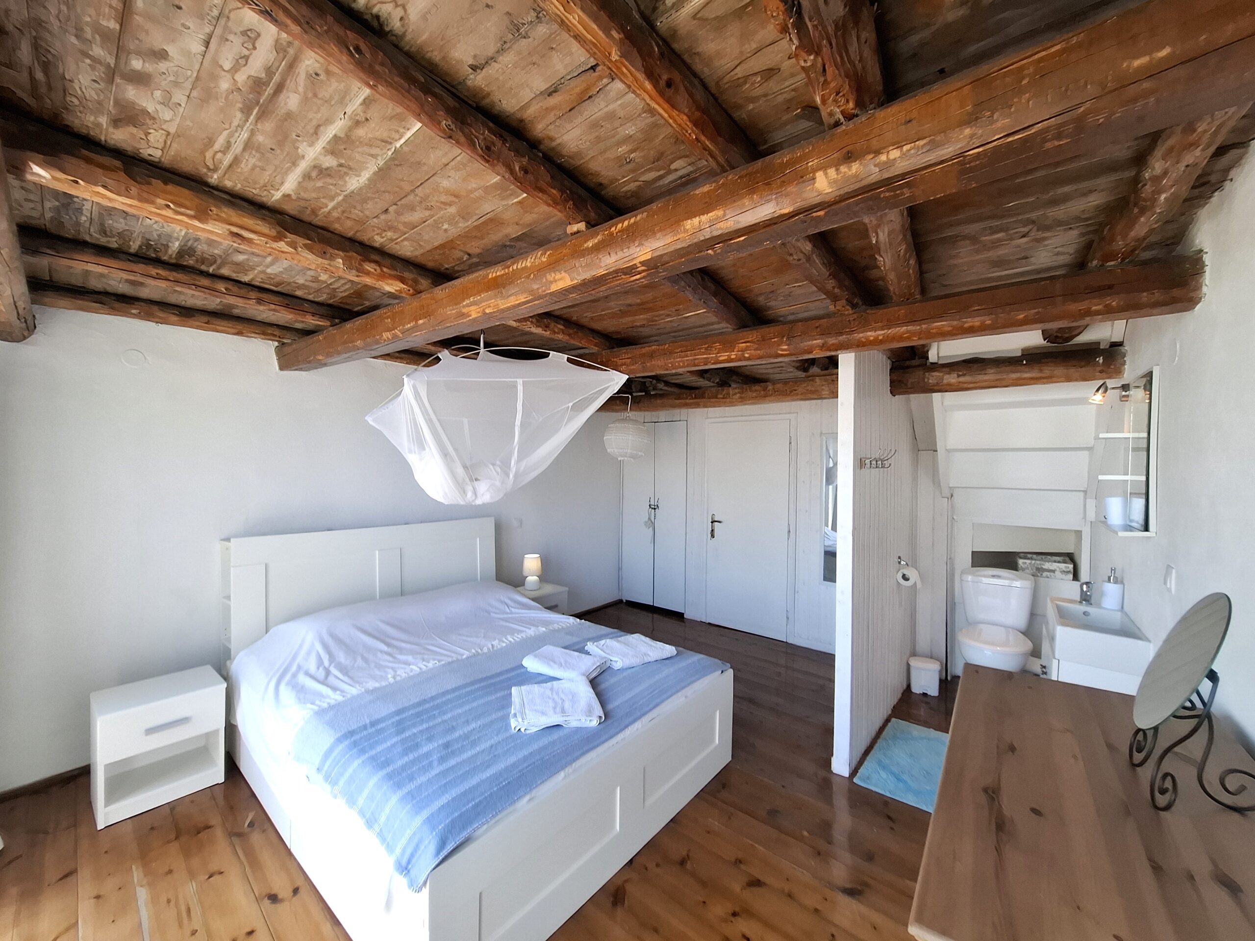 The interiors highlight wooden flooring and ceilings, with large window screens that fill the rooms with light and frame views of the sea. Just a five-minute walk takes you to the nearest tavern and the heart of the village, making it easy to connect with the local lifestyle.