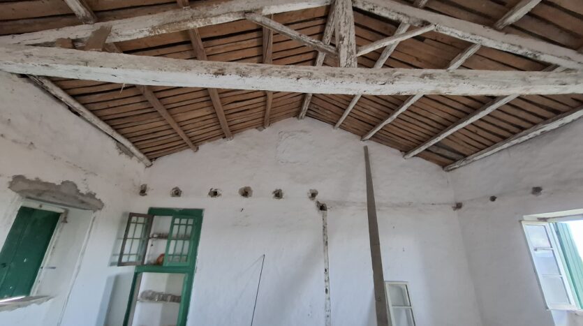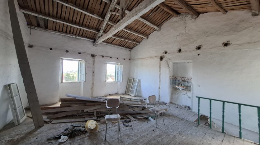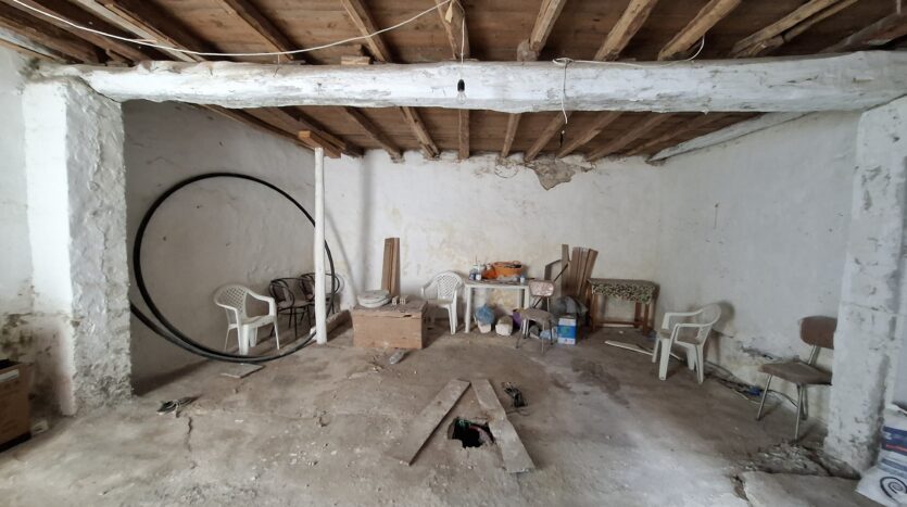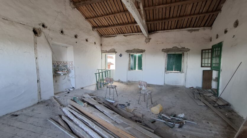 This two floor maisonette is located in the centre of Argyrades Village, just 30 metres from the main square. Built around 1950, it offers a total living area of 106 m², divided into 53 m² per floor. The building is made with thick stone walls covered in concrete, providing a strong structure ready for renovation and modernization.
