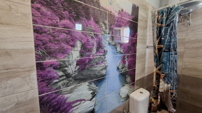 The apartment stands out with its high ceiling, creating a sense of openness and adding extra natural light throughout the space. The balcony, accessible from two entrances, extends the living area outdoors and provides a flexible spot to relax.