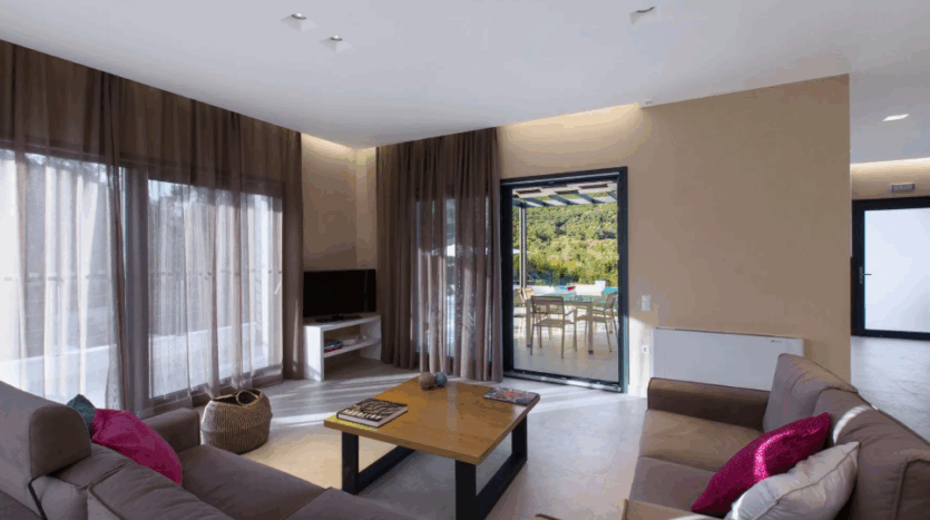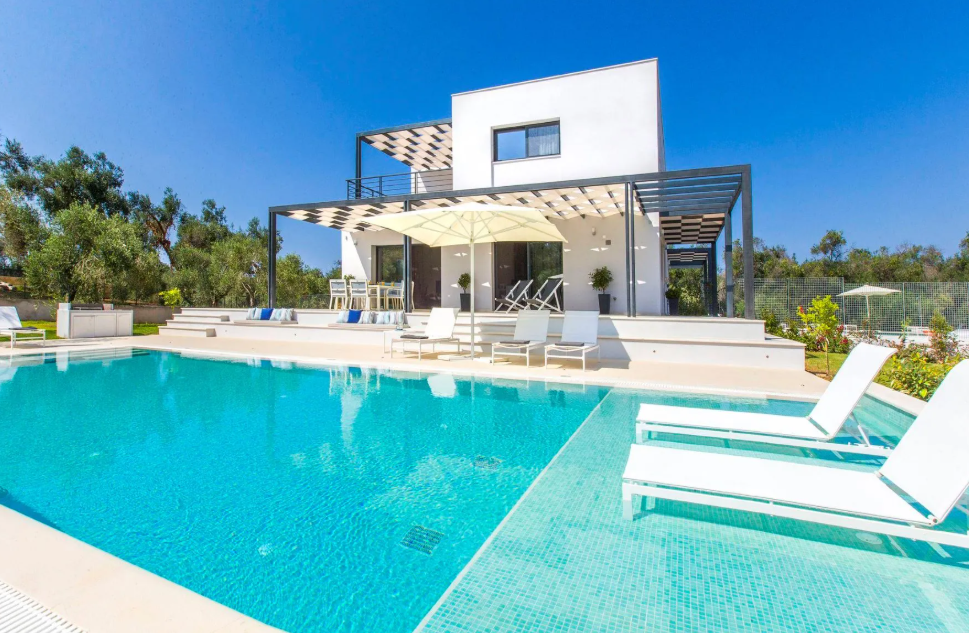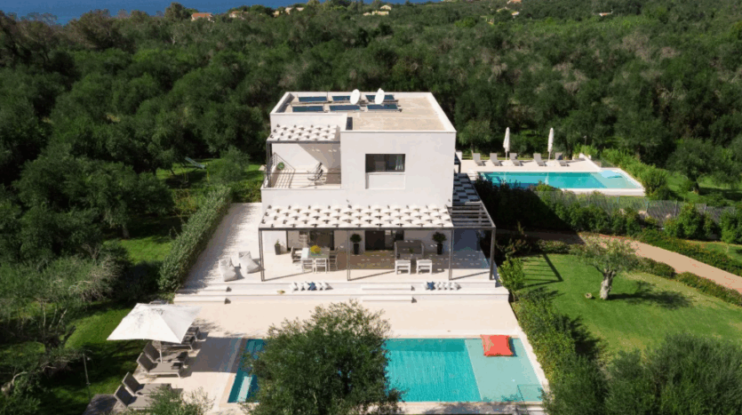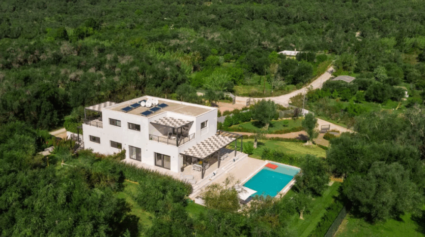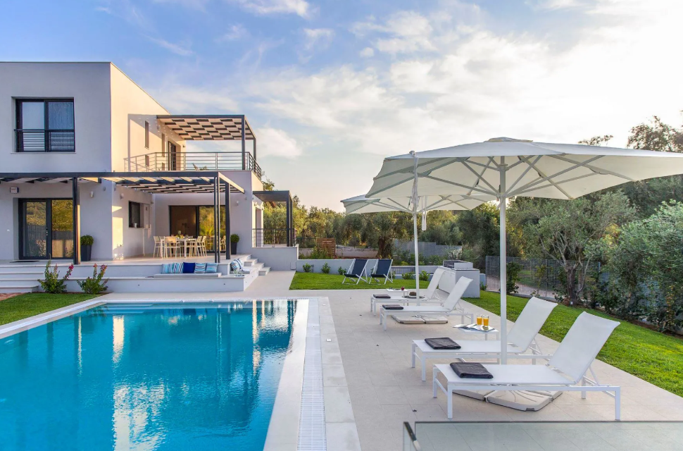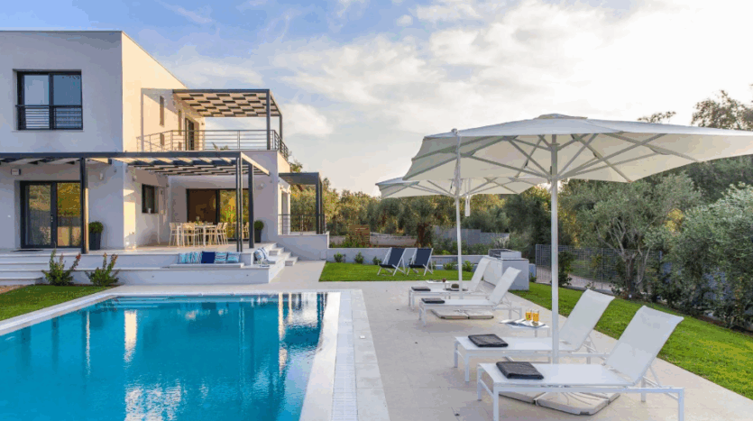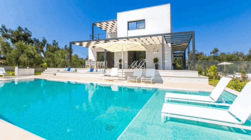 Set in the peaceful landscape of Chalikounas, surrounded by olive trees and open countryside, Segreta offers a rare opportunity to own not one but two modern villas within one private estate. Just moments from the long sandy beach, this location is perfect for anyone seeking space, privacy, and a deep connection with nature while remaining close to the coast.