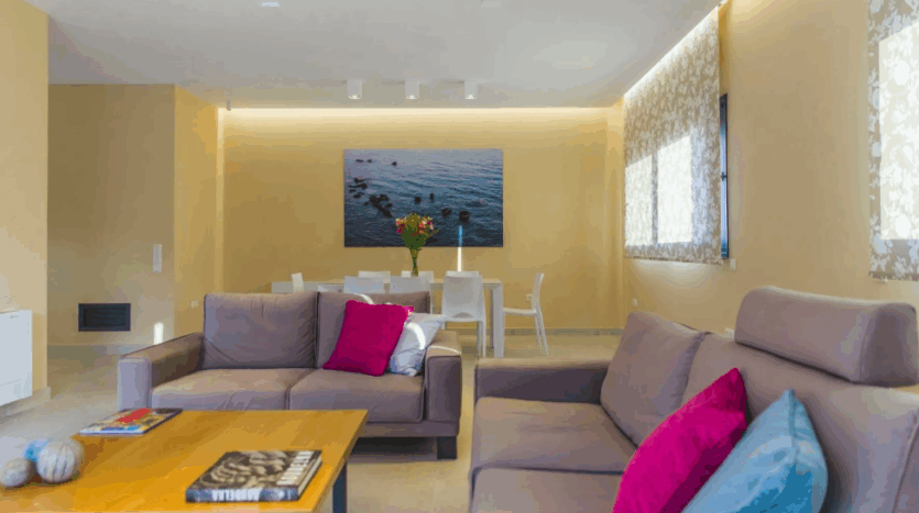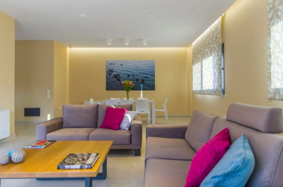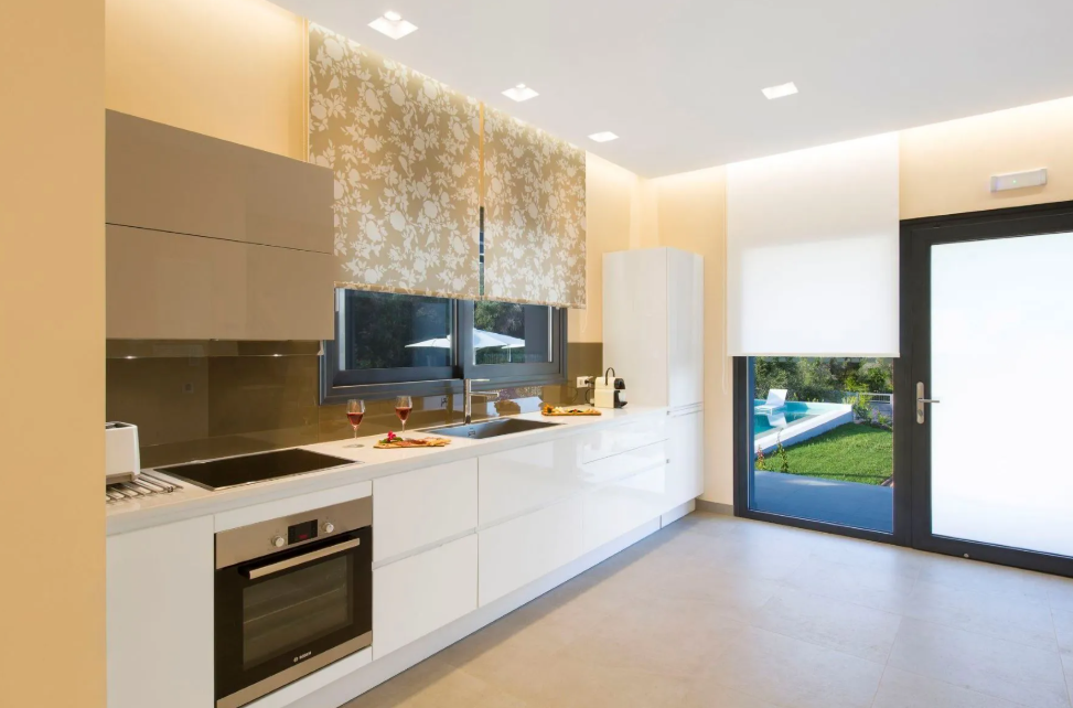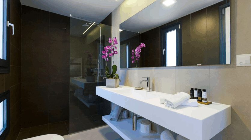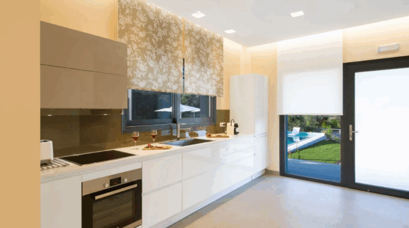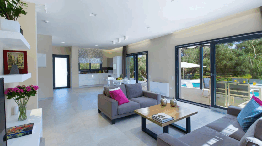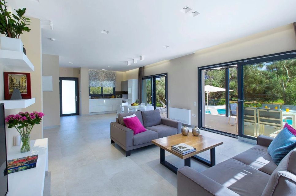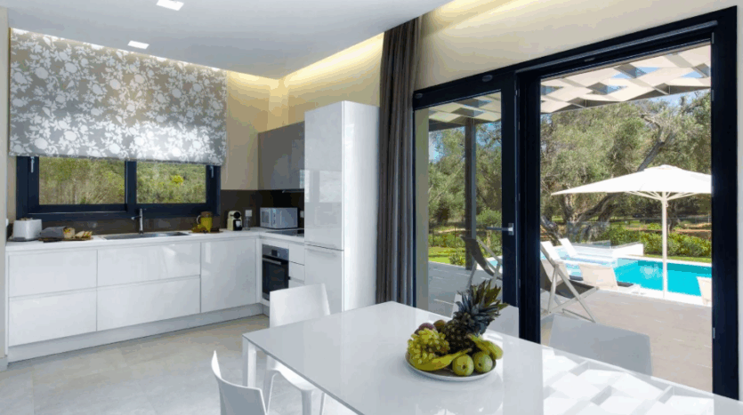 Each villa is designed with a modern, open feel. As you step inside, the kitchen, dining, and living areas blend seamlessly together, opening onto large verandas with views across the olive groves. Natural light fills every corner, creating a relaxed flow between indoor and outdoor spaces — ideal for quiet mornings or hosting guests.