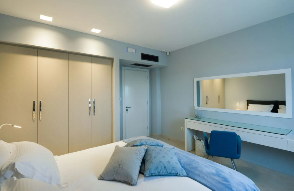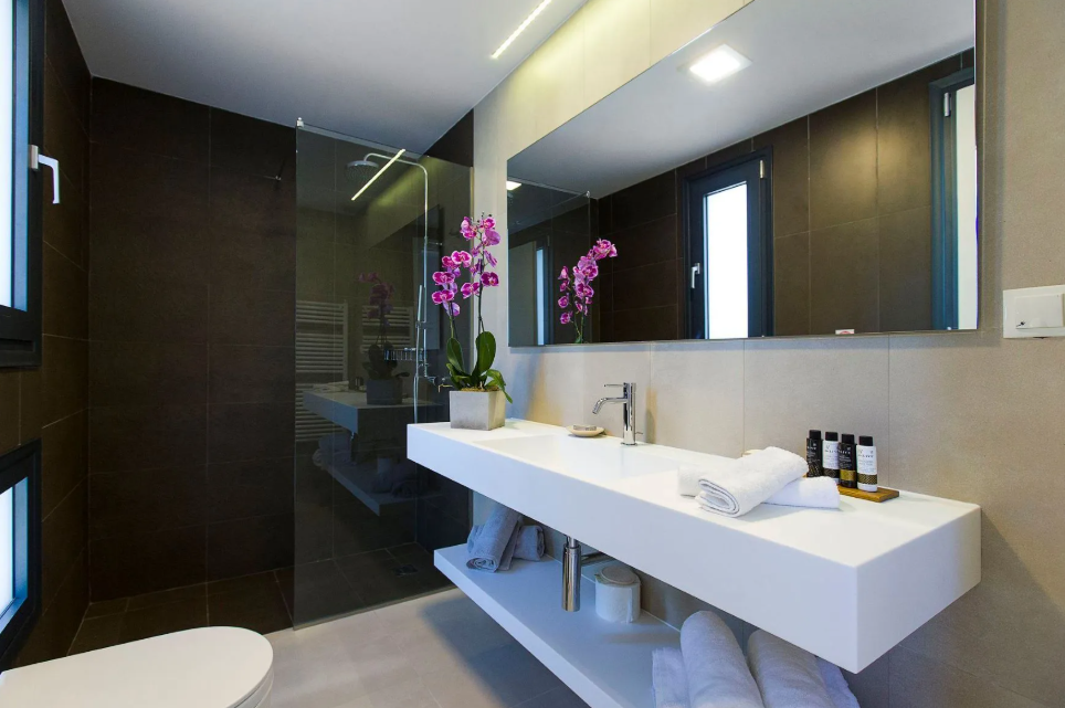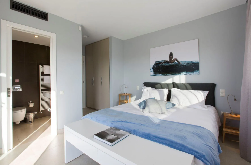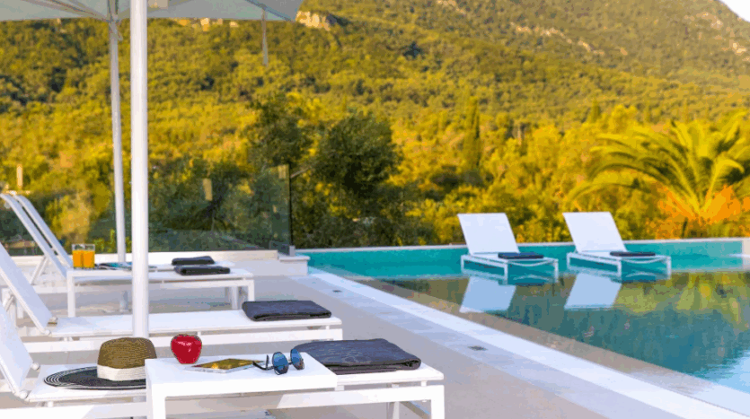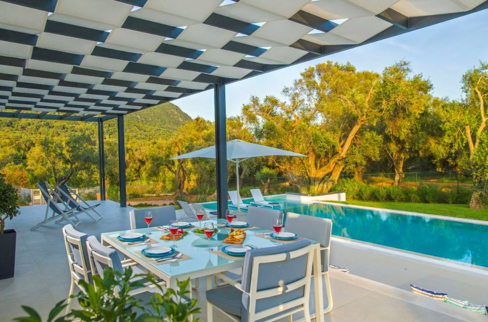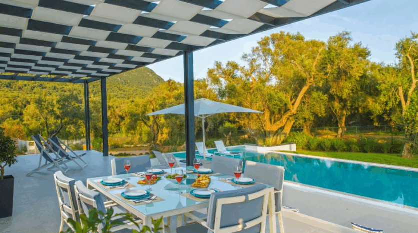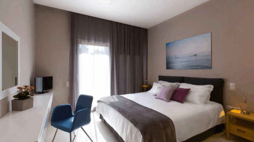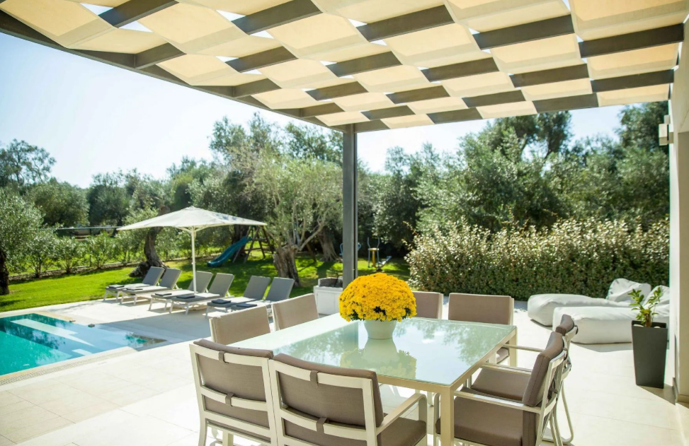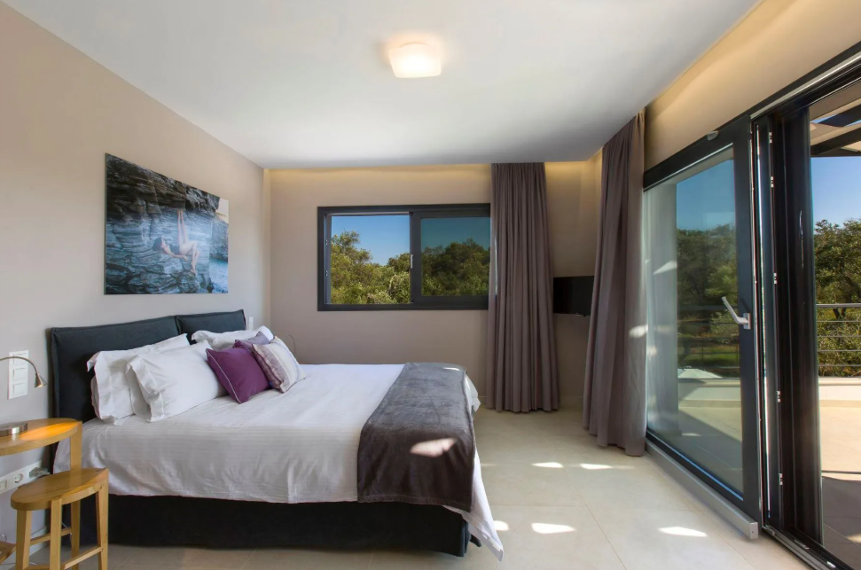Outside, the property sits on 4,000 square meters of private land. 2 Swimming pools, spacious terraces, and shaded pergolas create a calm outdoor environment surrounded by Mediterranean plants and trees. Whether you’re enjoying lunch under the pergola or a sunset swim after a day at the beach, Segreta captures the natural rhythm and beauty of Chalikounas.