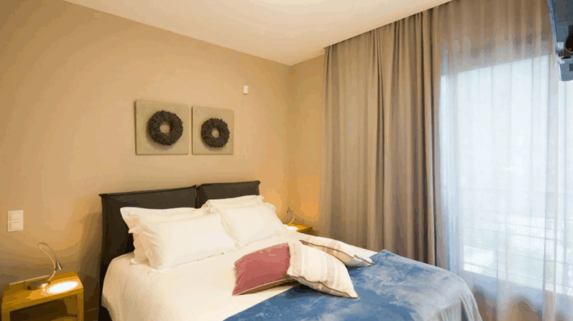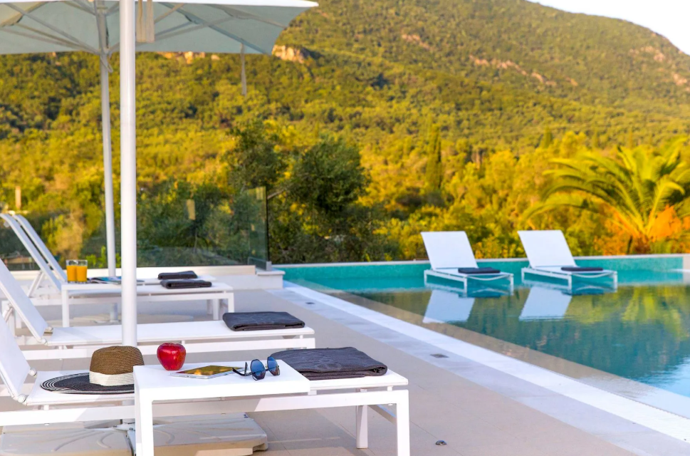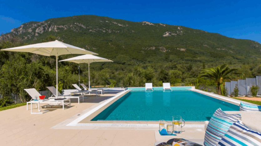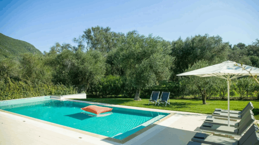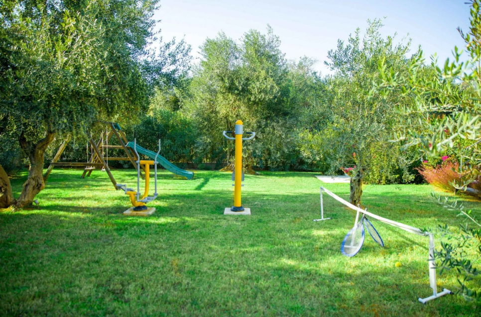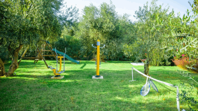 - Location: Chalikounas, near the sandy beach and protected lagoon